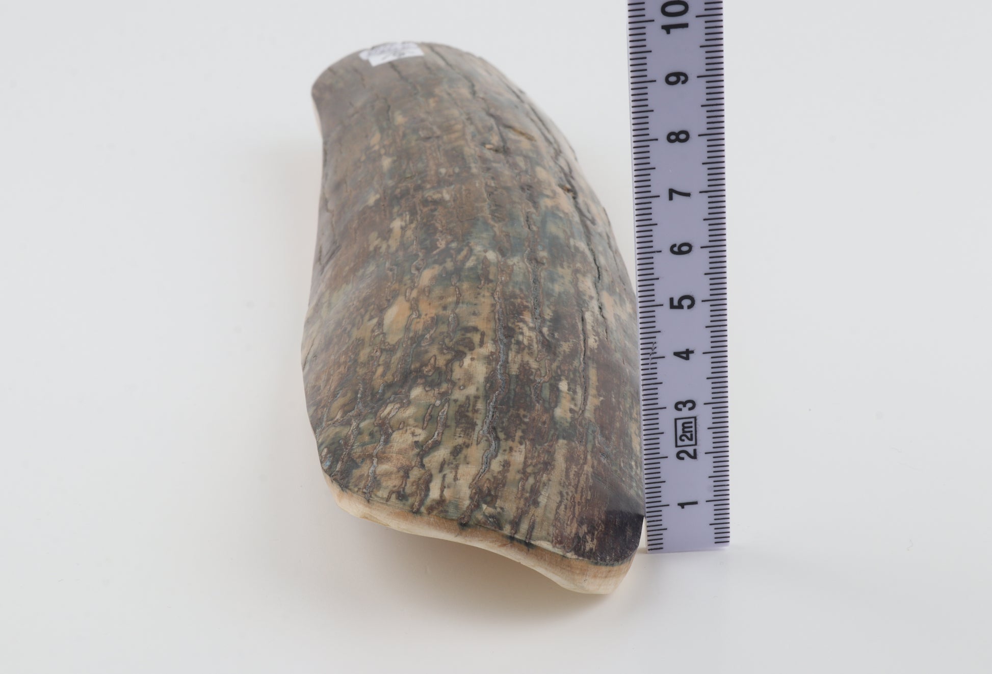 This beige-blue mammoth bark is completely natural and untreated. It is not stabilized or resin-filled. All of our pieces are unique in color, structure, and shape due to fossilization processes and long-term climatic conditions of the Siberian permafrost. No artificial treatments or restorations have been performed unless specifically stated.