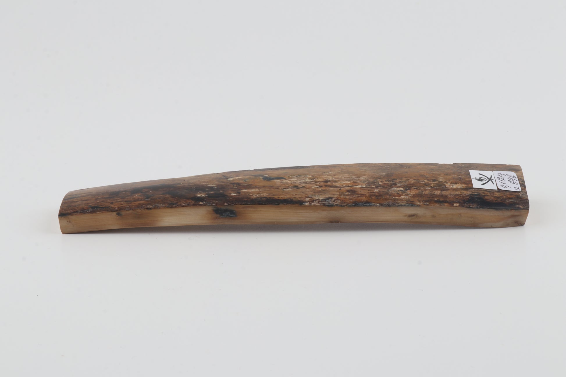 This is a premium-quality piece of Siberian woolly mammoth bark (Mammuthus primigenius). The ivory is naturally dense and solid, despite one tiny, non-penetrating fissure on one side. Tapered width: One cross-cut section is slightly wider than the other. Consistent thickness with reserves on both ends. The natural color of the bark is brown-beige.