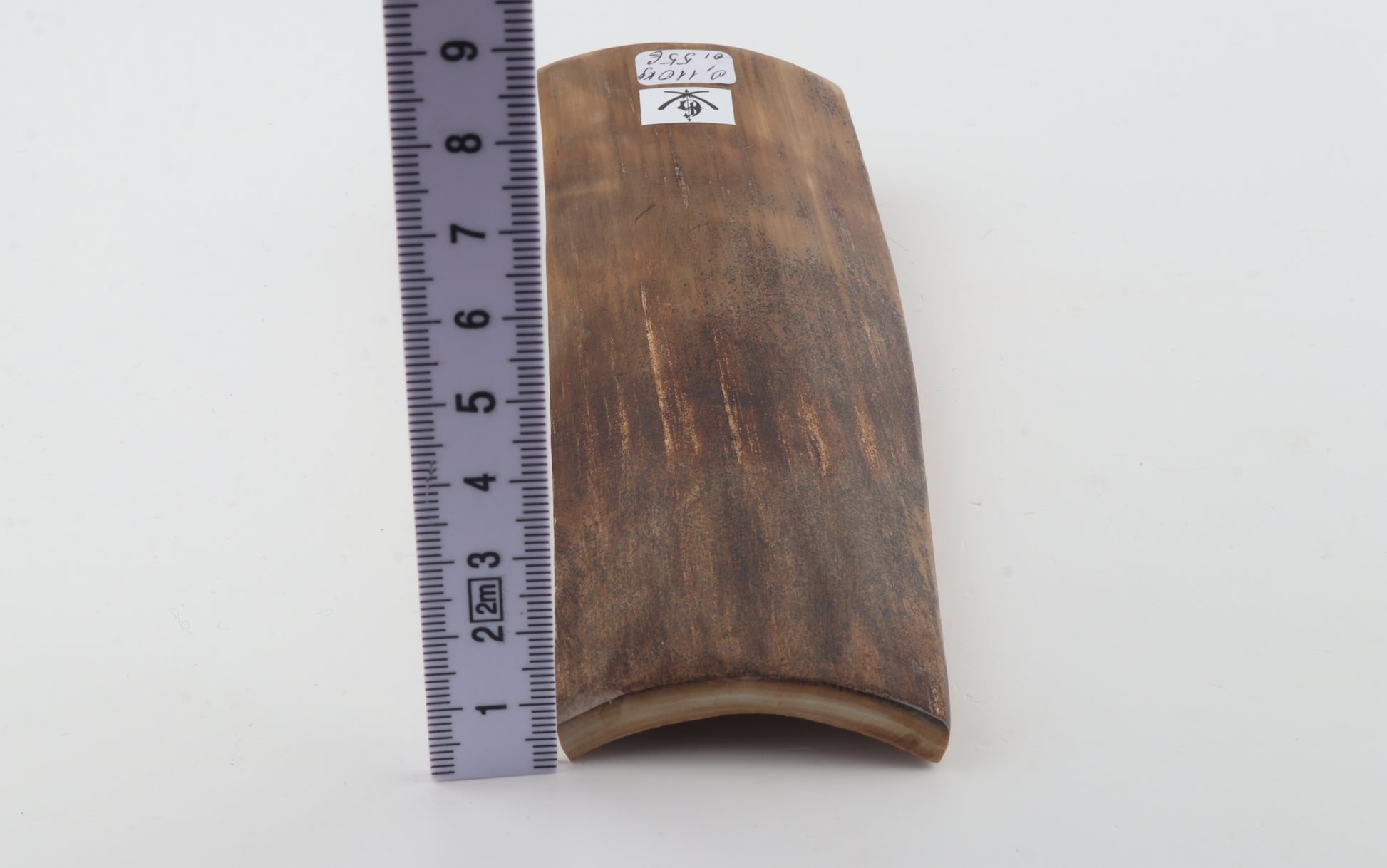 This is a premium-quality piece of Siberian woolly mammoth bark (Mammuthus primigenius). The ivory is naturally dense and solid, without cracks. Tapered width and thickness with reserves on both ends: One cross-cut section is slightly thinner and narrower than the other. Please carefully look at the pictures for precise dimensions. The natural color of the bark is beige-brown.