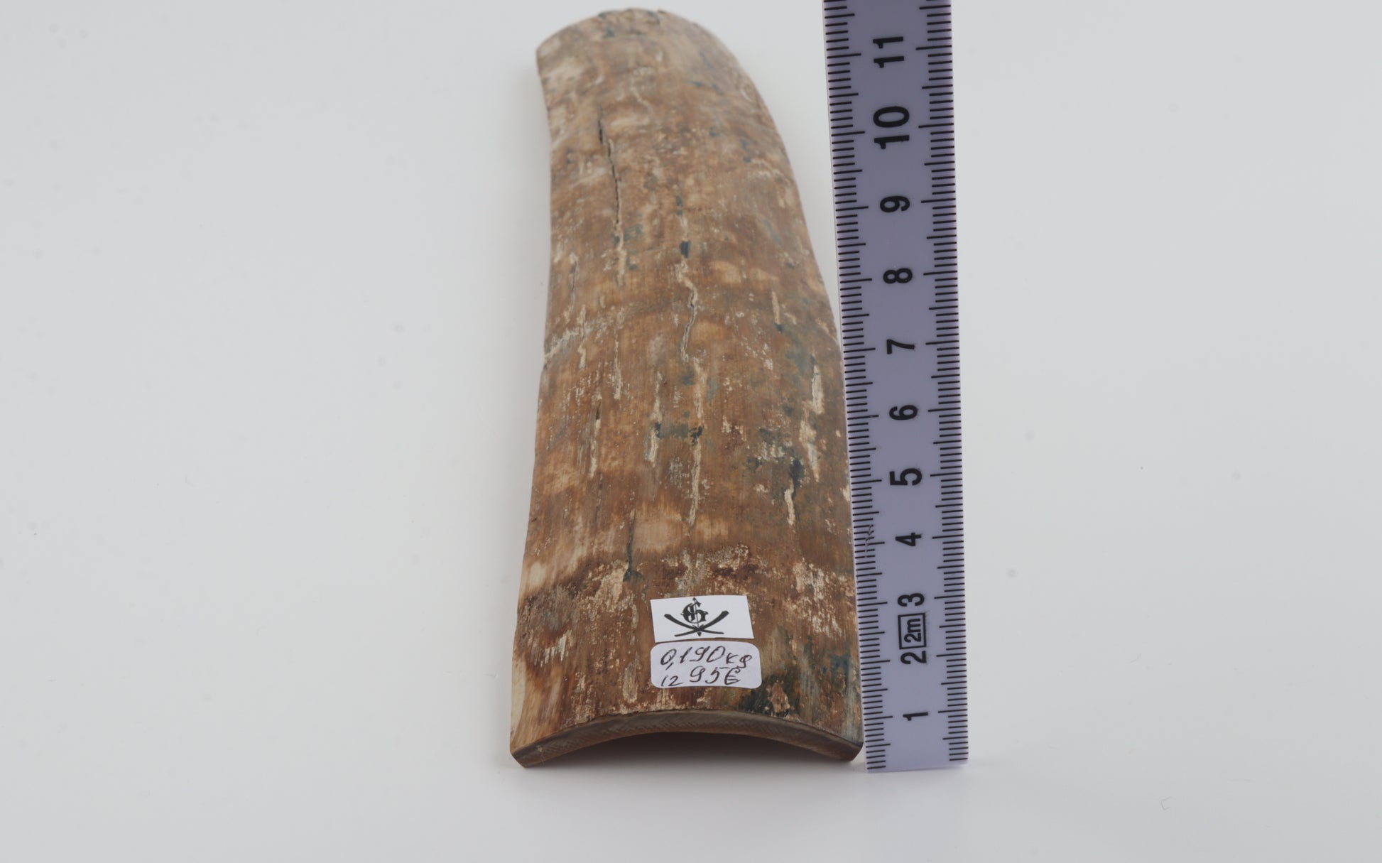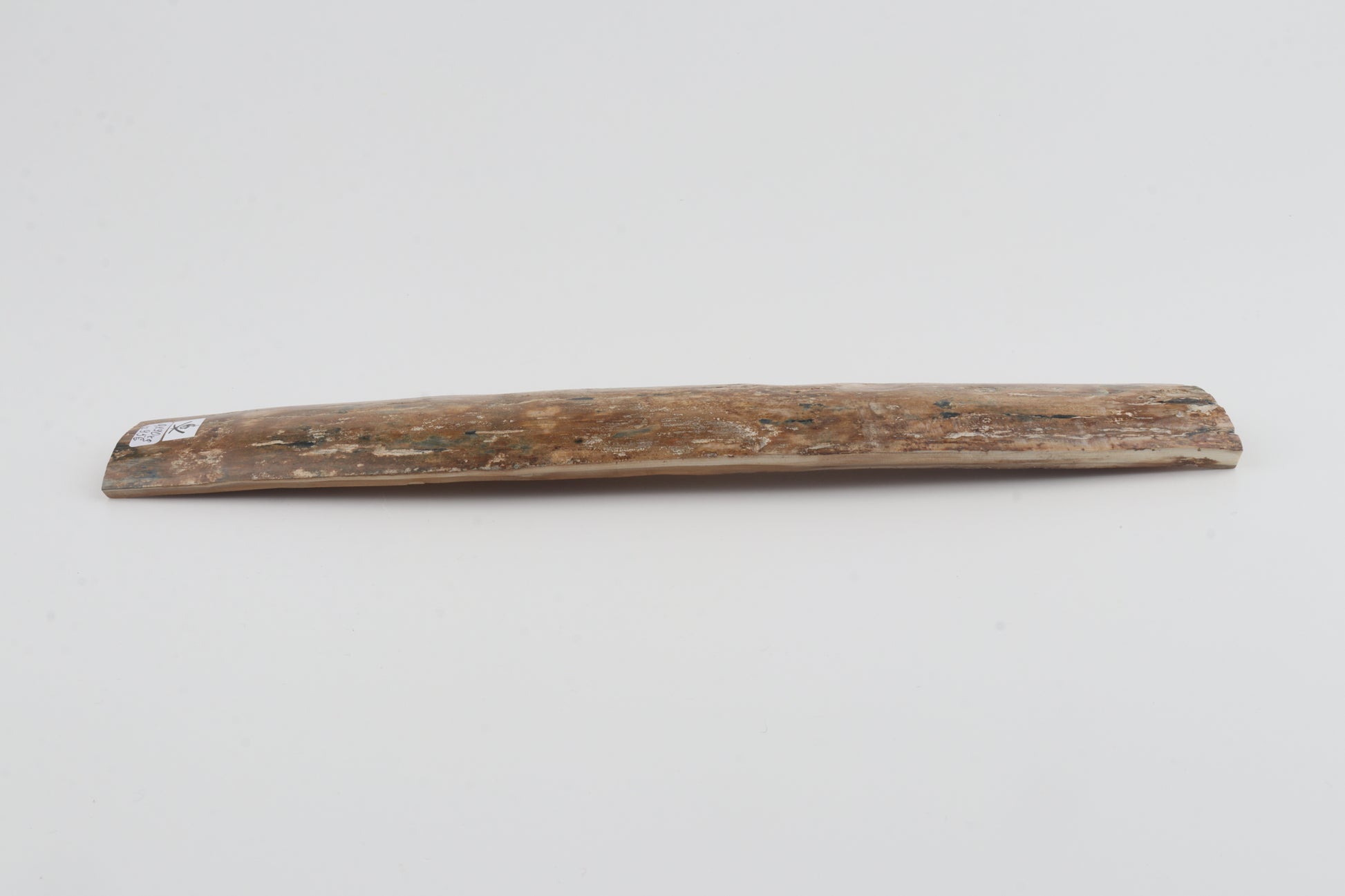 This is a premium-quality piece of Siberian woolly mammoth bark (Mammuthus primigenius). The ivory is naturally dense and solid, despite one small, non-penetrating crack on the thicker cross-cut section. Consistent width with reserves on both ends. The natural colour of the bark is beige.
