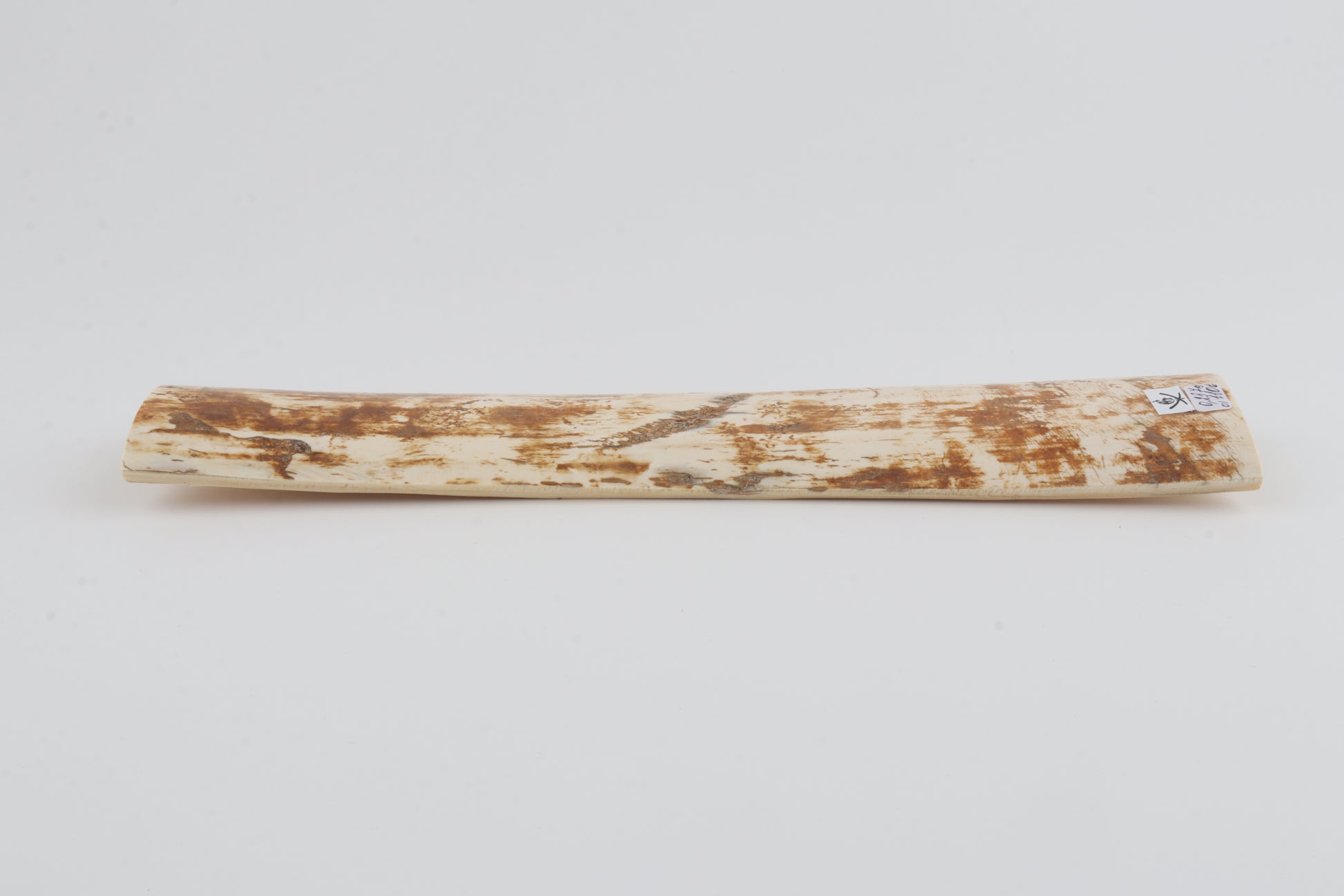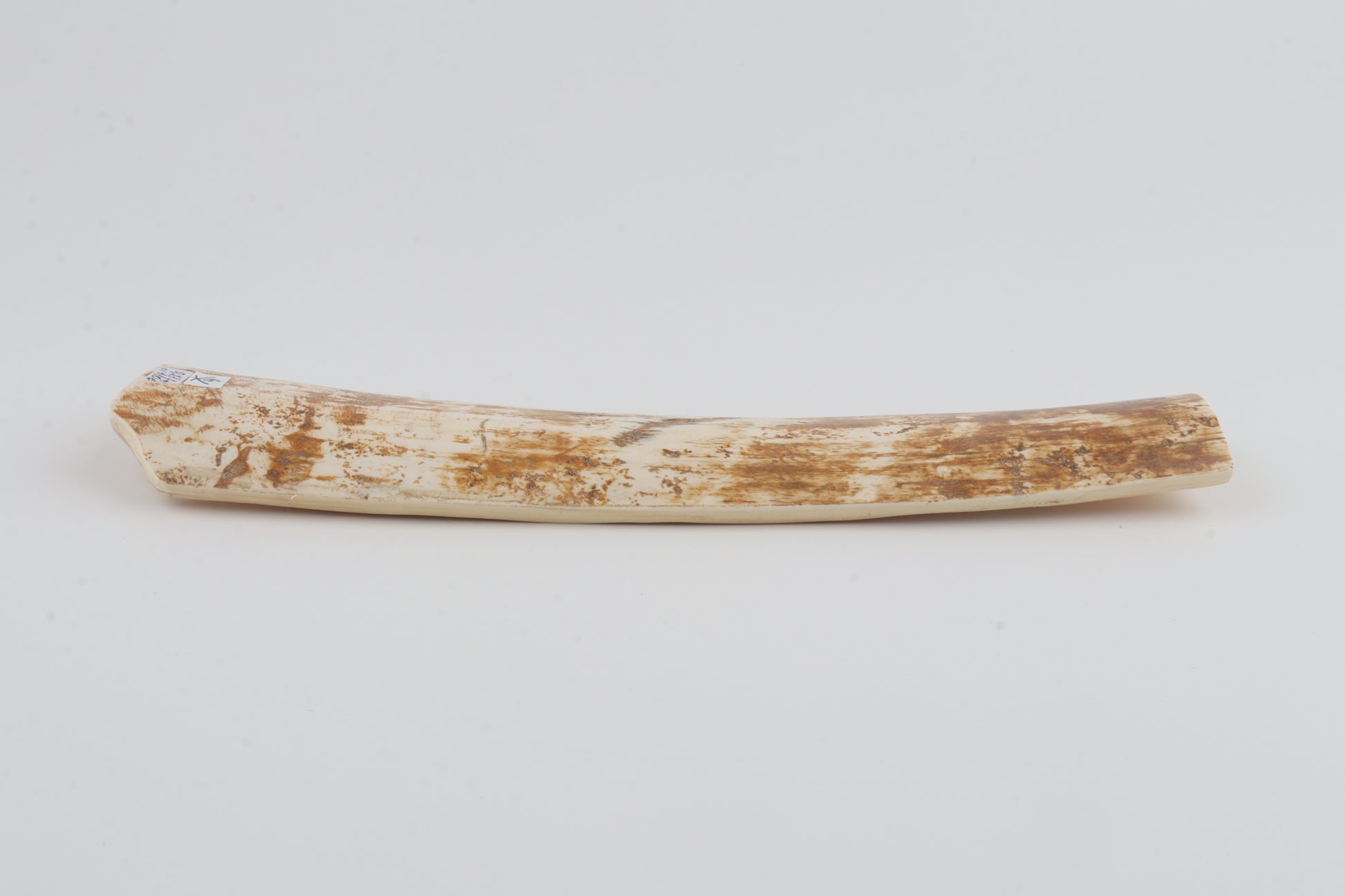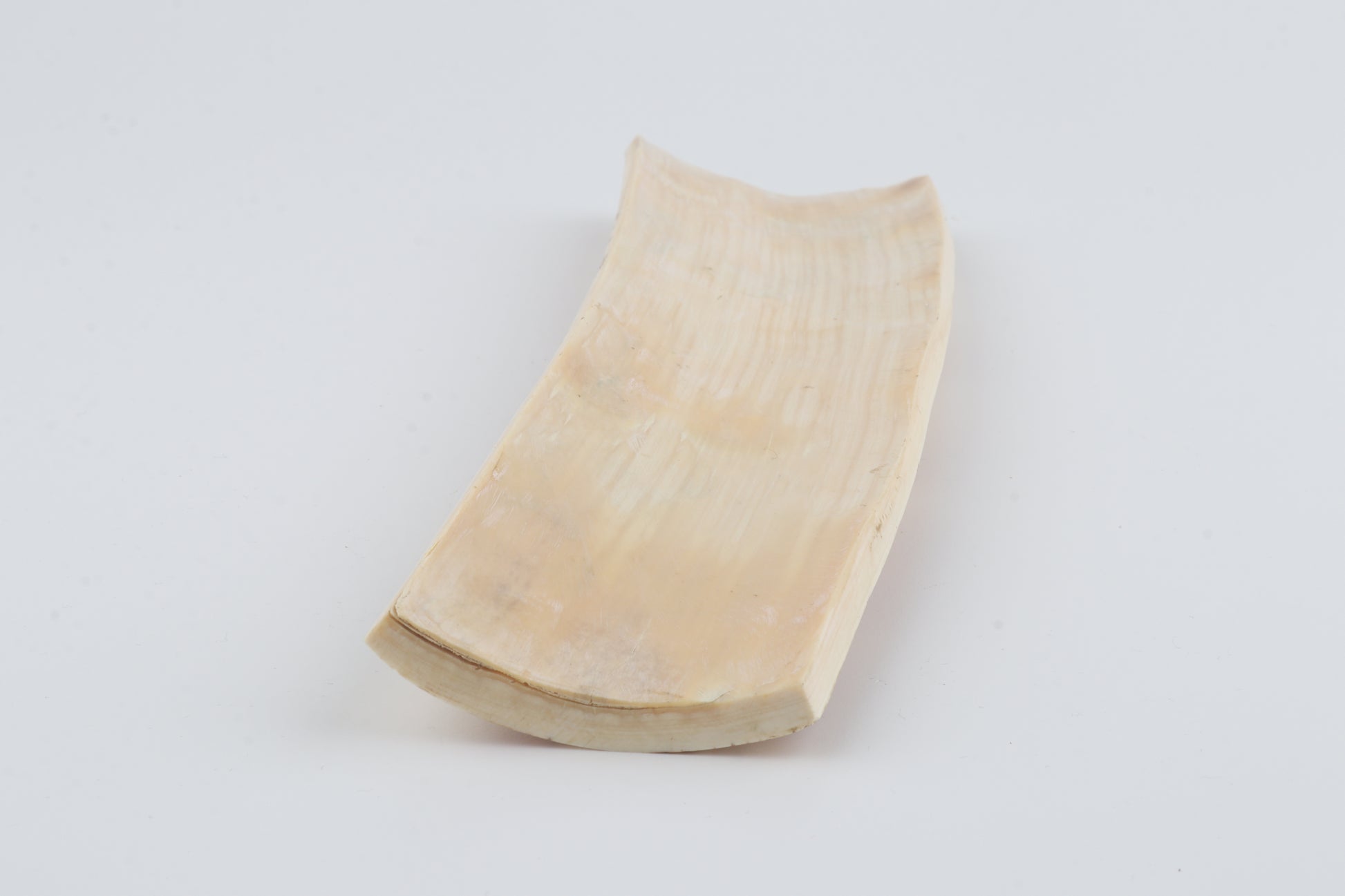 This is a premium-quality piece of Siberian woolly mammoth bark (Mammuthus primigenius). The ivory is naturally dense and solid, despite some tiny, non-penetrating cracks. Tapered width: One cross-cut section is wider than the other. Consistent thickness with reserves on both ends. The natural colour of the bark is a mix of orange and ivory tones.