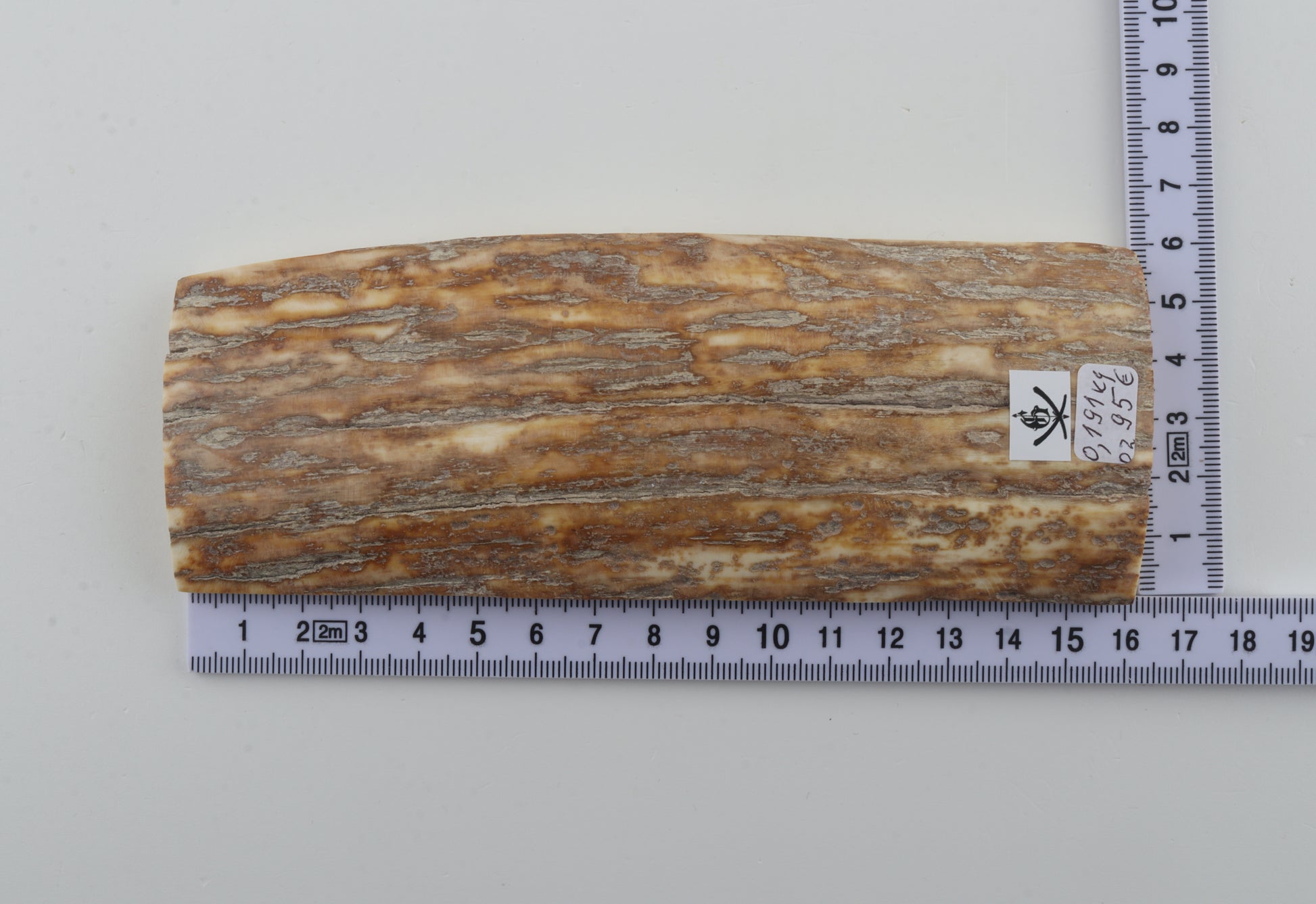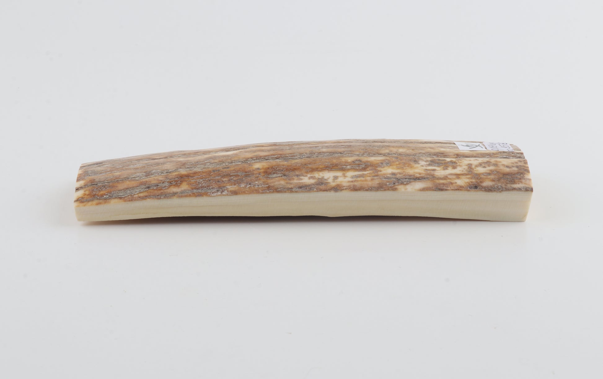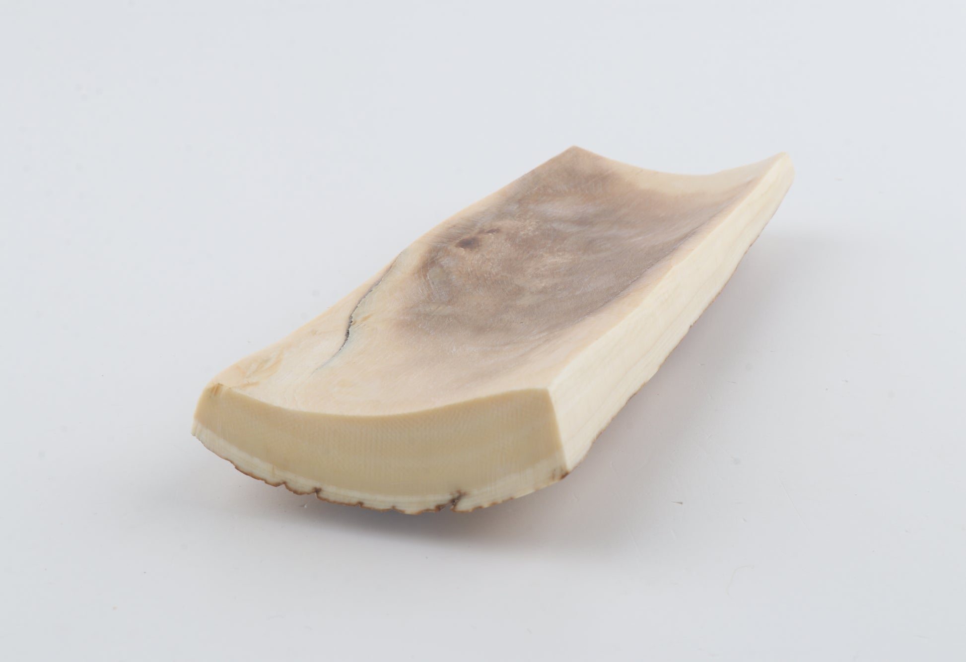 This is a premium-quality piece of Siberian woolly mammoth bark (Mammuthus primigenius). The ivory is naturally dense and solid, despite some tiny, non-penetrating cracks. Tapered width and thickness with reserves on both ends: One cross-cut section is thicker and wider than the other. Please carefully look at the pictures for precise dimensions. The natural colour of the bark is beige-orange.