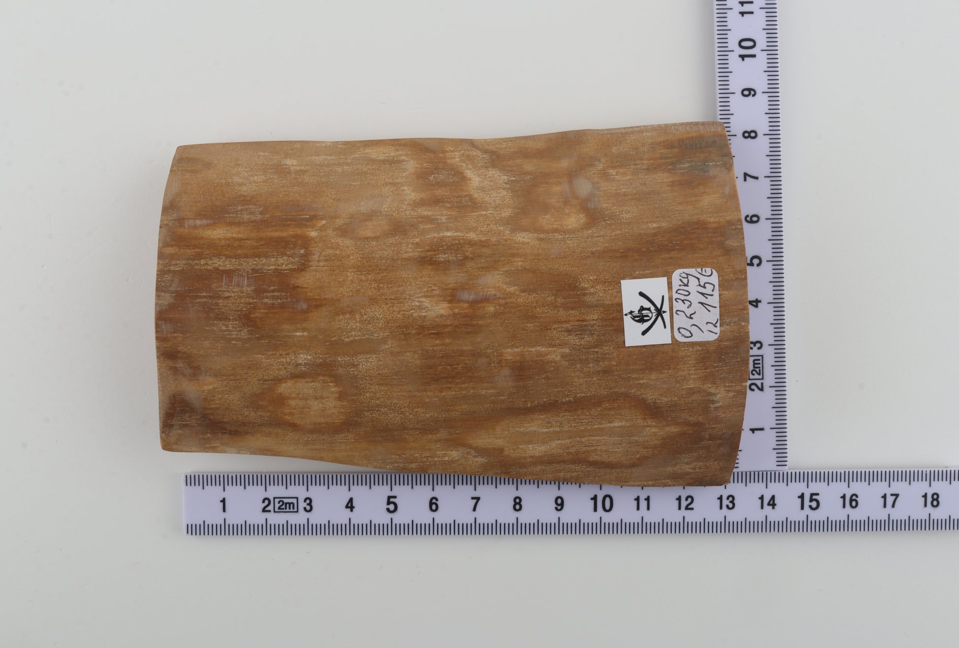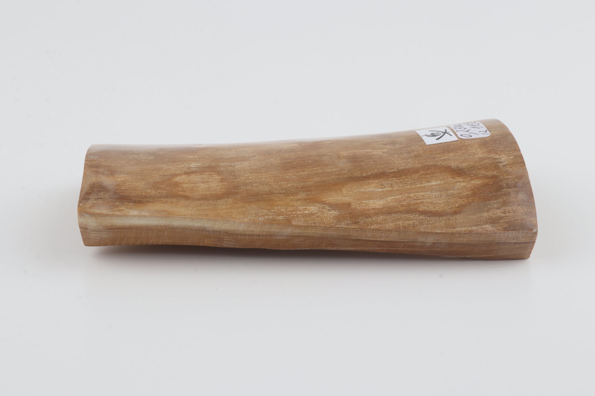 This is a premium-quality piece of Siberian woolly mammoth bark (Mammuthus primigenius). The ivory is naturally dense and solid, despite some tiny, non-penetrating cracks. Tapered width: One cross-cut section is wider than the other. Consistent thickness with reserves on both ends. The natural color of the bark is beige.