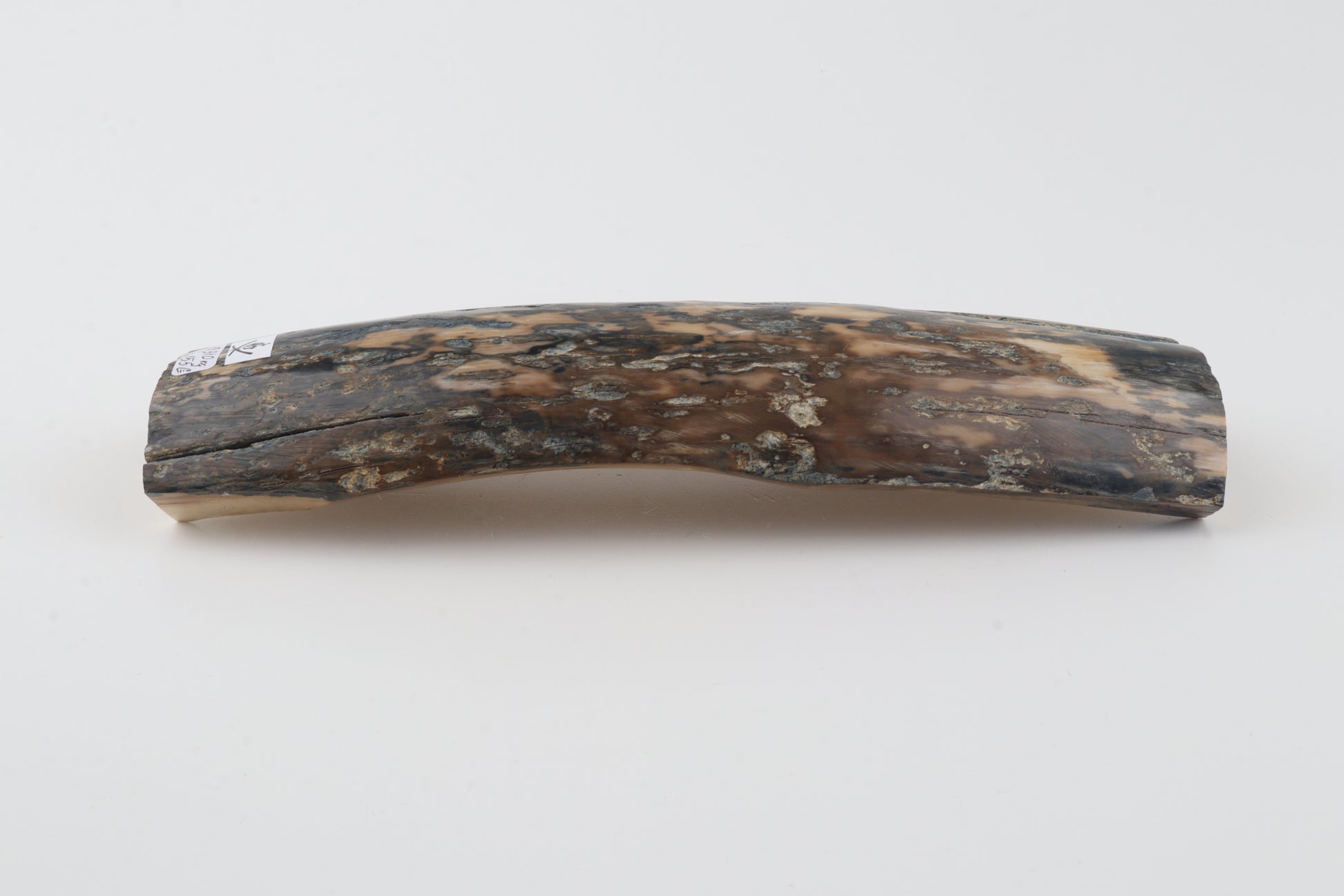 This is a premium-quality piece of Siberian woolly mammoth bark (Mammuthus primigenius). The ivory is naturally dense and solid, despite some small cracks. Tapered width and thickness with reserves on both ends: One cross-cut section is thicker and narrower than the other. Please carefully look at the pictures for precise dimensions. The natural colour of the bark is blue-beige.