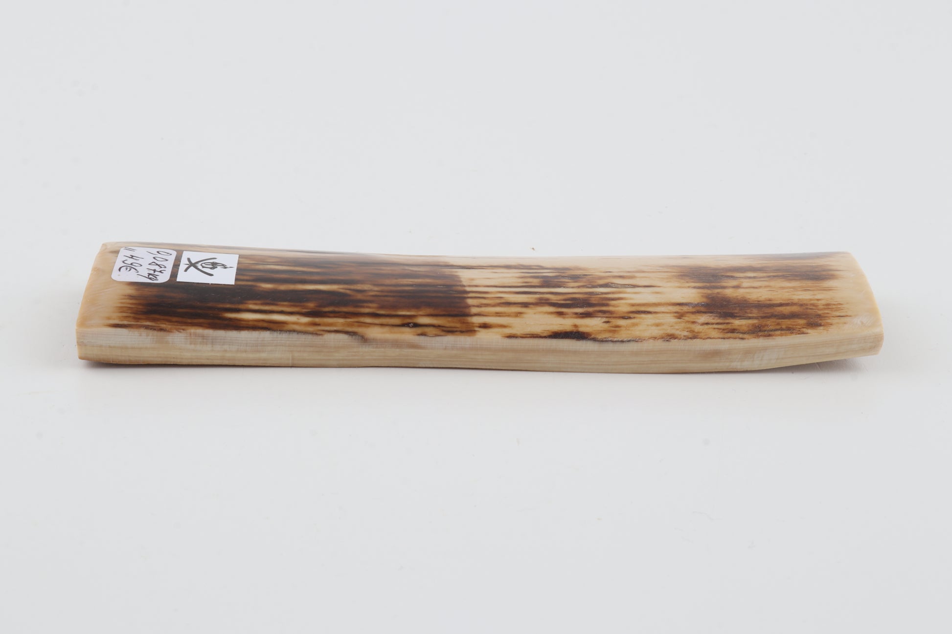 This is a premium-quality piece of Siberian woolly mammoth bark (Mammuthus primigenius). The ivory is naturally dense and solid, without cracks. Tapered thickness: One cross-cut section is slightly thicker than the other. Consistent width with reserves on both ends. The natural colour of the bark is brown-beige.