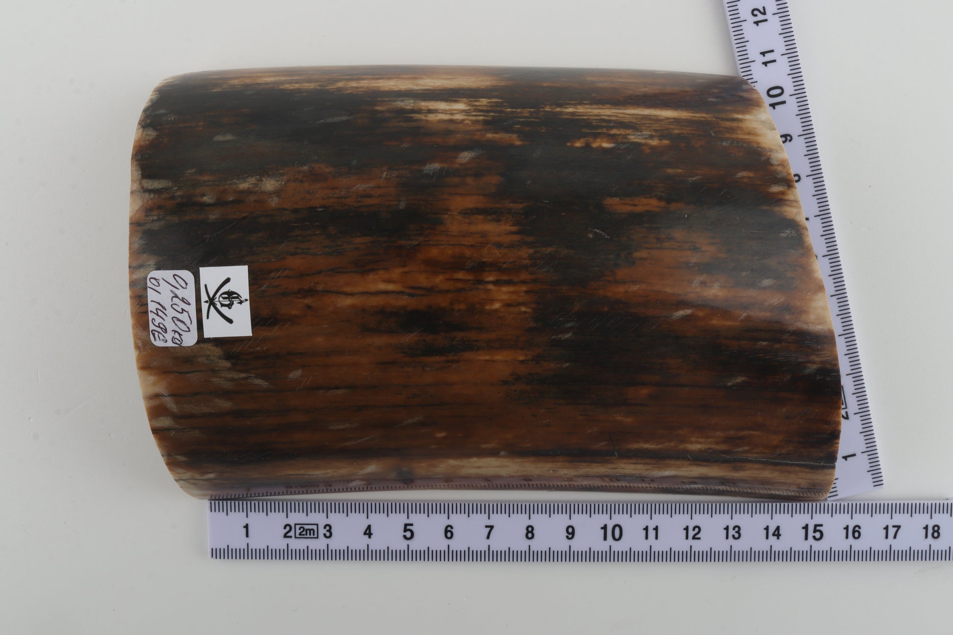 This is a premium-quality piece of Siberian woolly mammoth bark (Mammuthus primigenius). The ivory is naturally dense and solid, despite some small cracks. Consistent width and thickness with reserves on both ends. The natural color of the bark is brown-black.