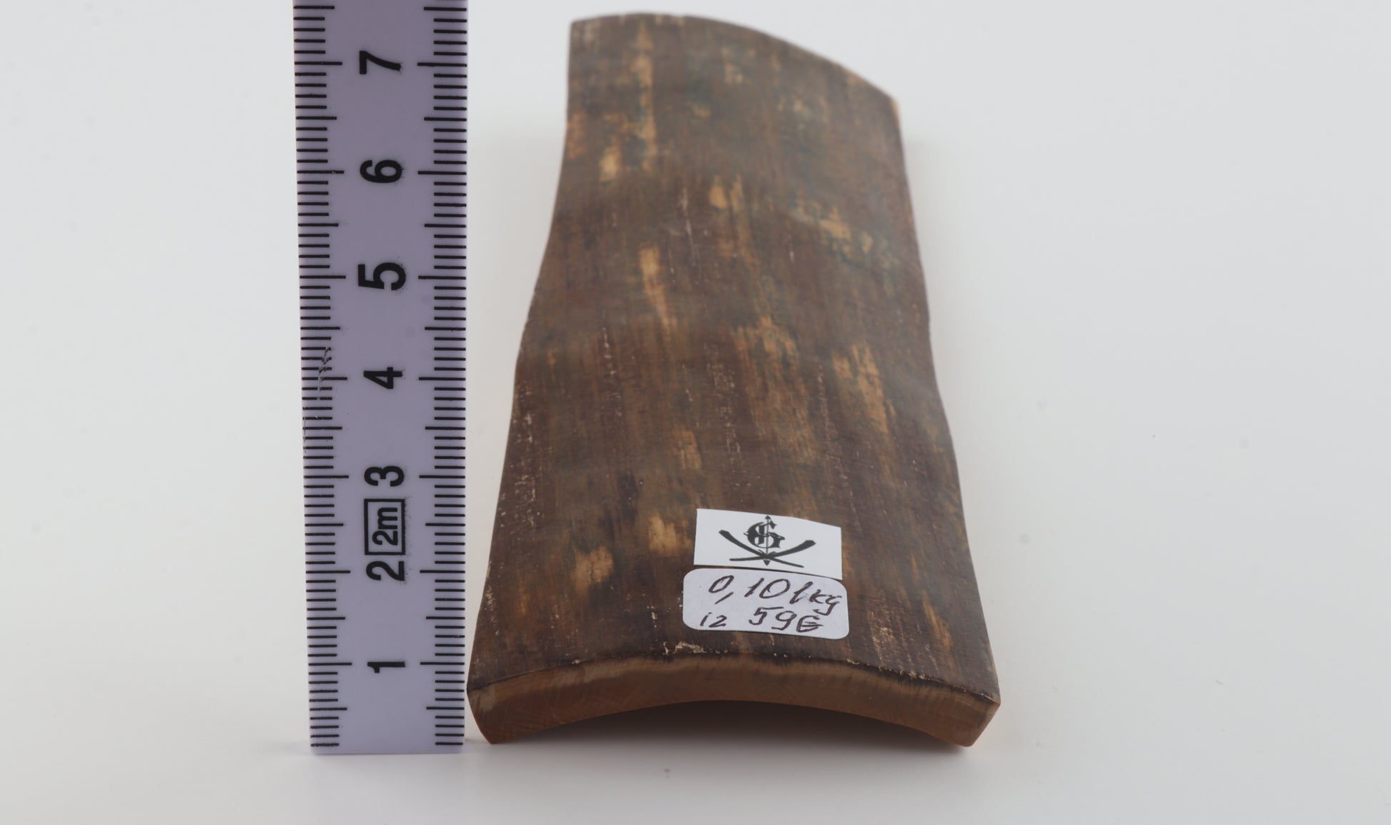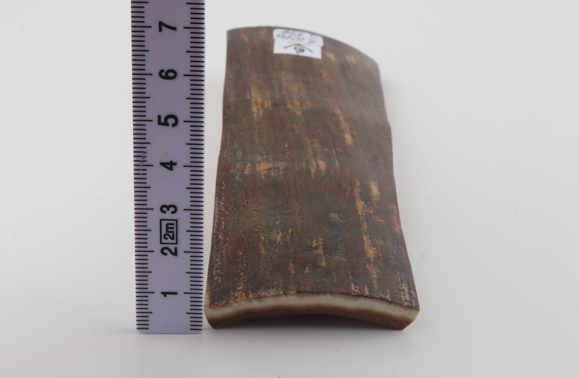 This is a premium-quality piece of Siberian woolly mammoth bark (Mammuthus primigenius). The ivory is naturally dense and solid, without cracks. Tapered width: One cross-cut section is slightly wider than the other. Consistent thickness with reserves on both ends. The natural colour of the bark is brown-green.
