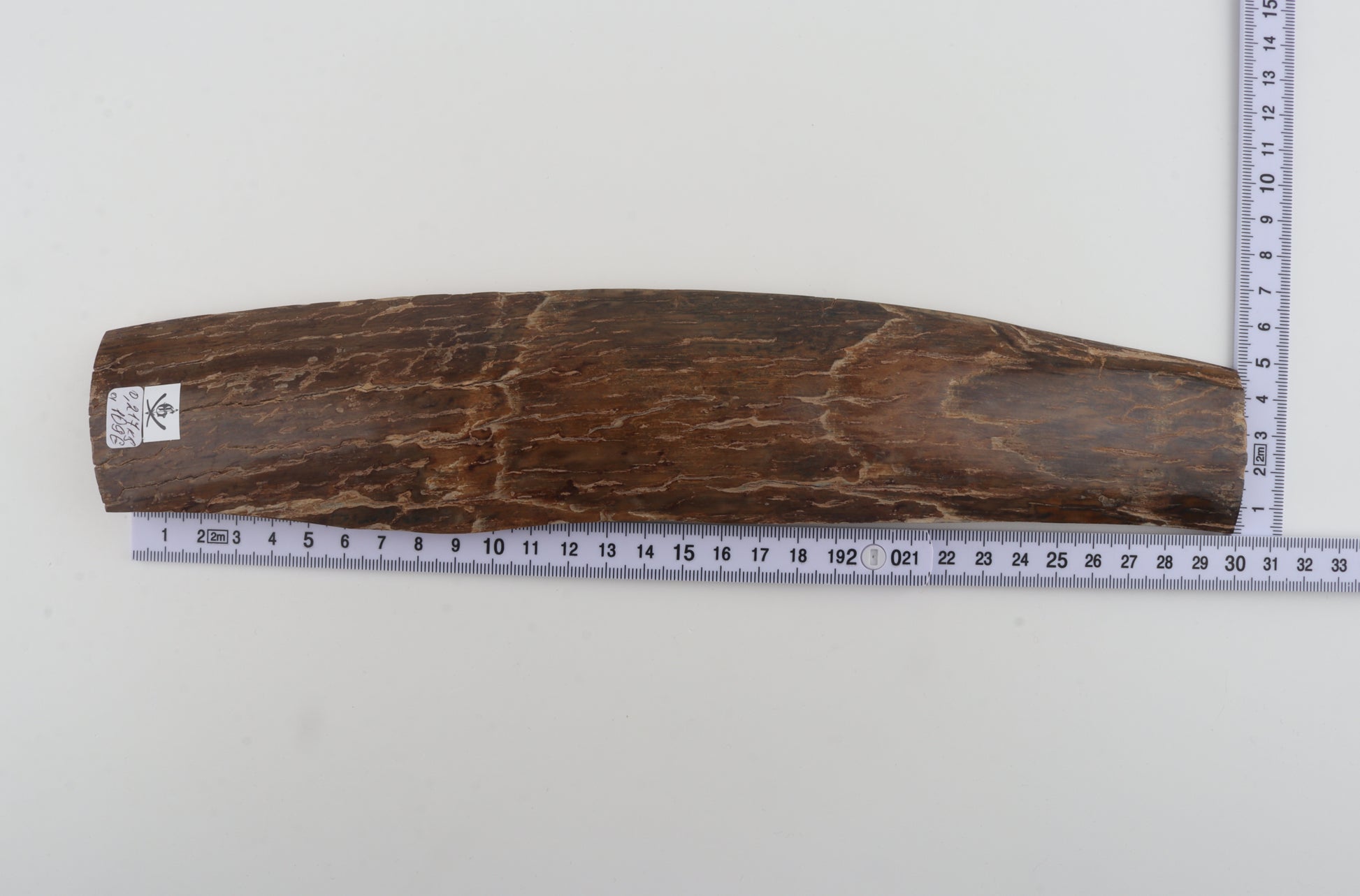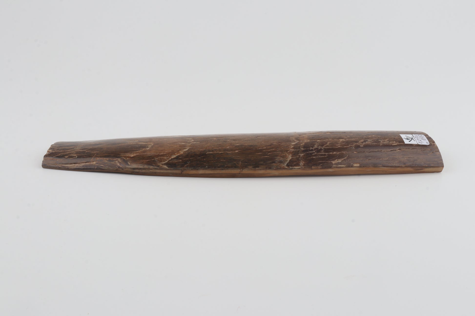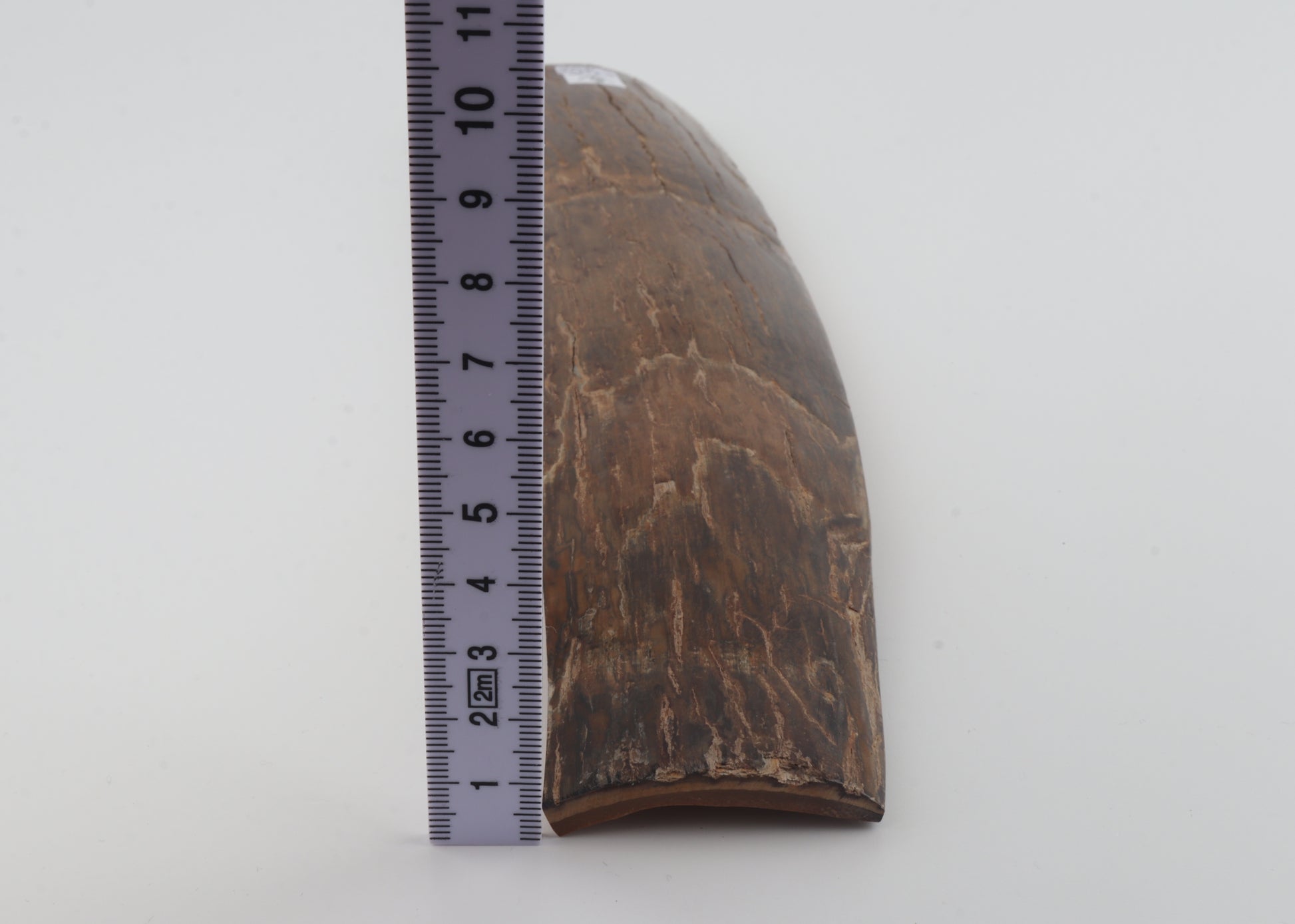 This is a premium-quality piece of Siberian woolly mammoth bark (Mammuthus primigenius). The ivory is naturally dense and solid, without cracks. Tapered width and thickness with reserves on both ends: One cross-cut section is slightly thicker and wider than the other. Please carefully look at the pictures for precise dimensions. The natural color of the bark is brown.