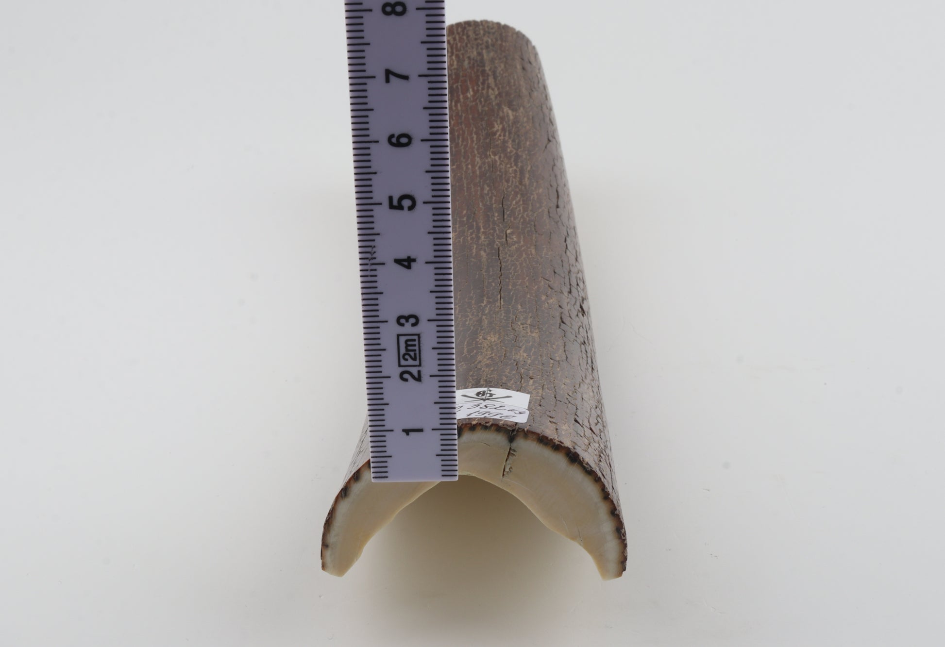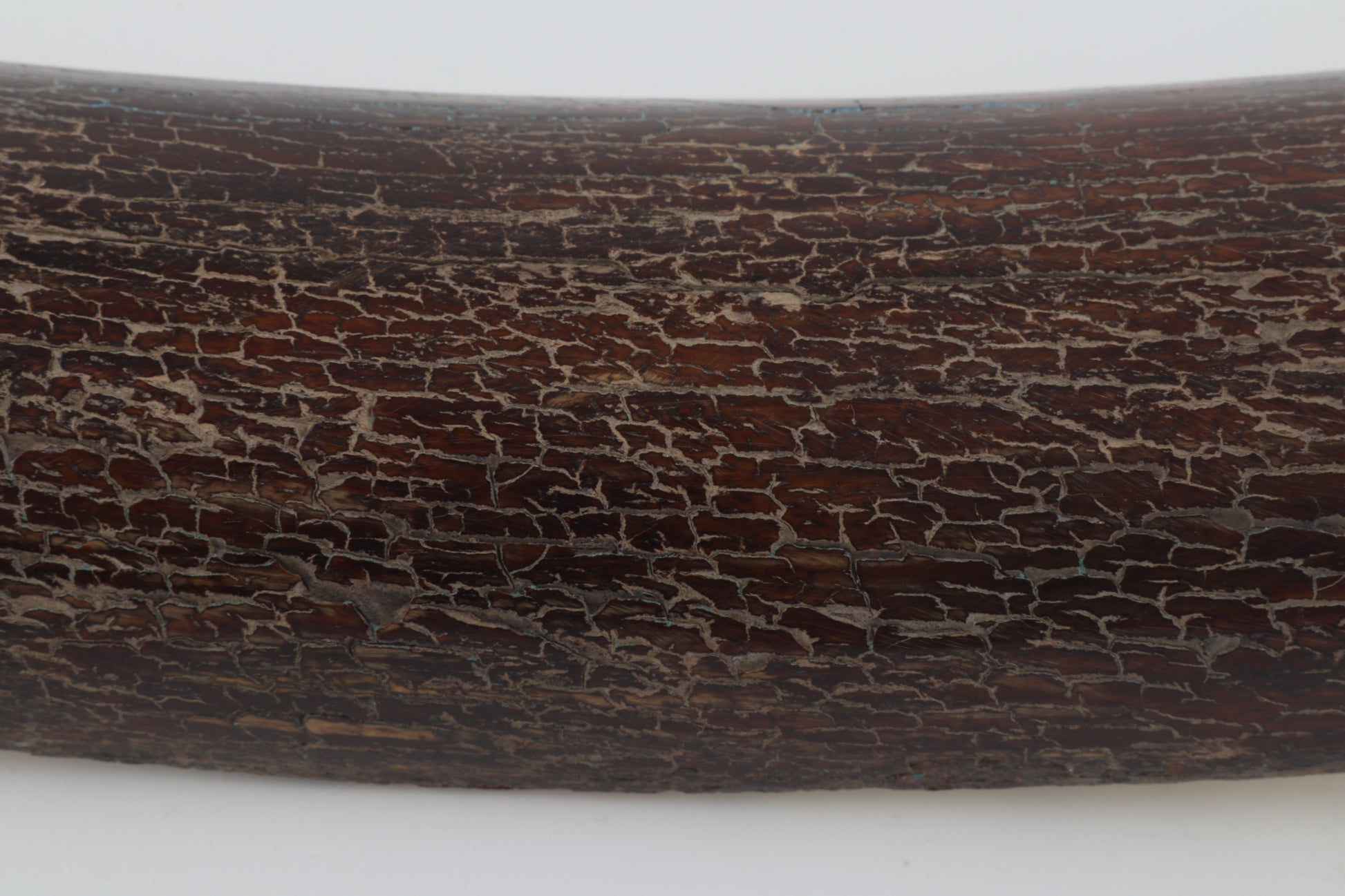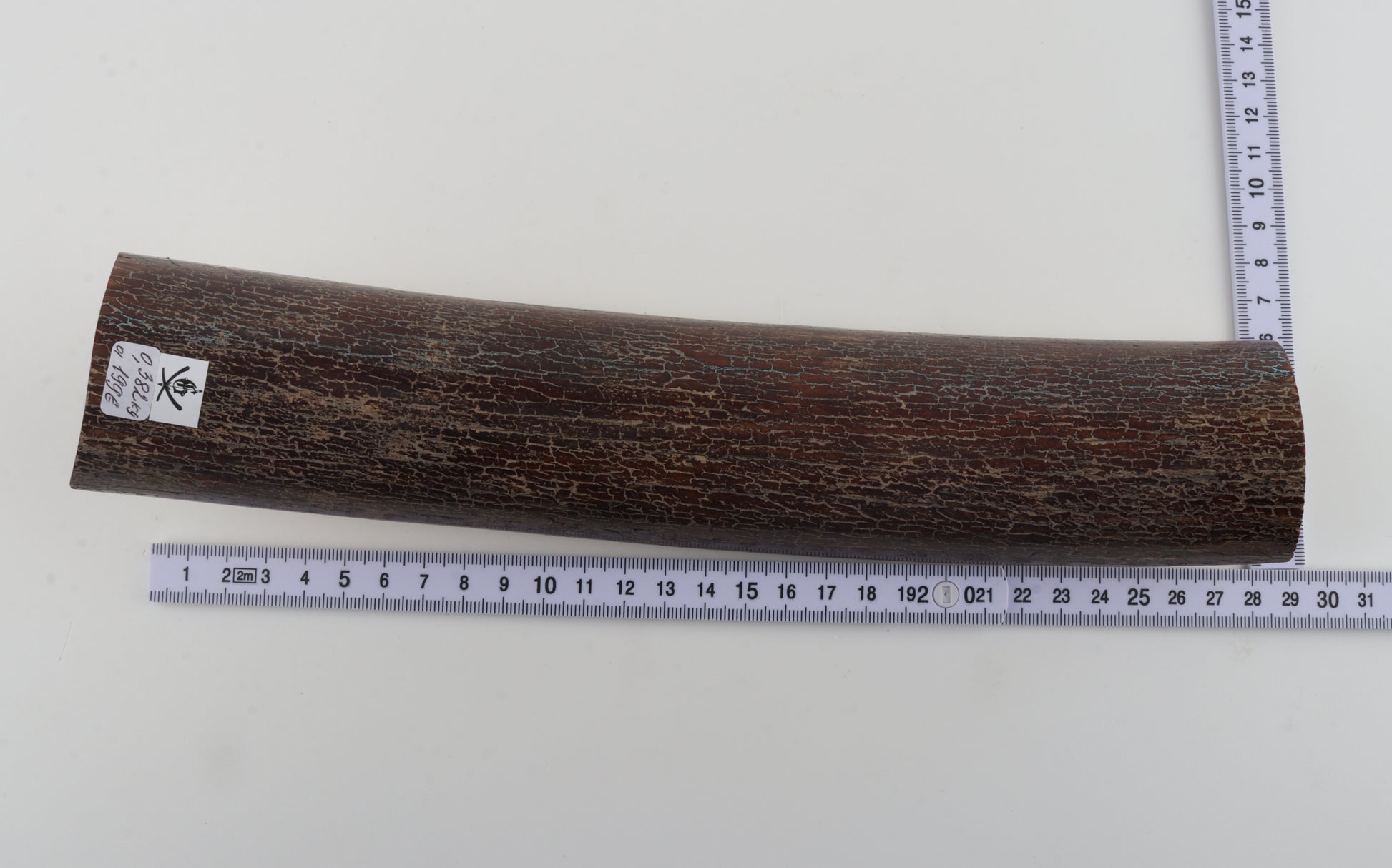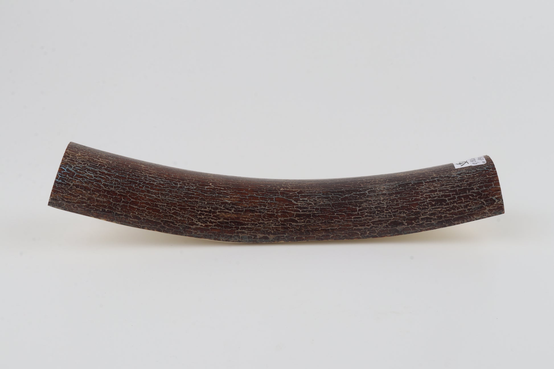 This is a premium-quality piece of Siberian woolly mammoth bark (Mammuthus primigenius). The ivory is naturally dense and solid, despite some small cracks. Tapered width: One cross-cut section is wider than the other. Consistent thickness with plenty of reserves on both ends. The natural colour of the bark is brown.