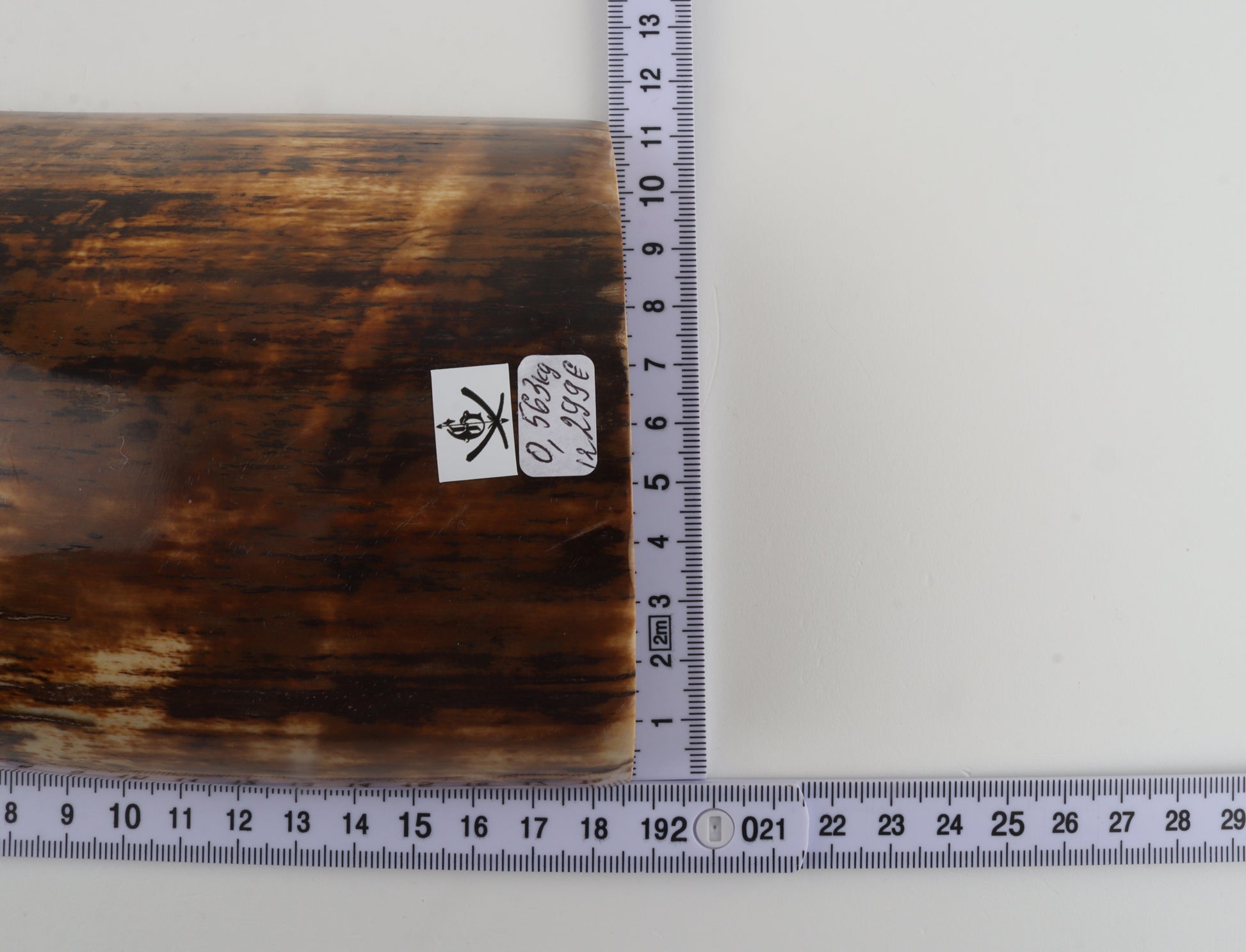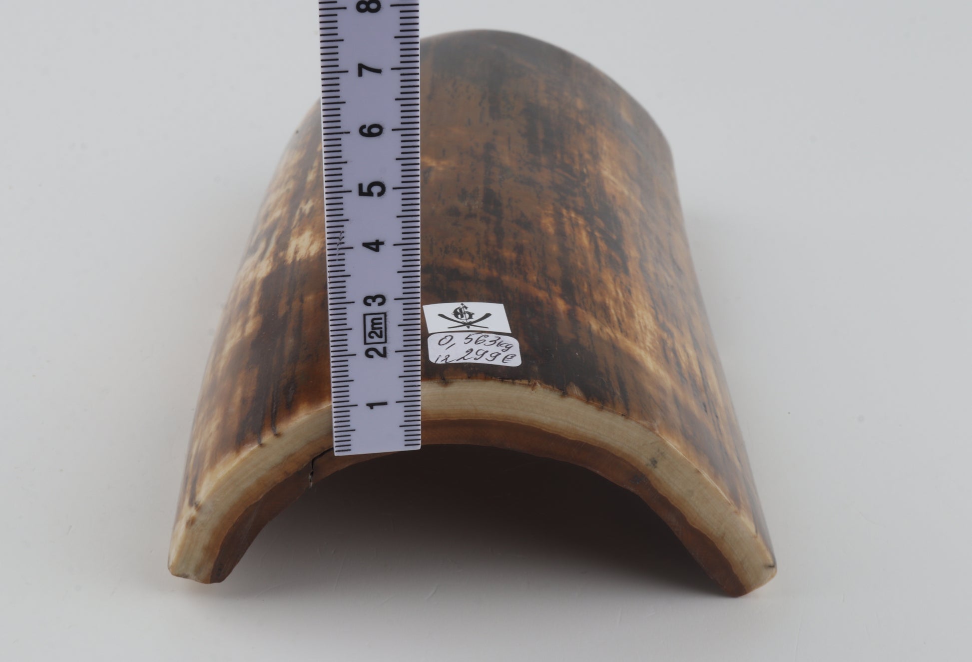 This is a premium-quality piece of Siberian woolly mammoth bark (Mammuthus primigenius). The ivory is naturally dense and solid, despite some tiny, non-penetrating cracks. Tapered thickness: One cross-cut section is thicker than the other. Consistent width with reserves on both ends. The natural color of the bark.