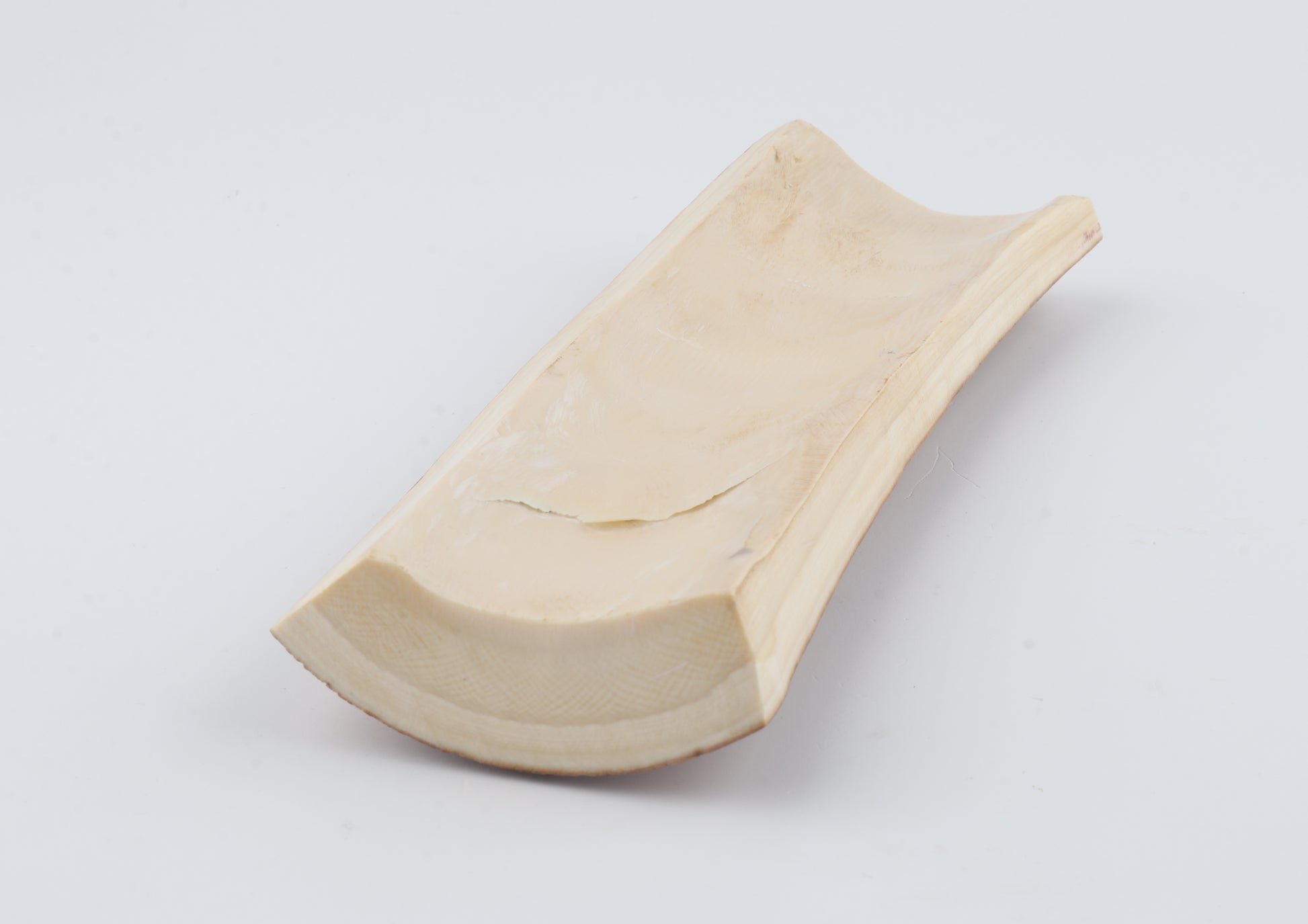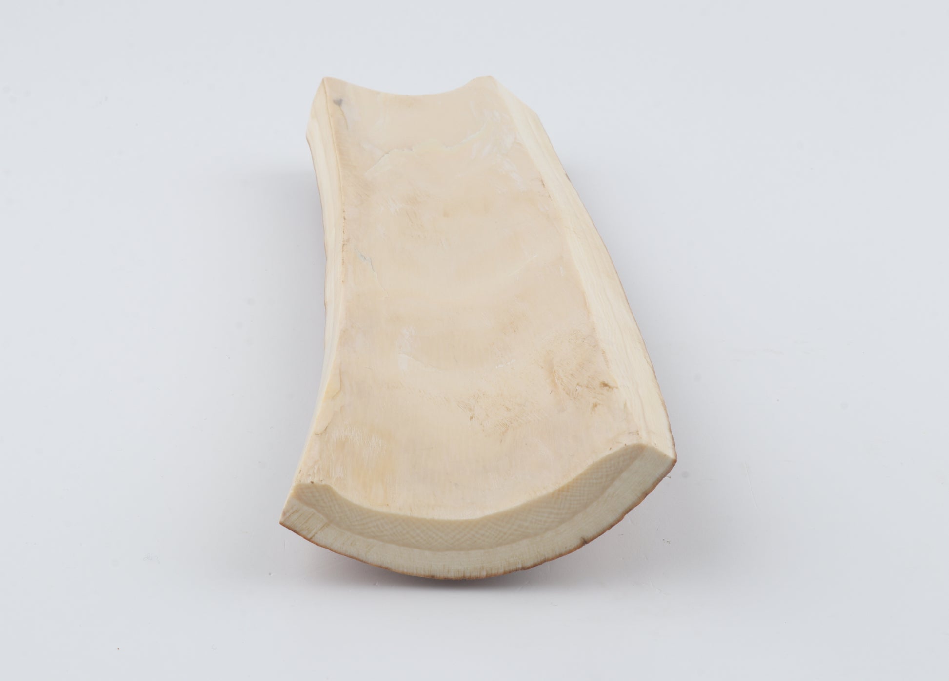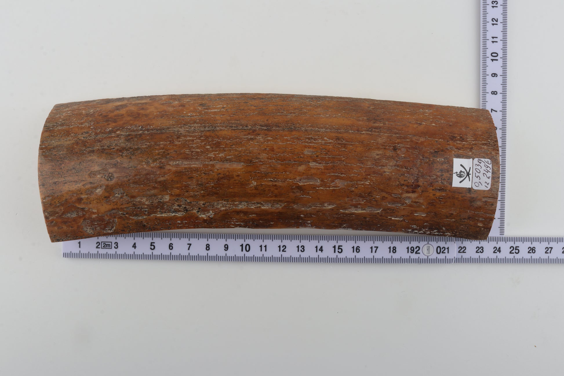 This is a premium-quality piece of Siberian woolly mammoth bark (Mammuthus primigenius). The ivory is naturally dense and solid, without cracks. Tapered width and thickness with plenty of reserves on both ends: One cross-cut section is thicker and narrower than the other. Please carefully look at the pictures for precise dimensions. The natural colour of the bark is caramel.