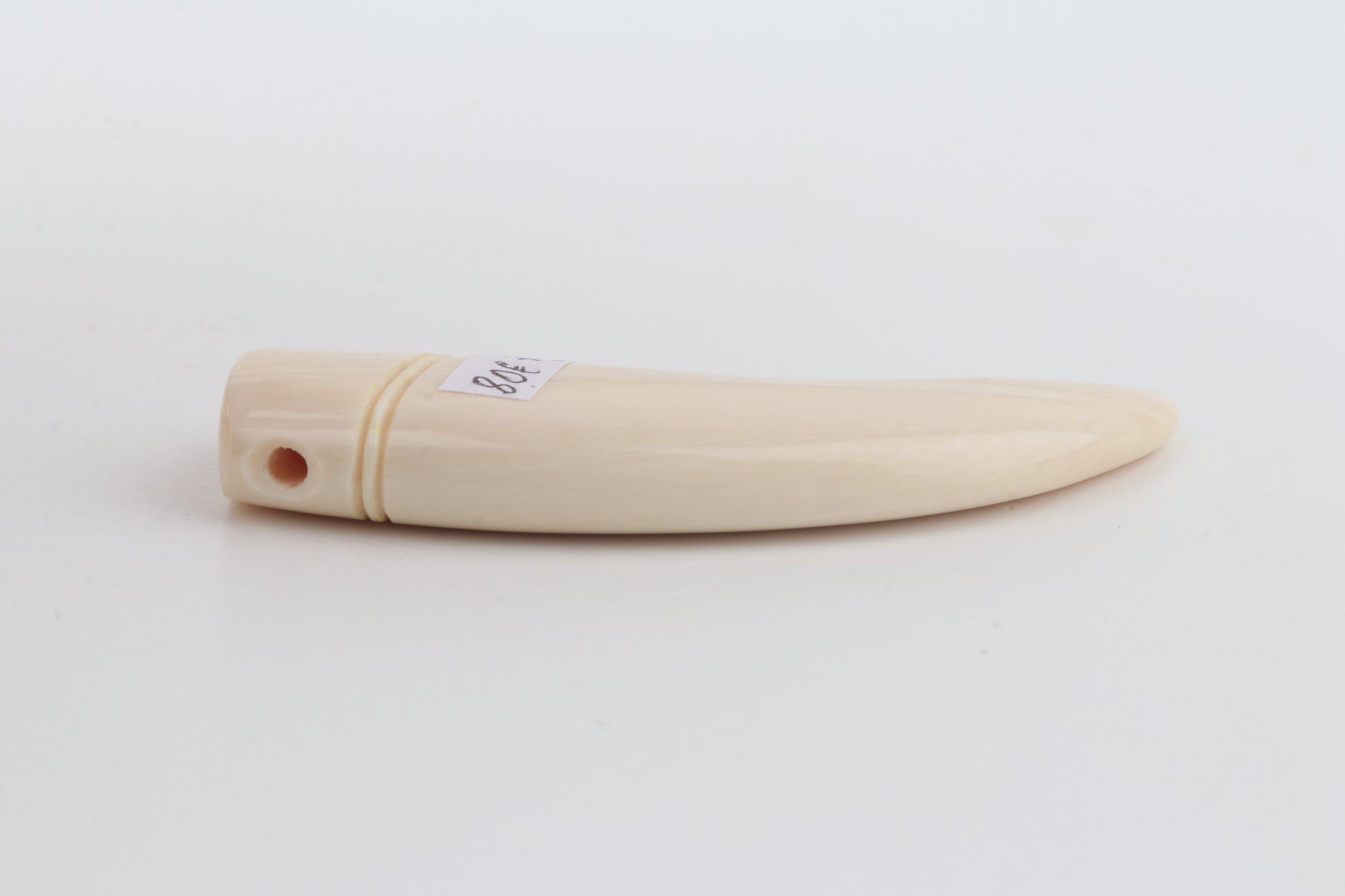 This unique amulet is hand-carved from genuine mammoth ivory (Mammuthus primigenius) in the form of a stylized tooth. The size and the polished finish of the pendant preserve the organic character and visible grain of the material.