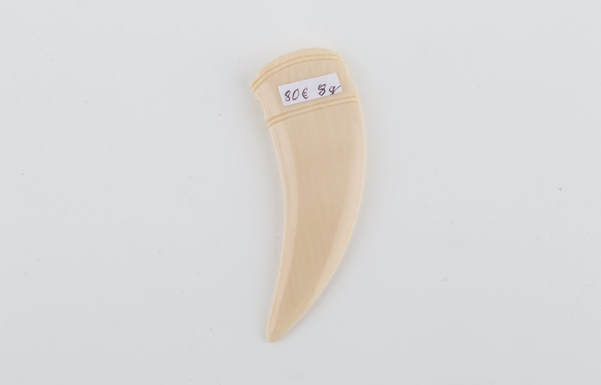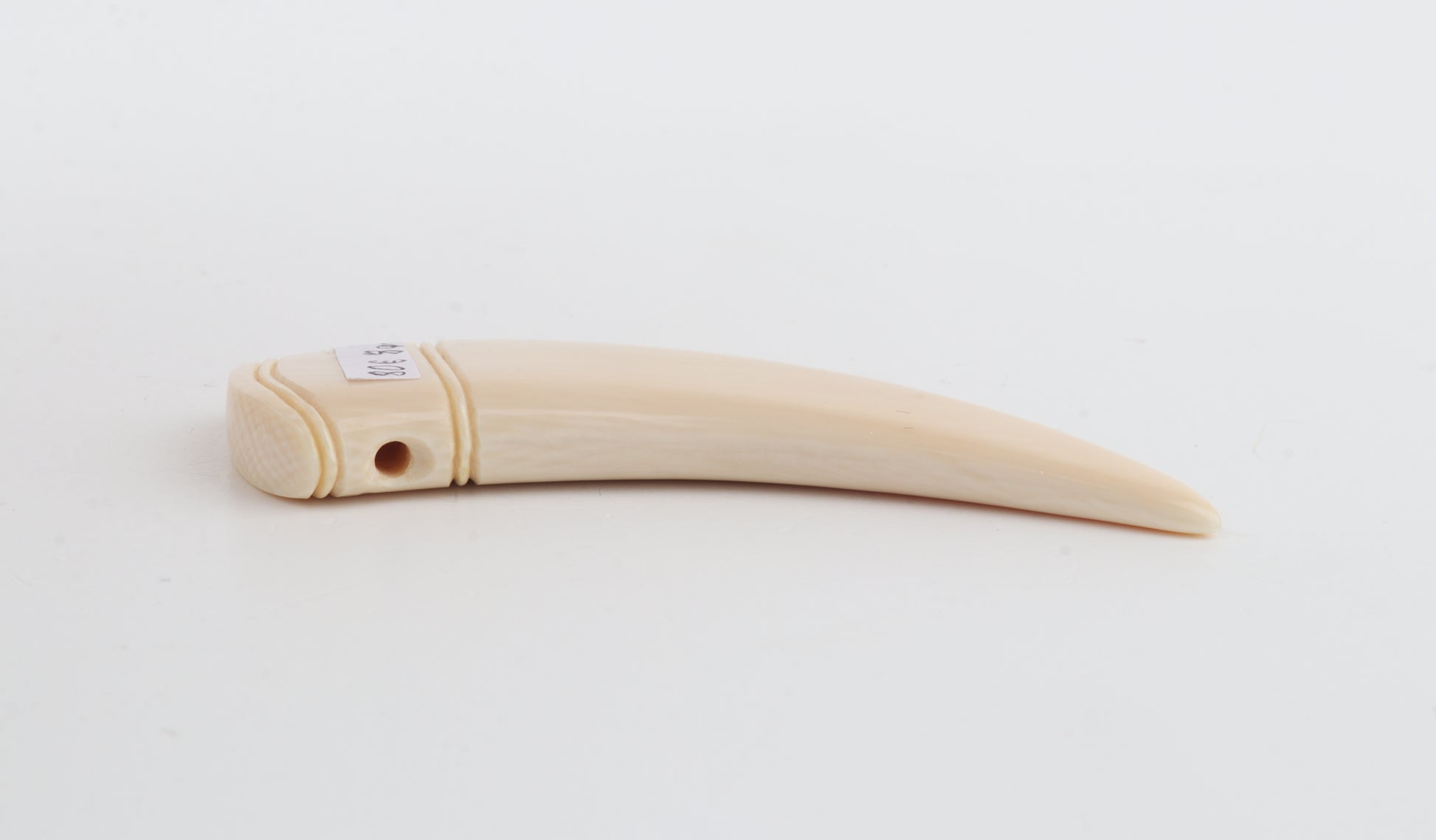 This unique pendant is hand-carved from genuine mammoth ivory (Mammuthus primigenius) in the form of a stylized tooth. The size and the polished finish of the pendant preserve the organic character and visible grain of the material.
