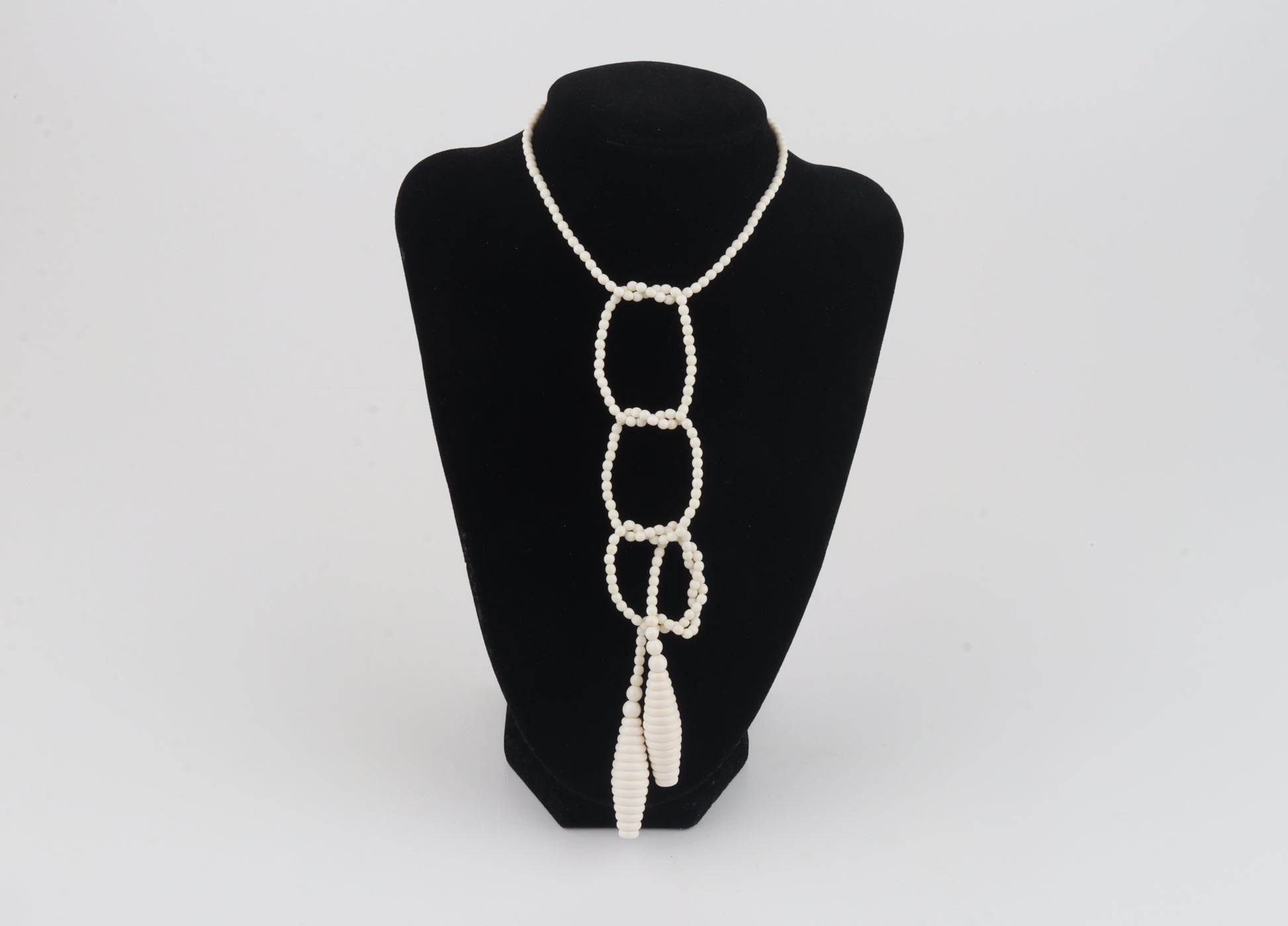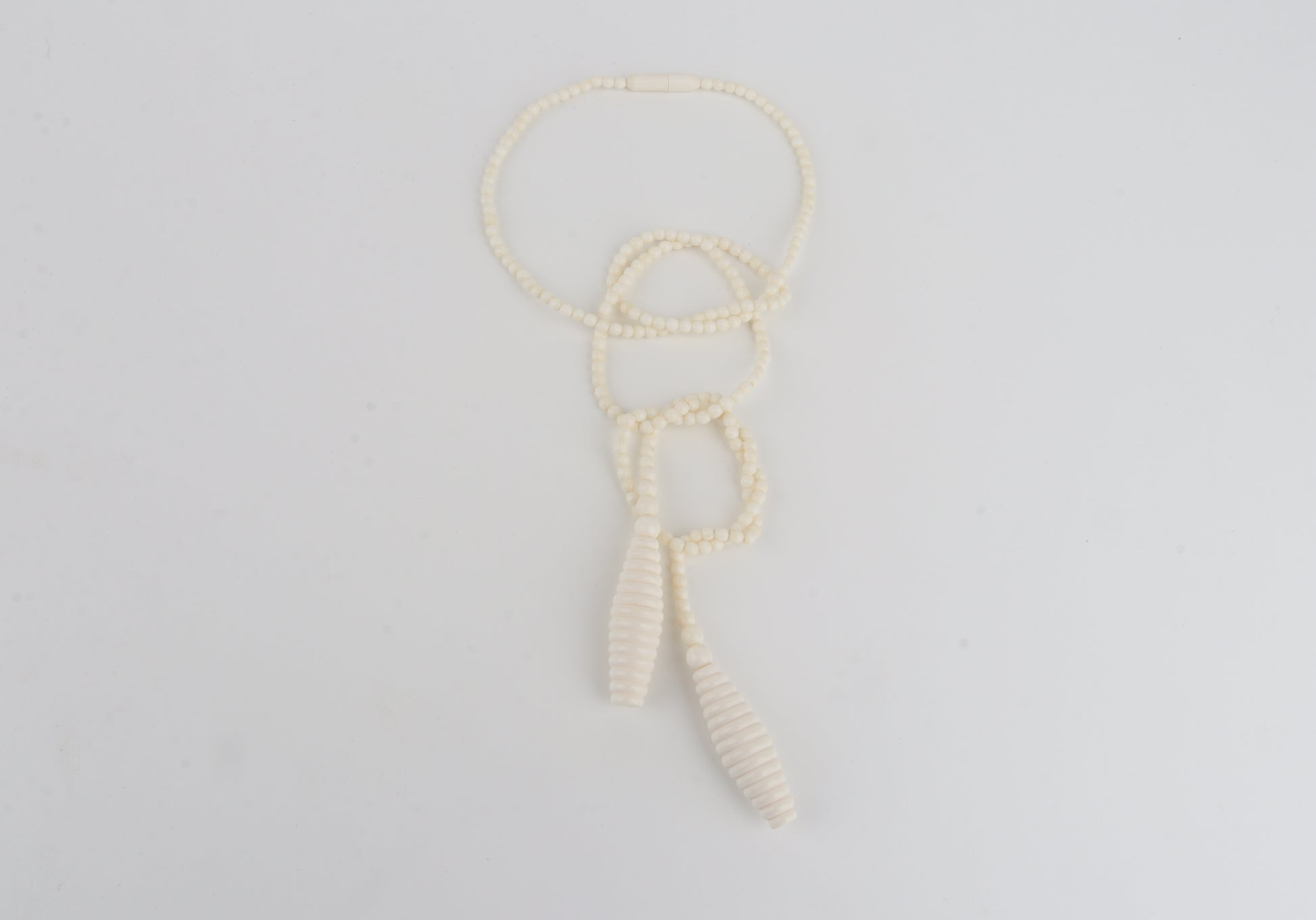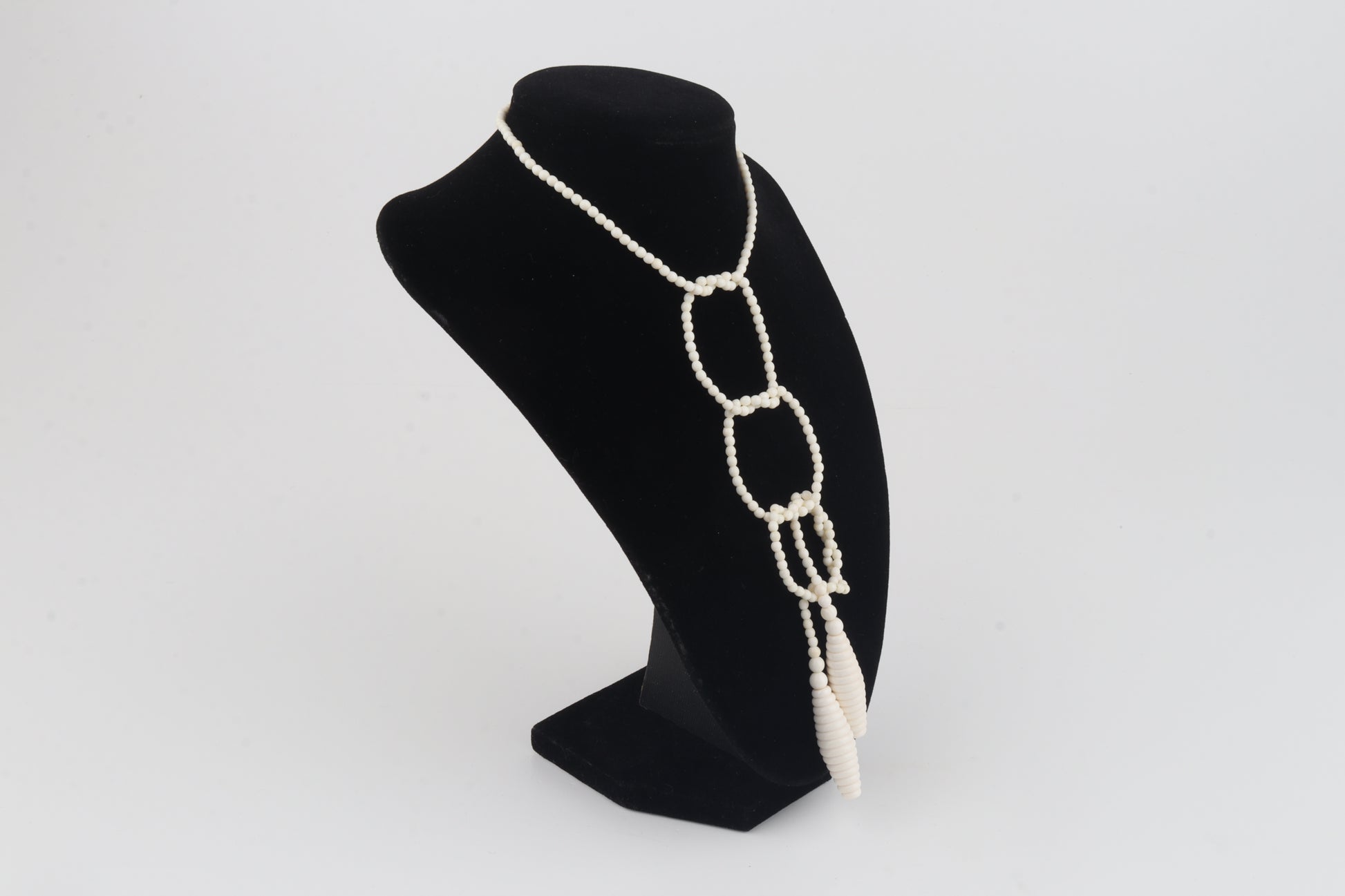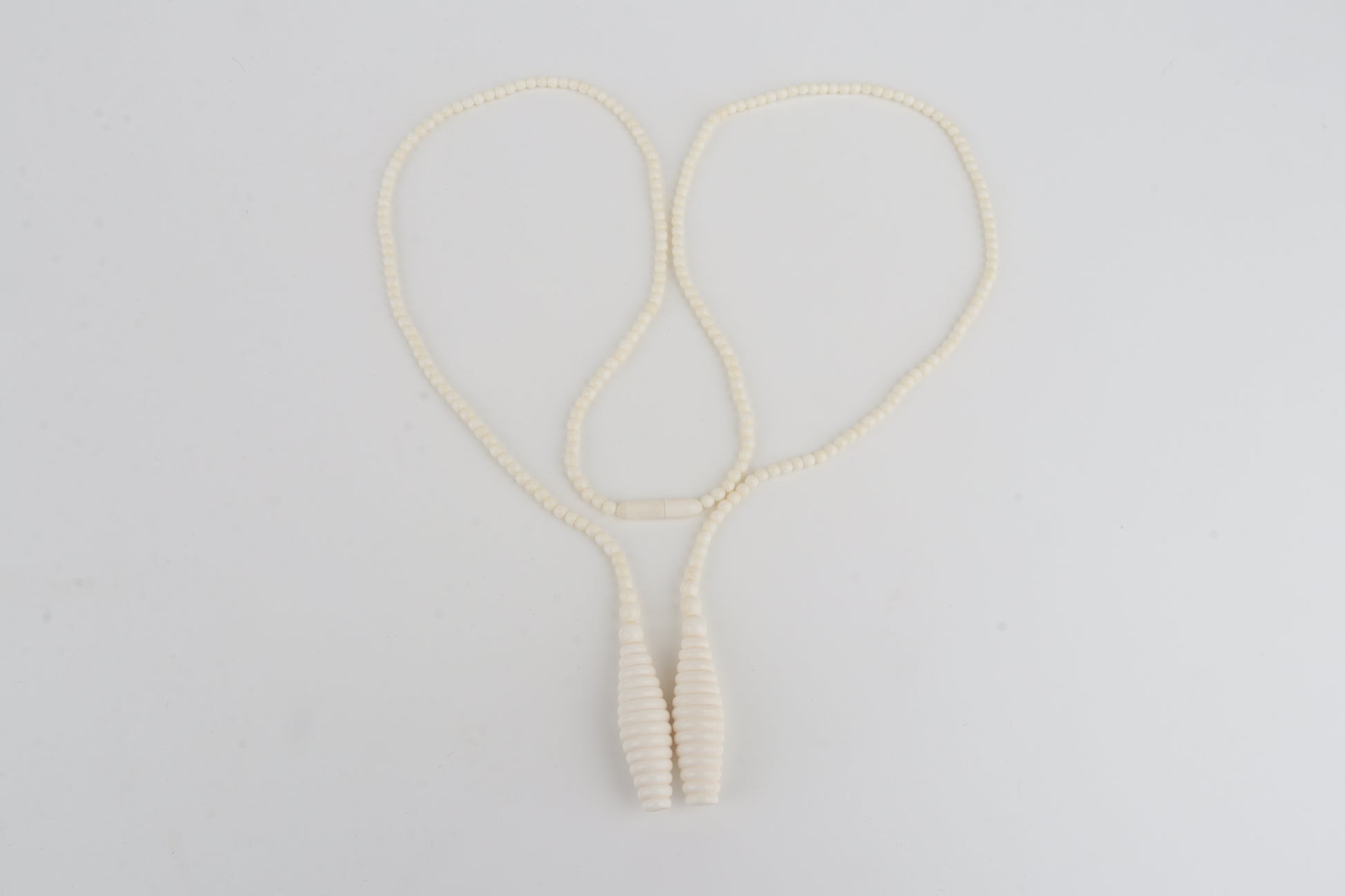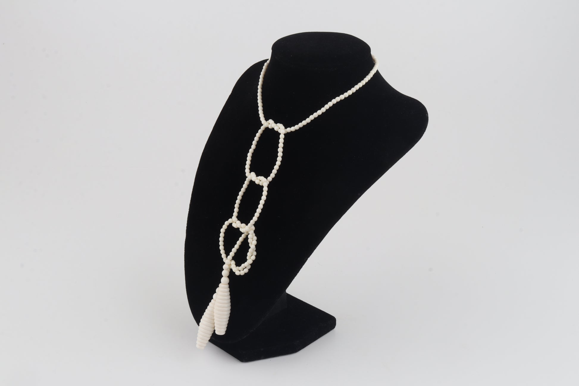 This elegant lariat necklace is crafted from genuine mammoth ivory (Mammuthus primigenius), featuring two faceted ivory drops for a refined, elongated silhouette.