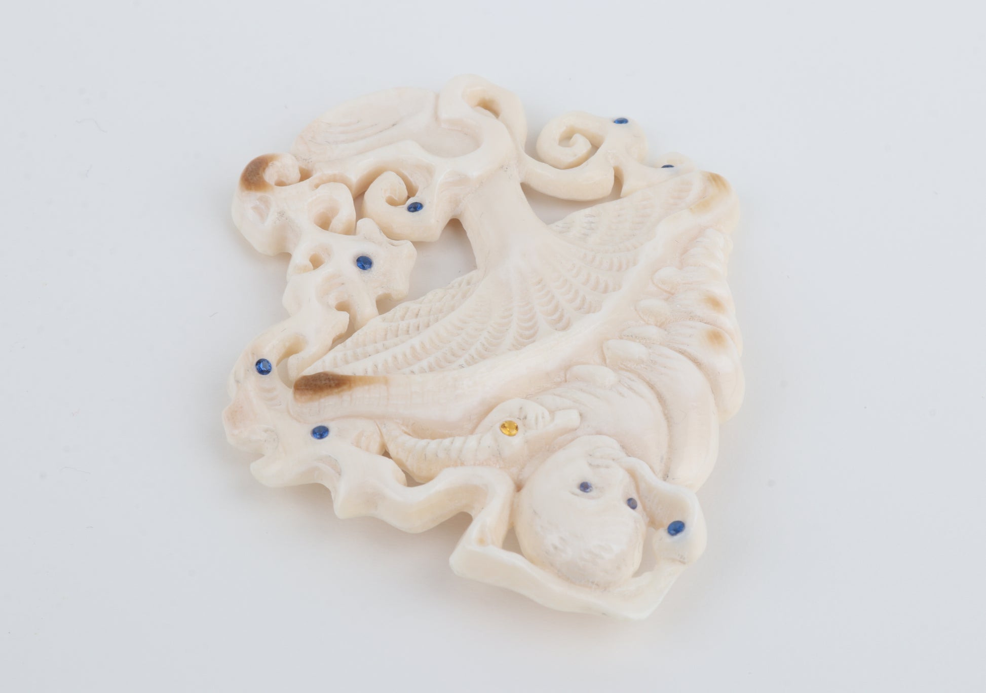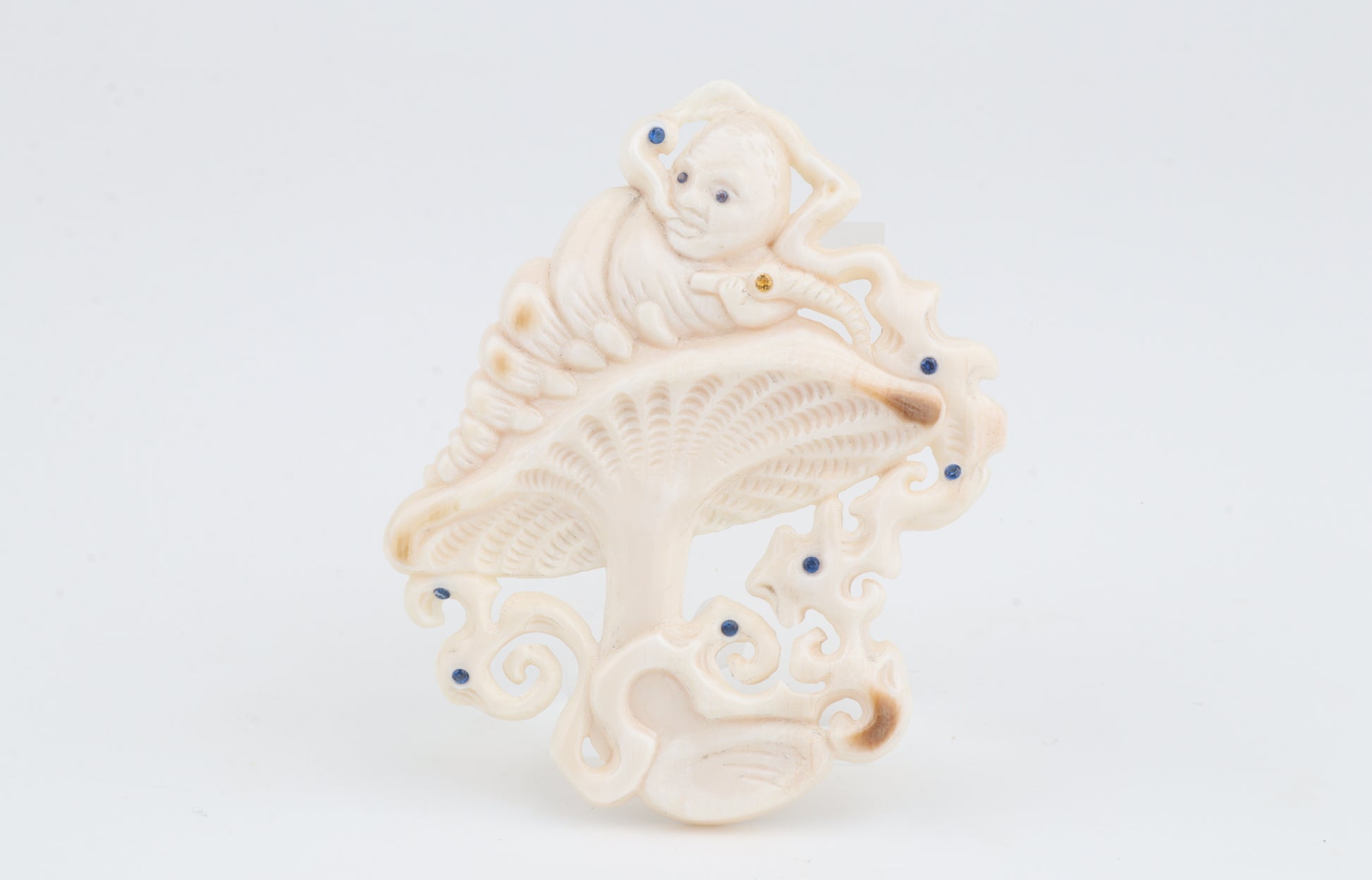 Mushrooms are widely regarded as symbols of renewal, resilience, and connection to nature, making this brooch a meaningful adornment as well as a collectible object. Its sculptural presence and rare material give it strong visual impact while remaining refined and wearable.