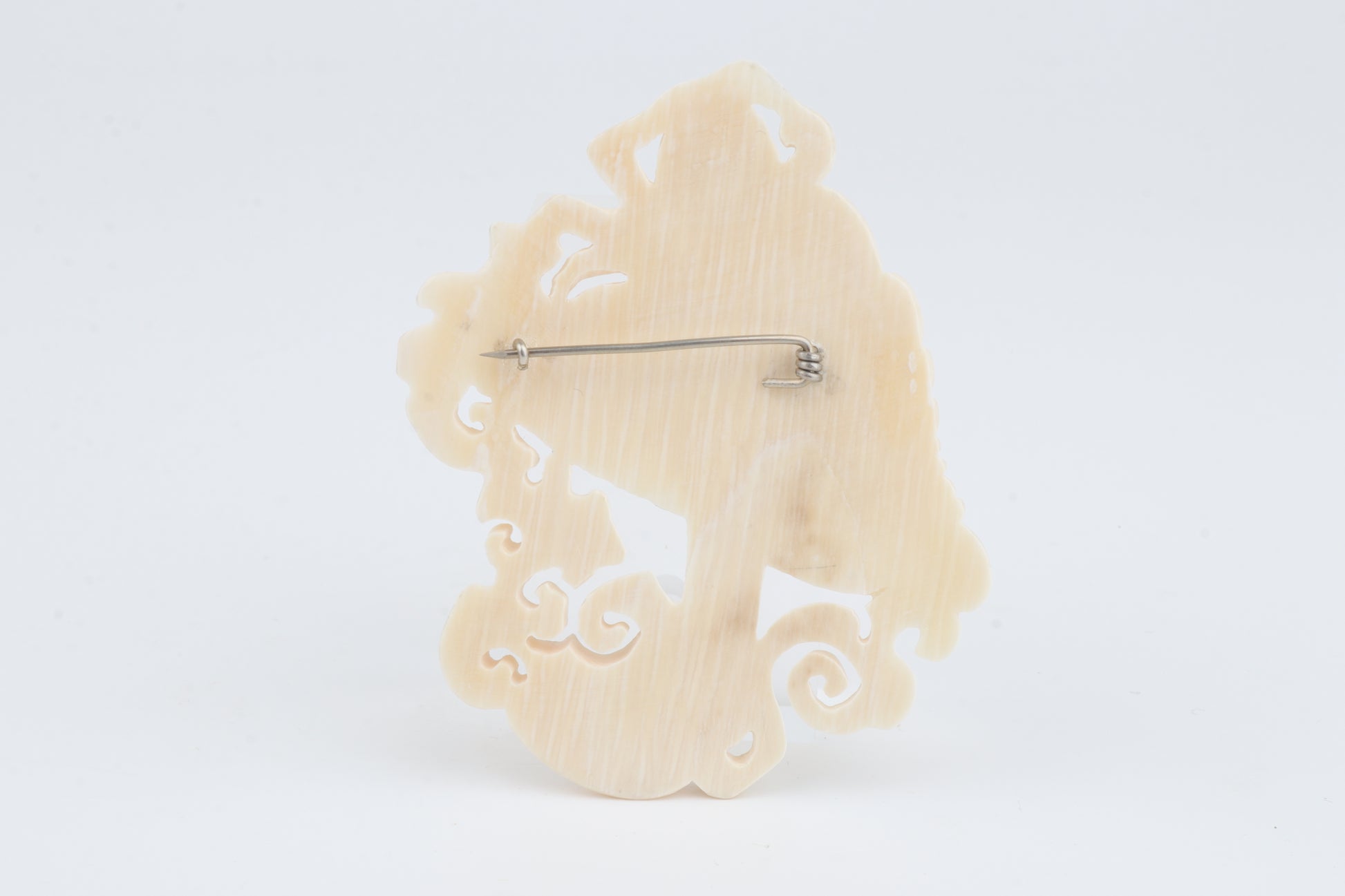 This distinctive brooch showcases a finely carved mushroom motif crafted from genuine mammoth ivory (Mammuthus primigenius). The form is sculpted with high precision, featuring a textured cap and delicately shaped. The surface retains natural tonal variations, emphasizing the organic character of the material.