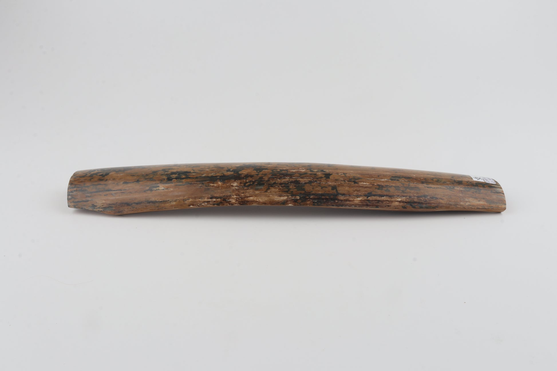 This is a premium-quality piece of Siberian woolly mammoth bark (Mammuthus primigenius). The ivory is naturally dense and solid, despite some small, non-penetrating cracks. Tapered width: One cross-cut section is slightly wider than the other. Consistent thickness with reserves on both ends. The natural colour of the bark is mustard-blue.