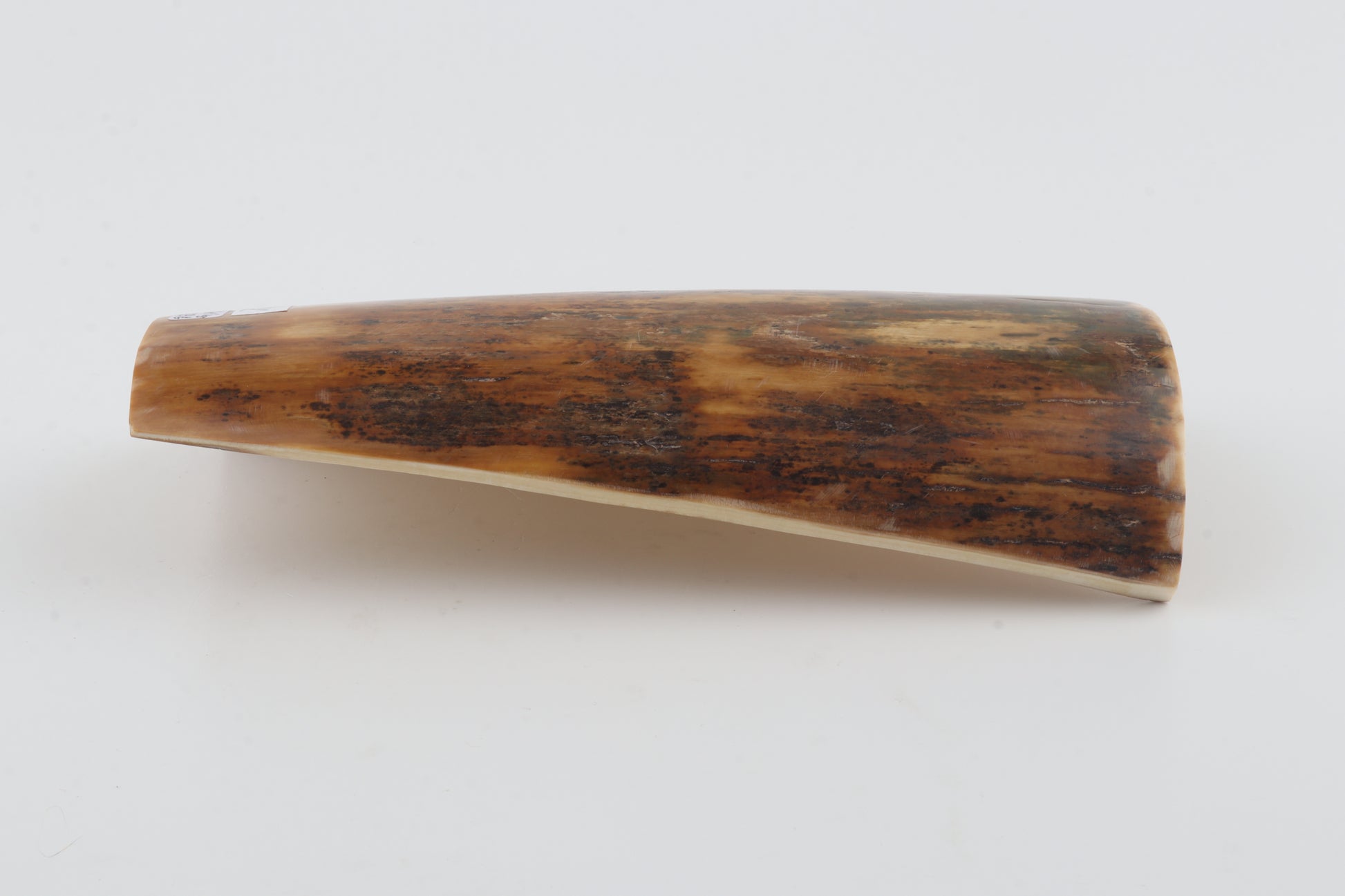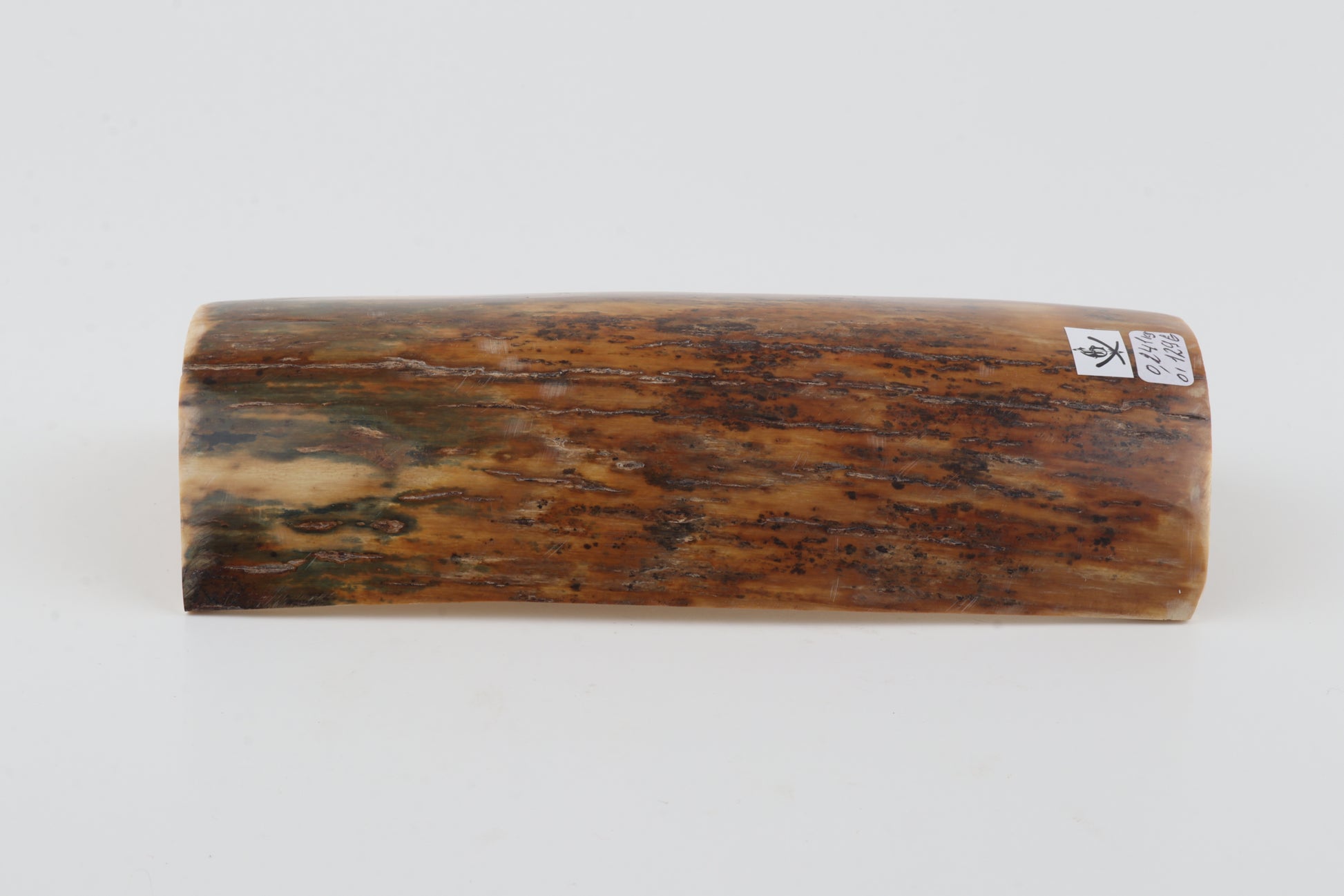 This is a premium-quality piece of Siberian woolly mammoth bark (Mammuthus primigenius). The ivory is naturally dense and solid, despite one small crack. Tapered width and thickness with reserves on both ends: One cross-cut section is thicker and wider than the other. Please carefully look at the pictures for precise dimensions. The natural colour of the bark is mustard-green.