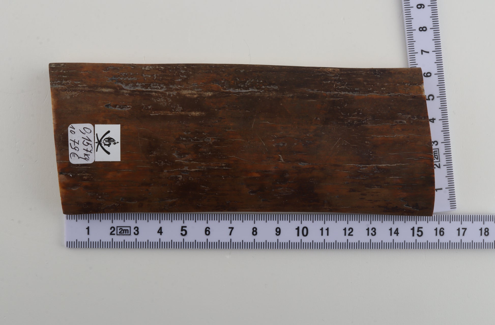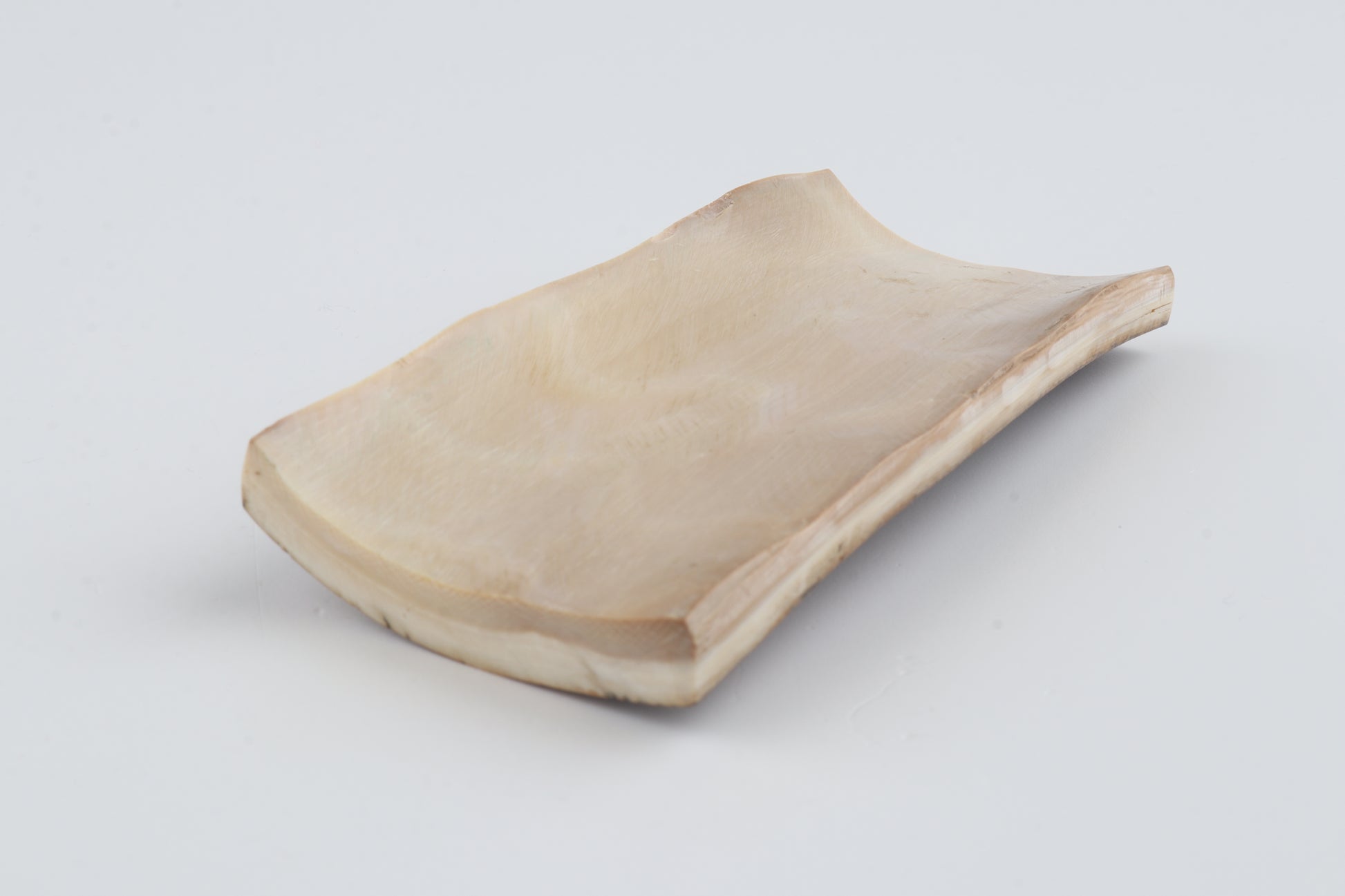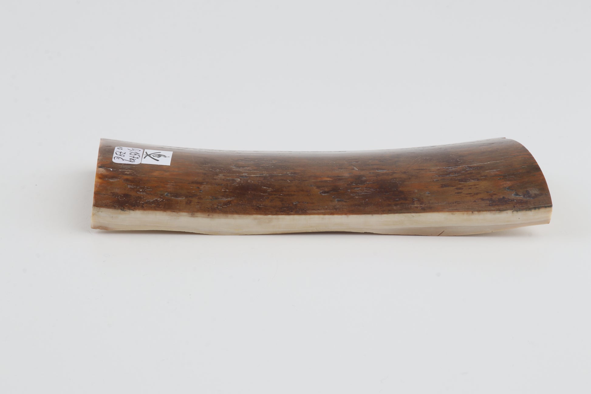 This is a premium-quality piece of Siberian woolly mammoth bark (Mammuthus primigenius). The ivory is naturally dense and solid, despite one small, non-penetrating crack on the edge of the thinner cross-cut section. Consistent width with reserves on both ends. The natural colour of the bark is mustard.