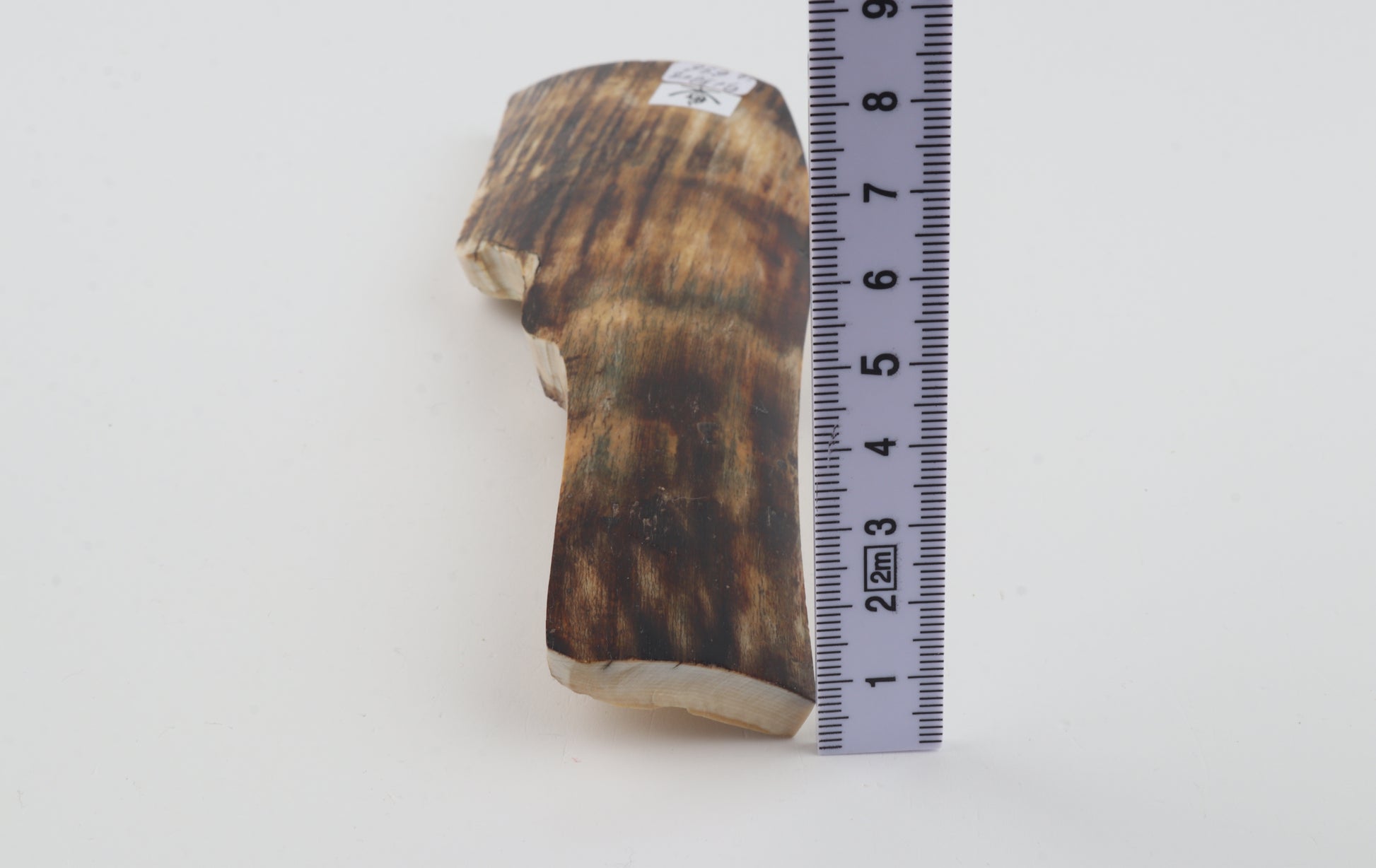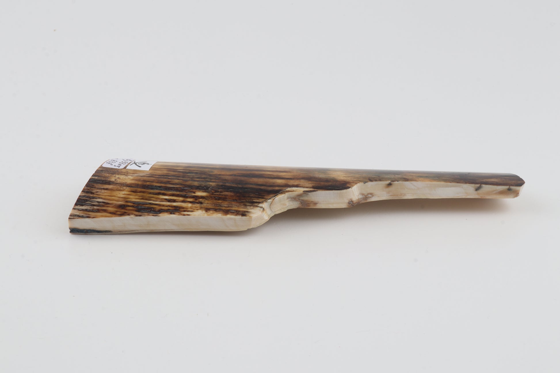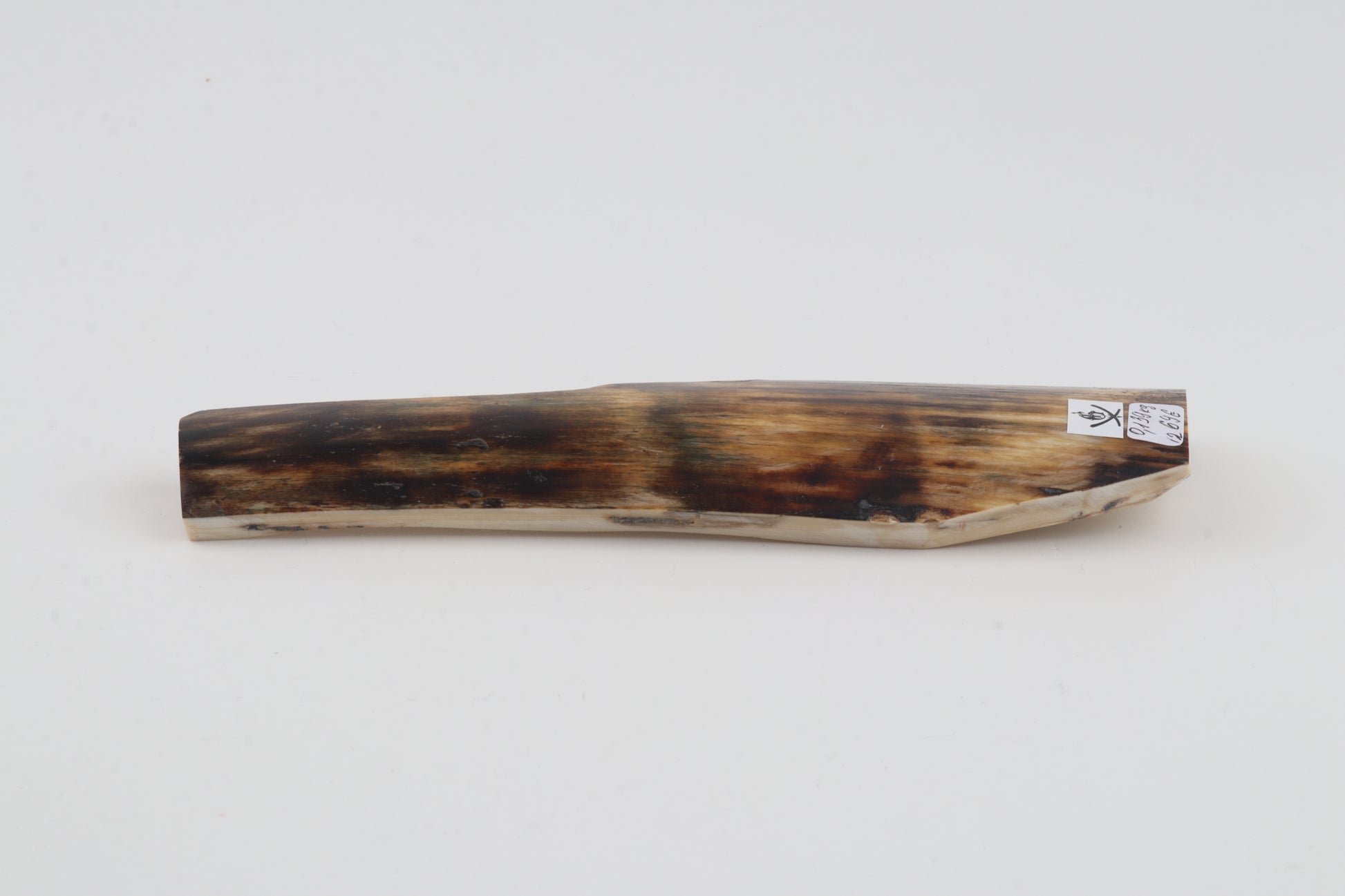This is a premium-quality piece of Siberian woolly mammoth bark (Mammuthus primigenius). The ivory is naturally dense and solid, despite one tiny crack on the underside. Tapered width and thickness with reserves on both ends: One cross-cut section is thicker and wider than the other. This piece was cut at angles - please carefully look at the pictures for precise dimensions. The natural colour of the bark is a mix of brown, yellow and blue.