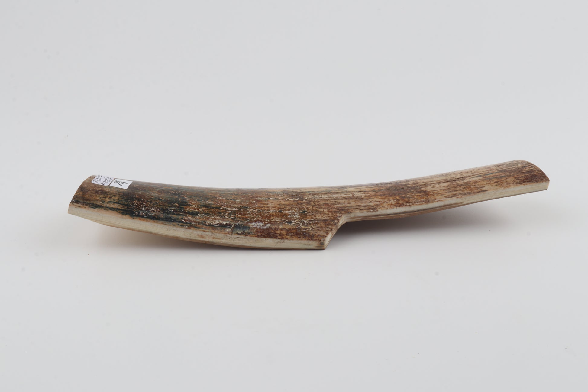 This is a premium-quality piece of Siberian woolly mammoth bark (Mammuthus primigenius). The ivory is naturally dense and solid, despite one small crack on the edge of one cross-cut section. Tapered width: One cross-cut section is wider than the other. Consistent thickness with reserves on both ends. One side was cut at an angle - please carefully look at the pictures for precise dimensions. The natural colour of the bark is a mix of brown, orange, blue and green.