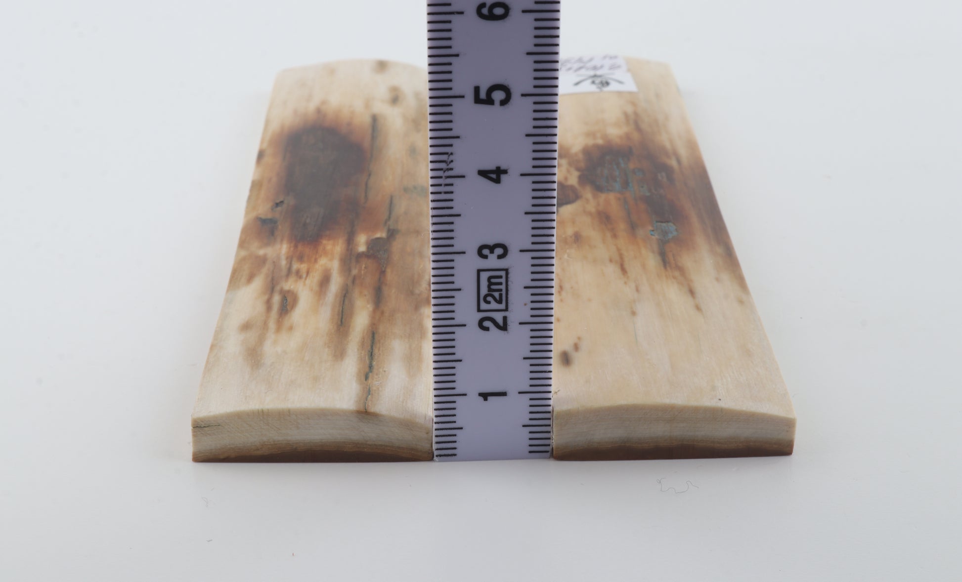 These orange-white mammoth bark scales are natural and not stabilised or epoxy-filled. Please note that none of our mammoth ivory products are artificially stabilised or restored unless explicitly stated.