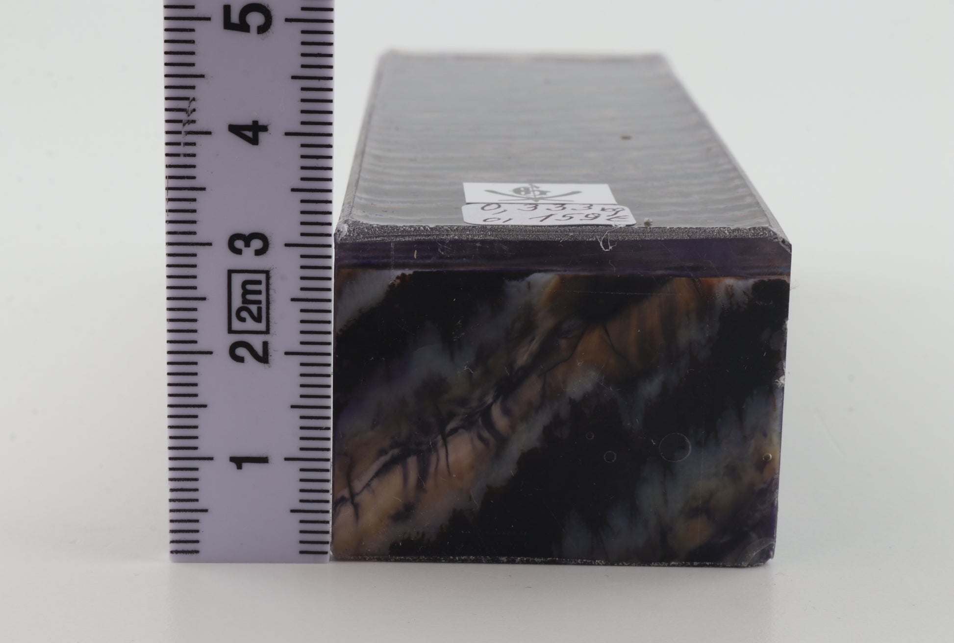 This is a cross-cut, stabilised woolly mammoth molar piece (Mammuthus primigenius). This square block can be precision-cut, drilled, sanded, polished etc. to achieve the desired results. Consistent width and thickness. The colour of the molar is purple.