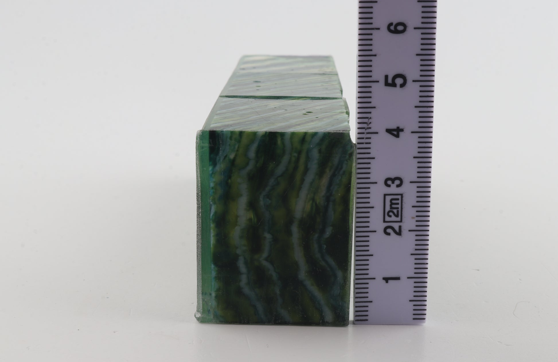 This is a cross-cut, stabilized woolly mammoth molar piece (Mammuthus primigenius). This square block can be precision-cut, drilled, sanded, polished etc. to achieve the desired results. Consistent width and thickness. The colour of the molar is green.