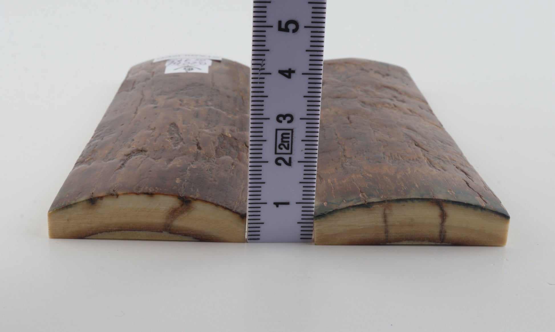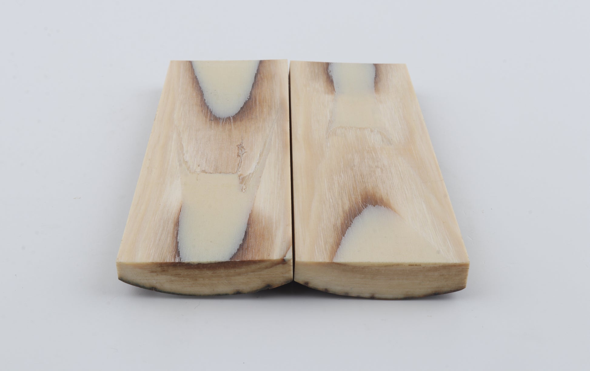 This is a pre-cut pair of stabilized woolly mammoth bark scales (Mammuthus primigenius). These scales can be cut, drilled, sanded, polished etc. to achieve the desired results. Consistent width and thickness with reserves on both ends. The undersides are flat. The colour of the bark is brown-caramel.