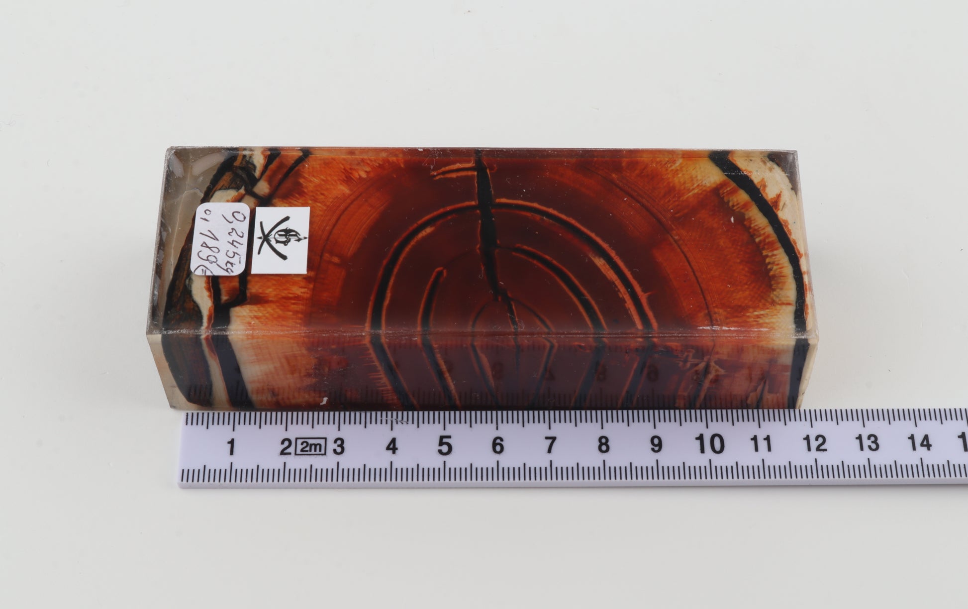 This is a cross-cut stabilized woolly mammoth ivory block (Mammuthus primigenius). This block can be precision-cut, drilled, sanded, polished etc. to achieve the desired results. Consistent width and thickness with reserves on both ends. The colour of the ivory is terracotta.