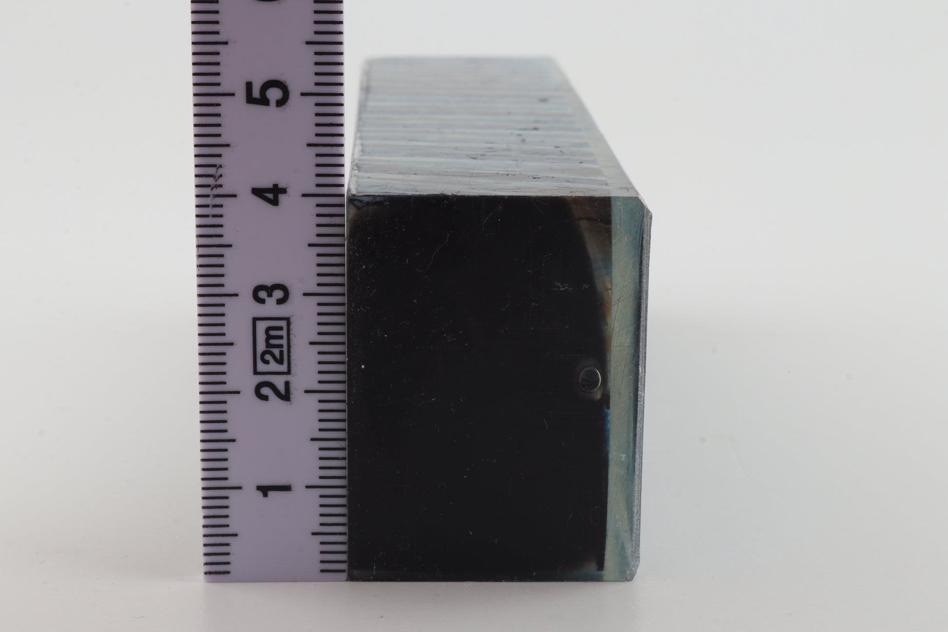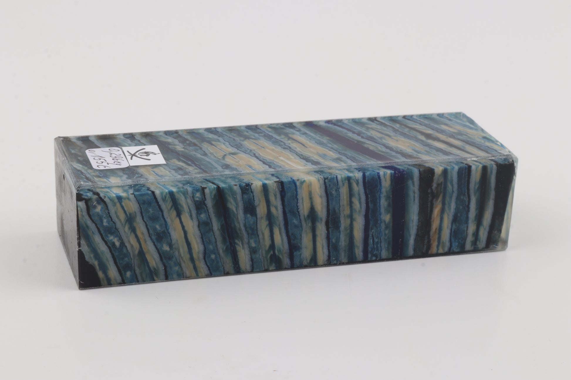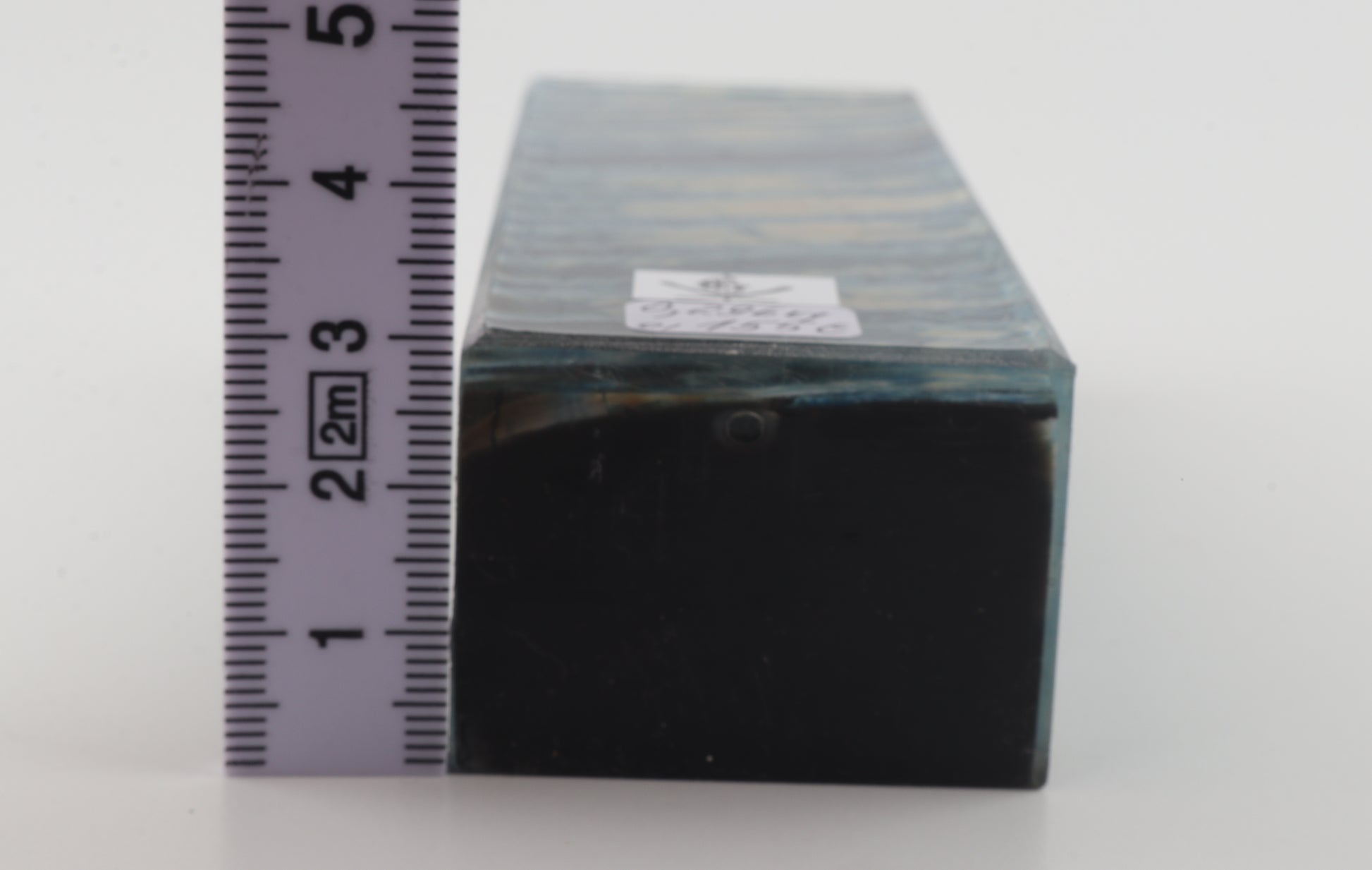 This is a cross-cut, stabilized woolly mammoth molar piece (Mammuthus primigenius). This square block can be precision-cut, drilled, sanded, polished etc. to achieve the desired results. Consistent width and thickness. The colour of the molar is blue.