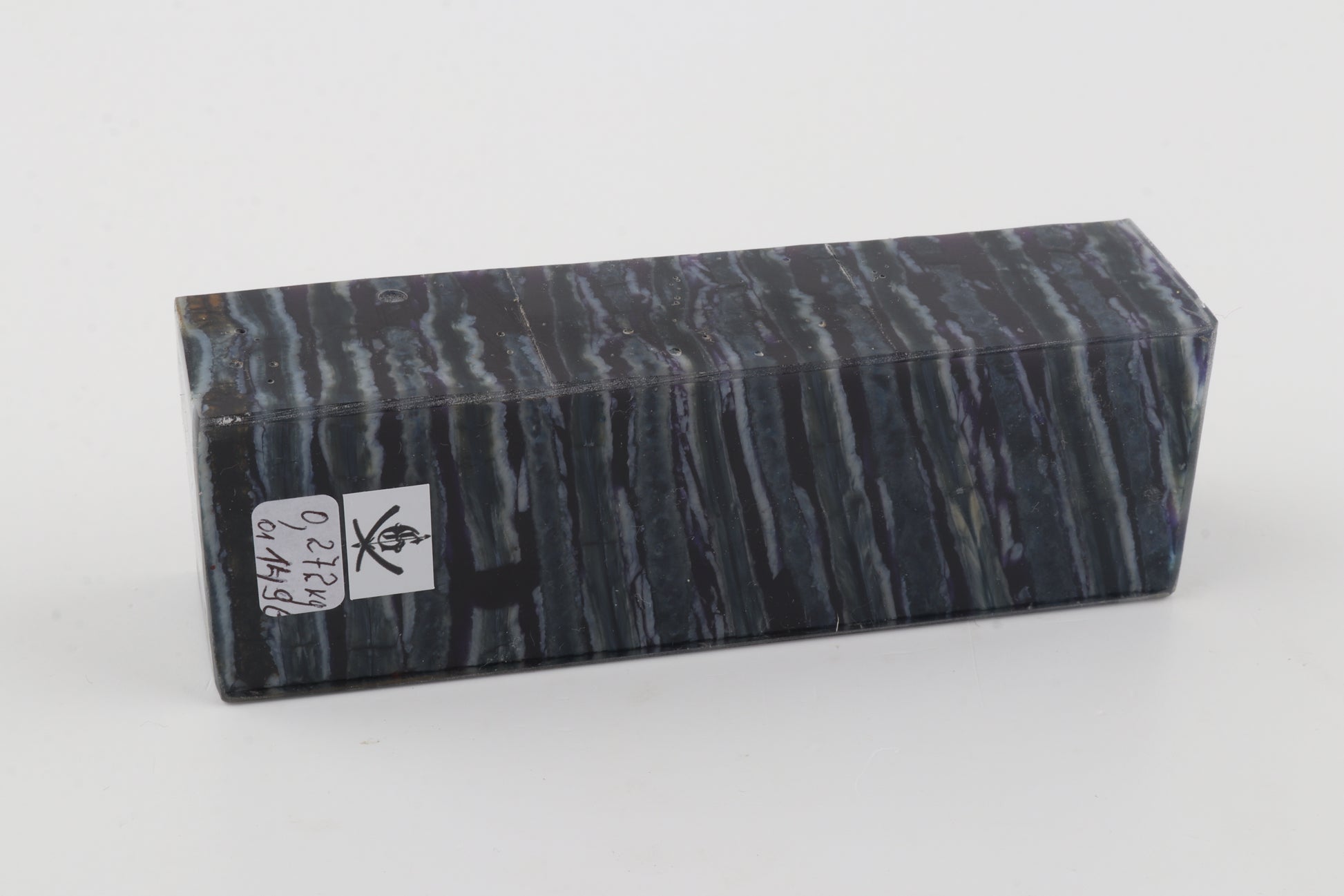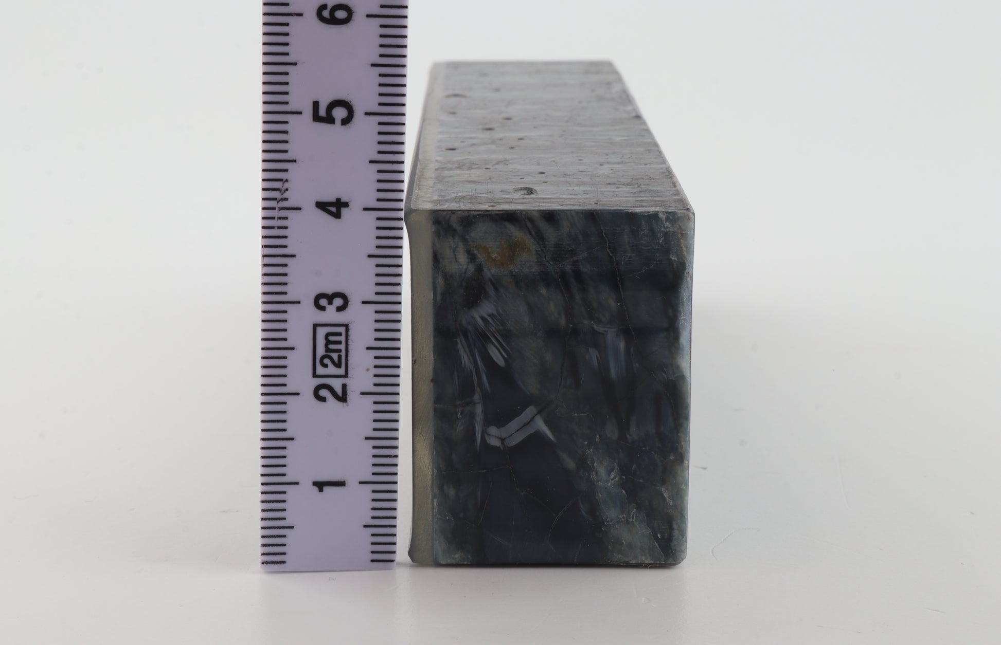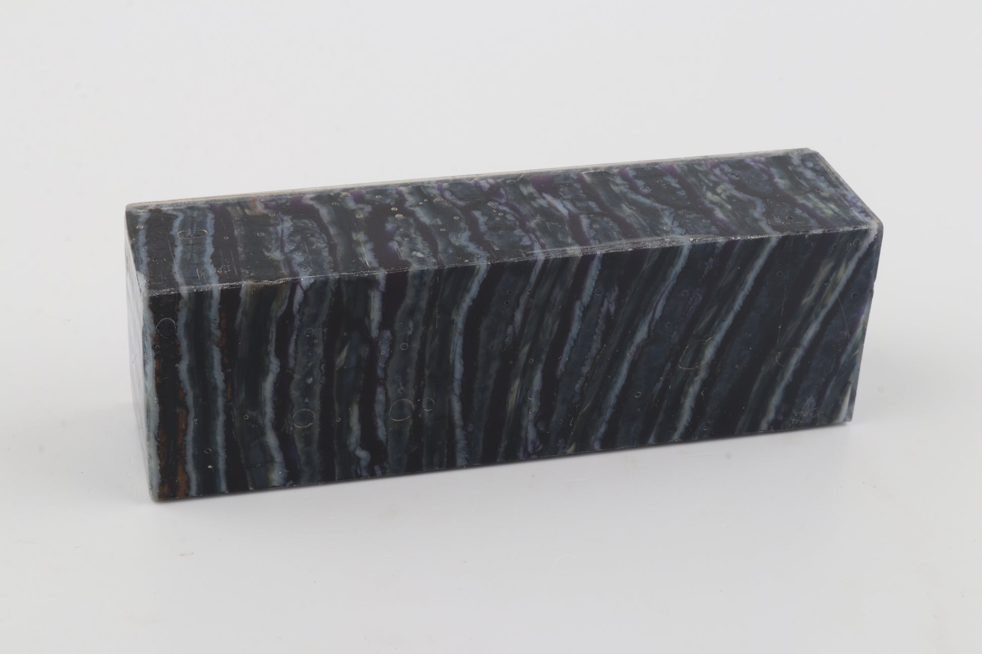 This is a cross-cut, stabilized woolly mammoth molar piece (Mammuthus primigenius). This square block can be precision-cut, drilled, sanded, polished etc. to achieve the desired results. Consistent width and thickness. The colour of the molar is a mix of blue, green and grey.