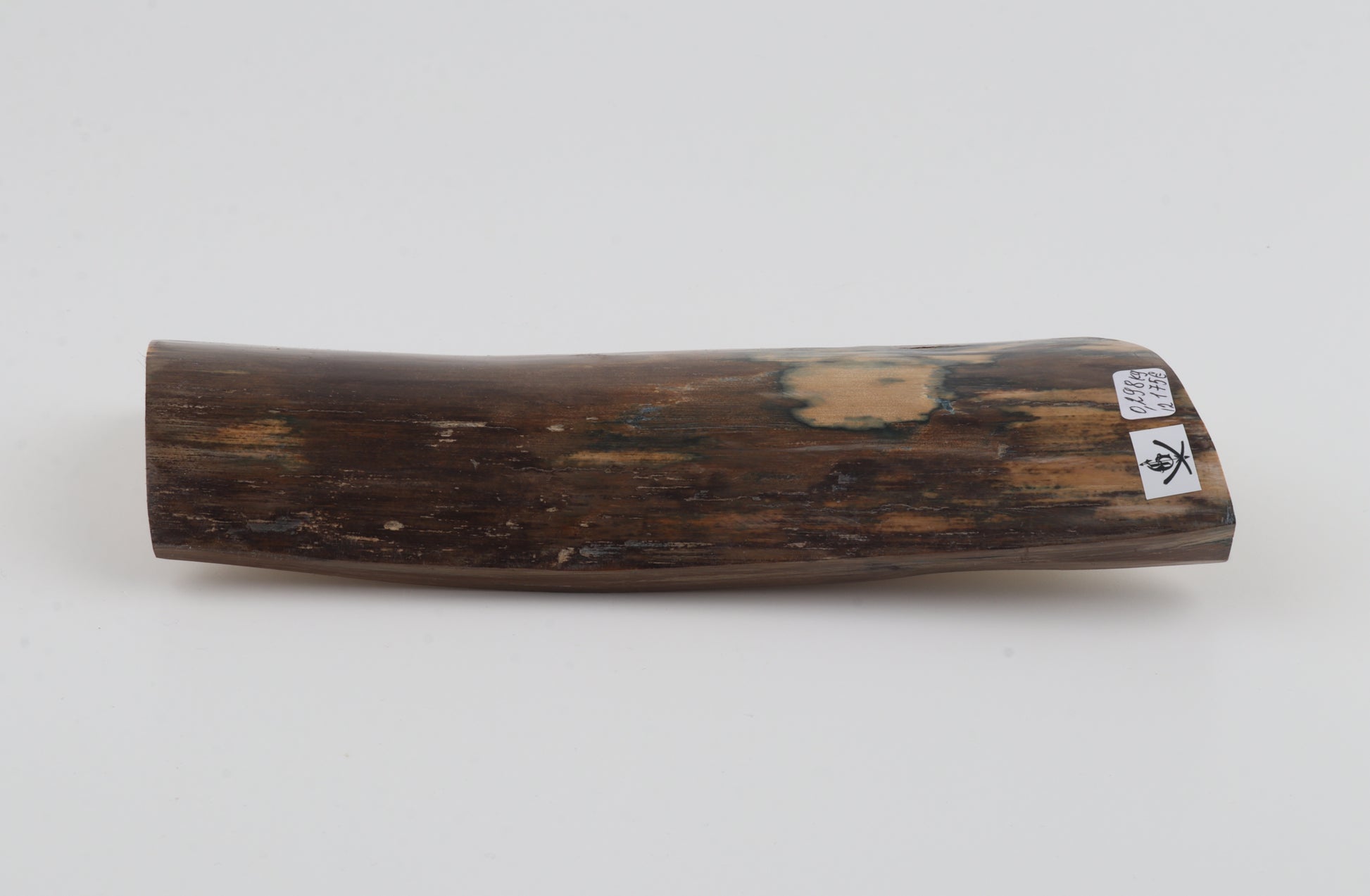 This is a premium-quality piece of Siberian woolly mammoth bark (Mammuthus primigenius). The ivory is naturally dense and solid, despite some small cracks. Tapered width and thickness with reserves on both ends: One cross-cut section is thicker and wider than the other. Please carefully look at the pictures for precise dimensions. The natural colour of the bark is brown-blue.