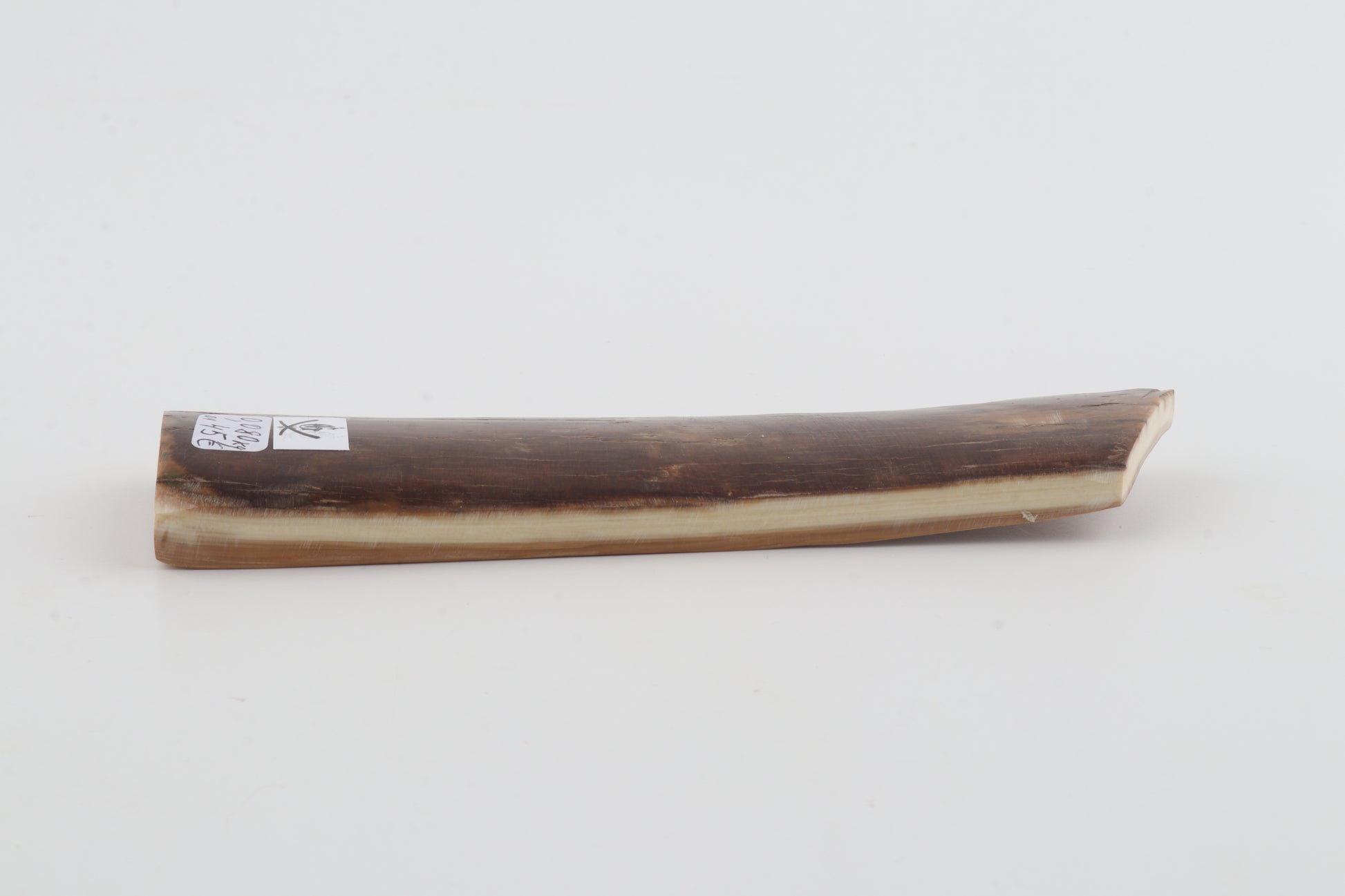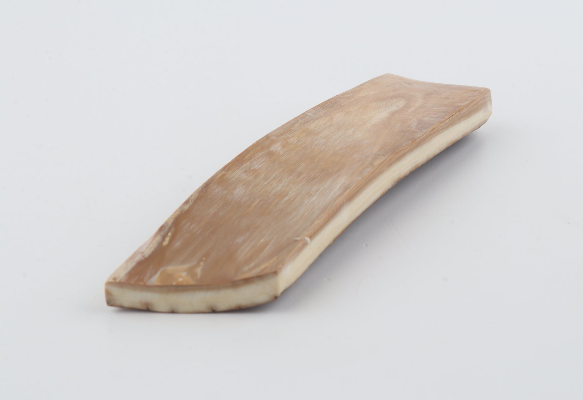 This is a premium-quality piece of Siberian woolly mammoth bark (Mammuthus primigenius). The ivory is naturally dense and solid, despite some tiny fissures on the larger cross-cut section. Tapered width and thickness with reserves on both ends: One cross-cut section is thicker and wider than the other. Please carefully look at the pictures for precise dimensions. The natural color of the bark is brown.