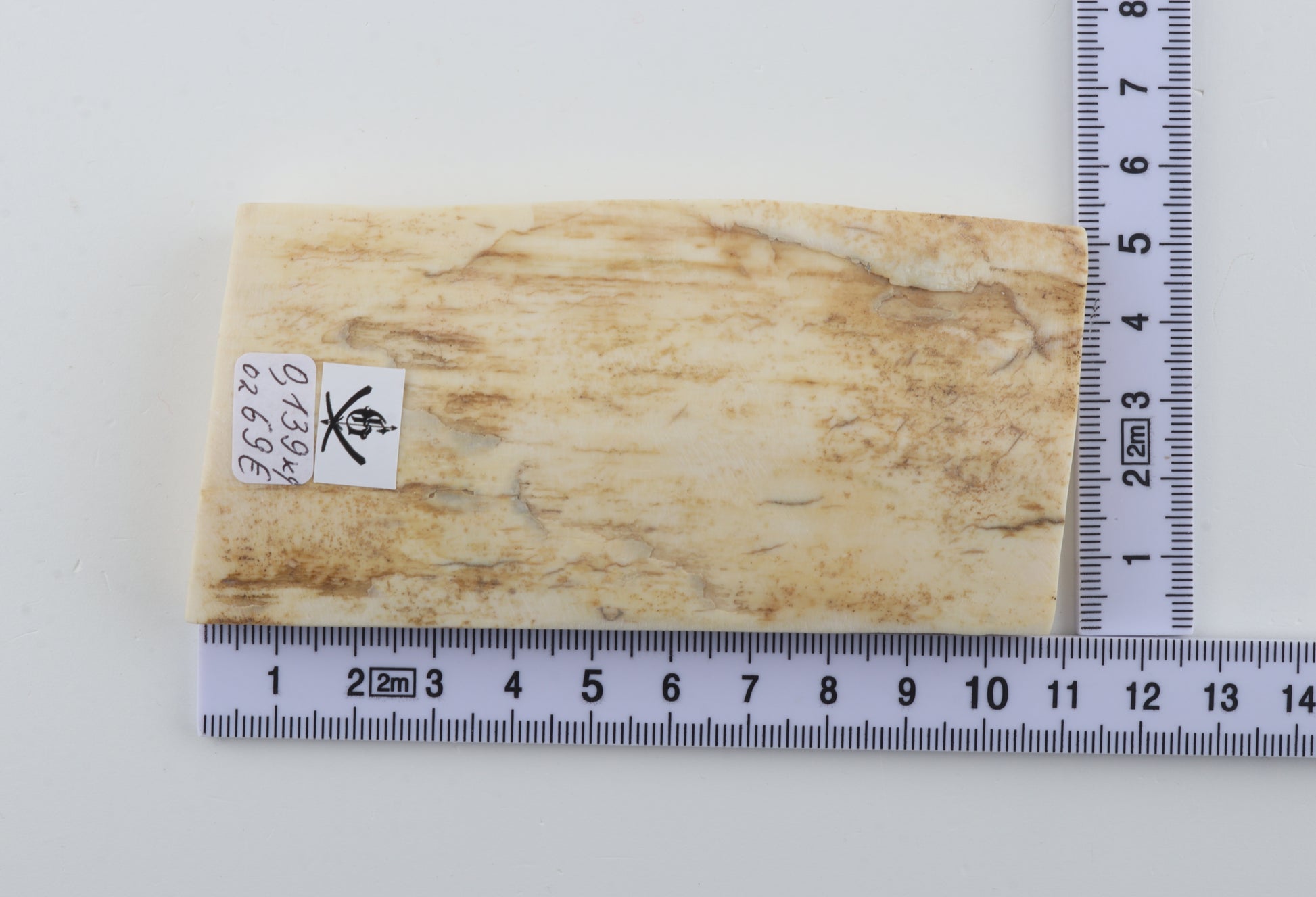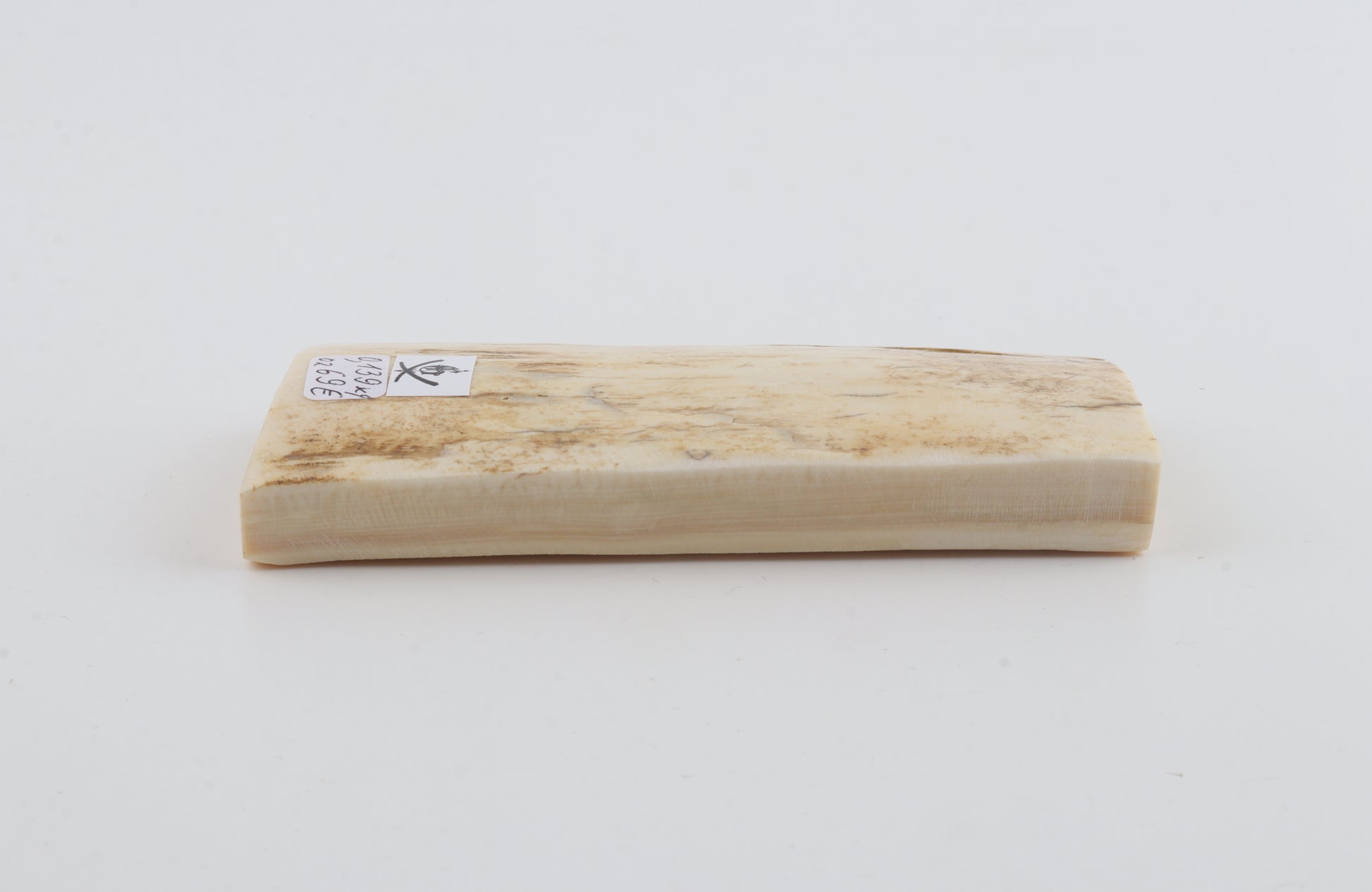 This is a premium-quality piece of Siberian woolly mammoth bark (Mammuthus primigenius). The ivory is naturally dense and solid, despite some small, non-penetrating fissures. Consistent width and thickness with reserves on both ends. The natural color of the bark is creme.