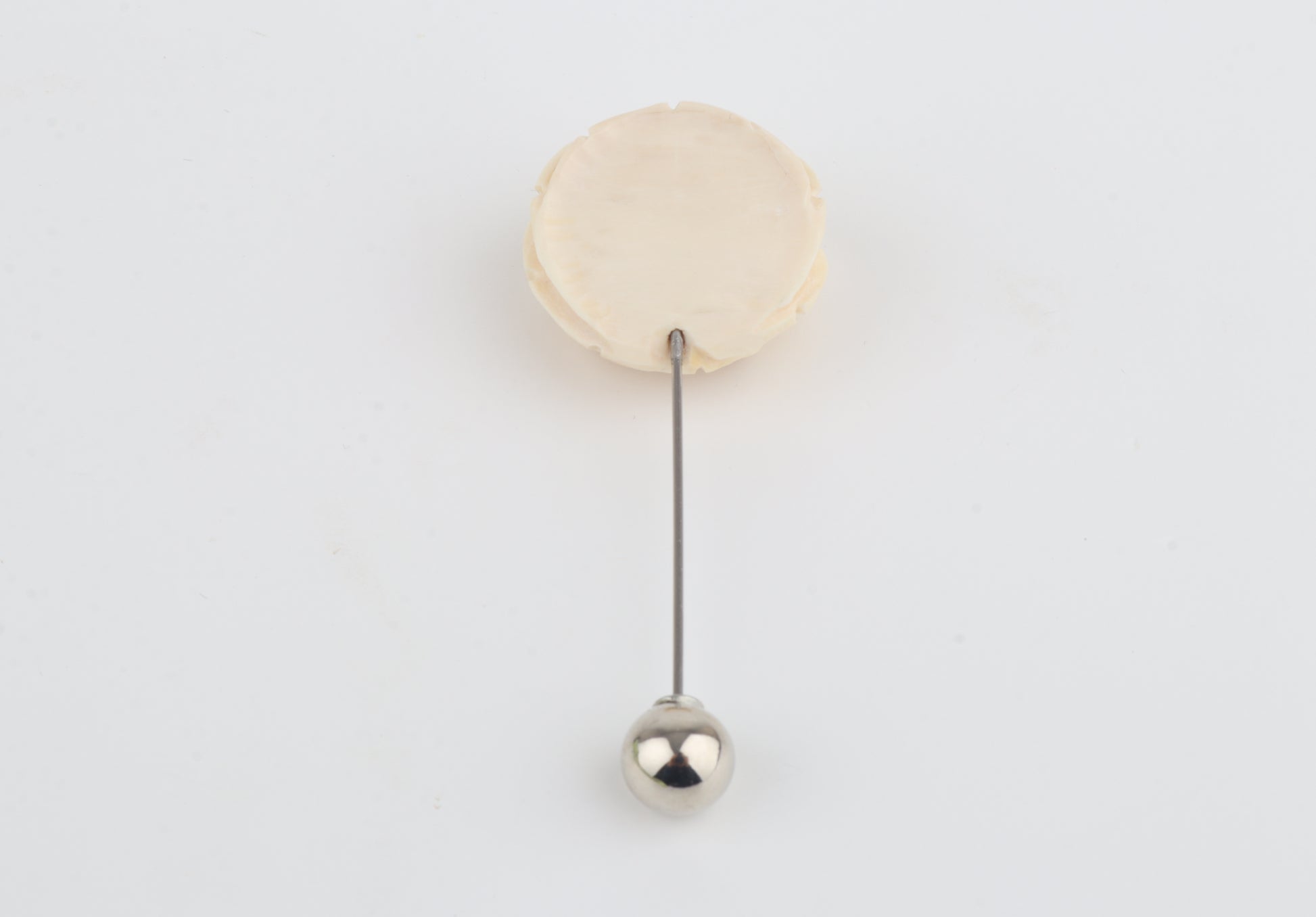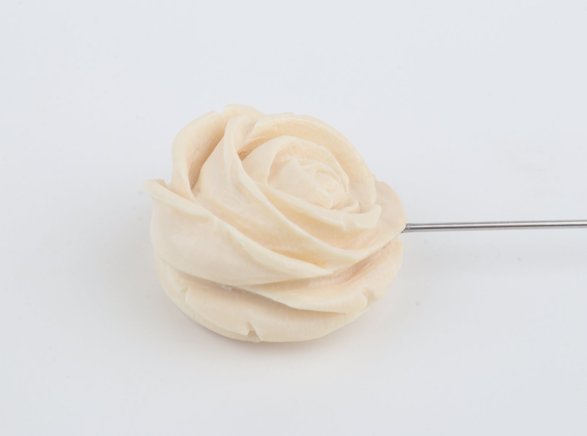 This elegant brooch features a finely carved rose sculpted from genuine mammoth ivory (Mammuthus primigenius). Each petal is individually shaped, creating a layered floral form with depth, softness, and natural movement. Subtle natural color variations range from warm ivory to light cream.