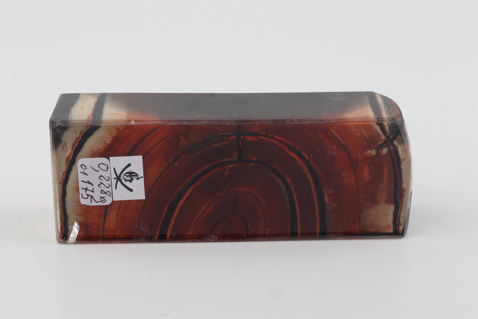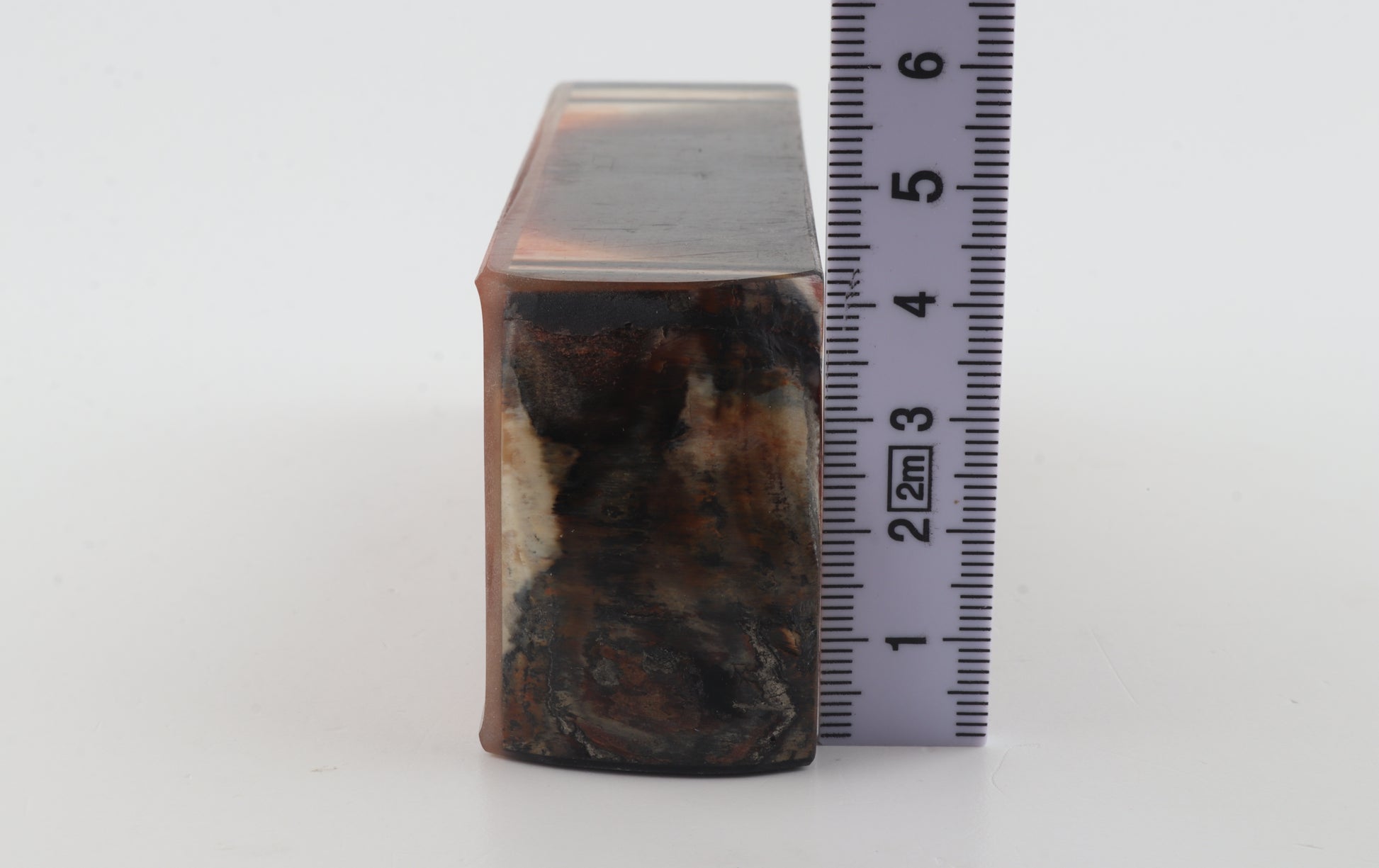 This is a cross-cut stabilised woolly mammoth ivory block (Mammuthus primigenius). This block can be precision-cut, drilled, sanded, polished etc. to achieve the desired results. Consistent width and thickness with reserves on both ends. The colour of the ivory is red.