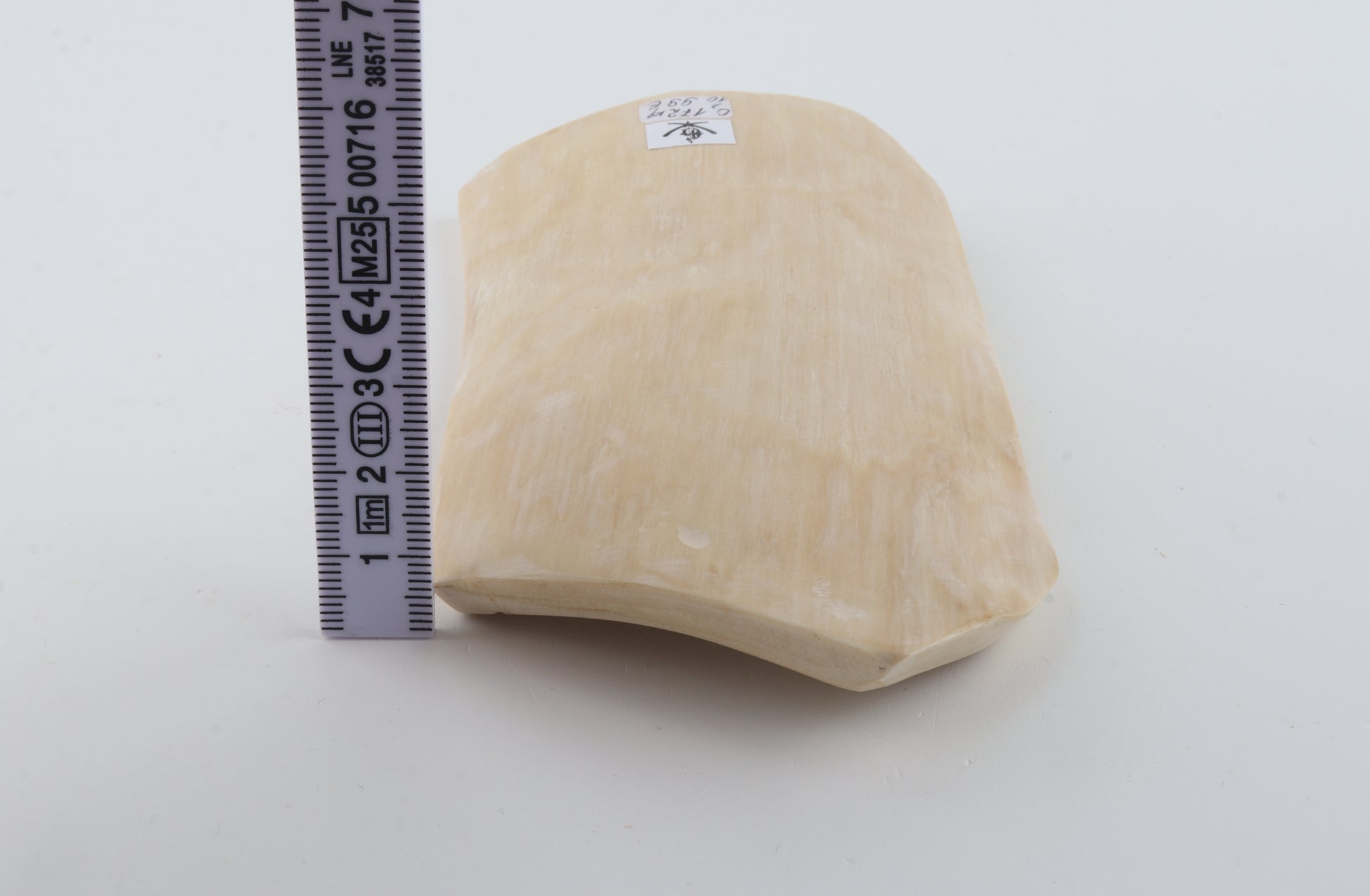 This is a top-quality piece of Siberian woolly mammoth ivory (Mammuthus primigenius). The ivory is rock-solid, completely dry and without cracks. One cross-cut section is thicker and wider than the other. Reserves on both ends. This piece was cut at angles - please carefully look at the pictures for precise dimensions. The colour of the ivory is white.
