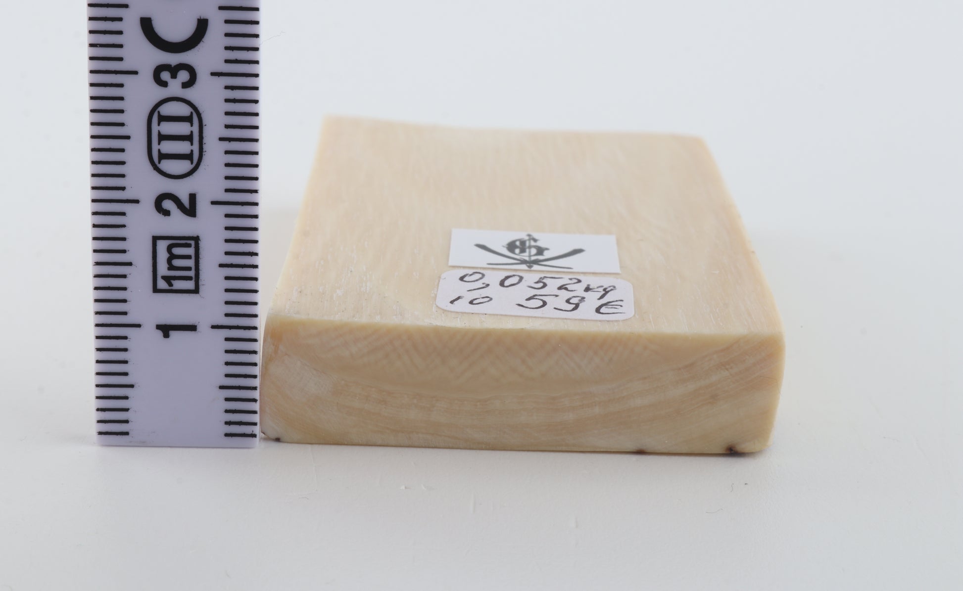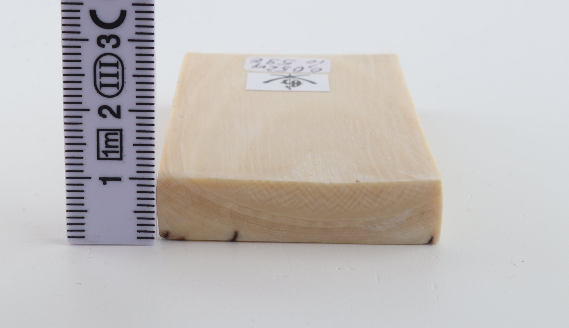 This is an immaculate piece of Siberian woolly mammoth ivory (Mammuthus primigenius). The ivory is naturally dense and solid, without cracks. Consistent width and thickness with reserves on both ends. The piece displays its original, natural ivory tone.