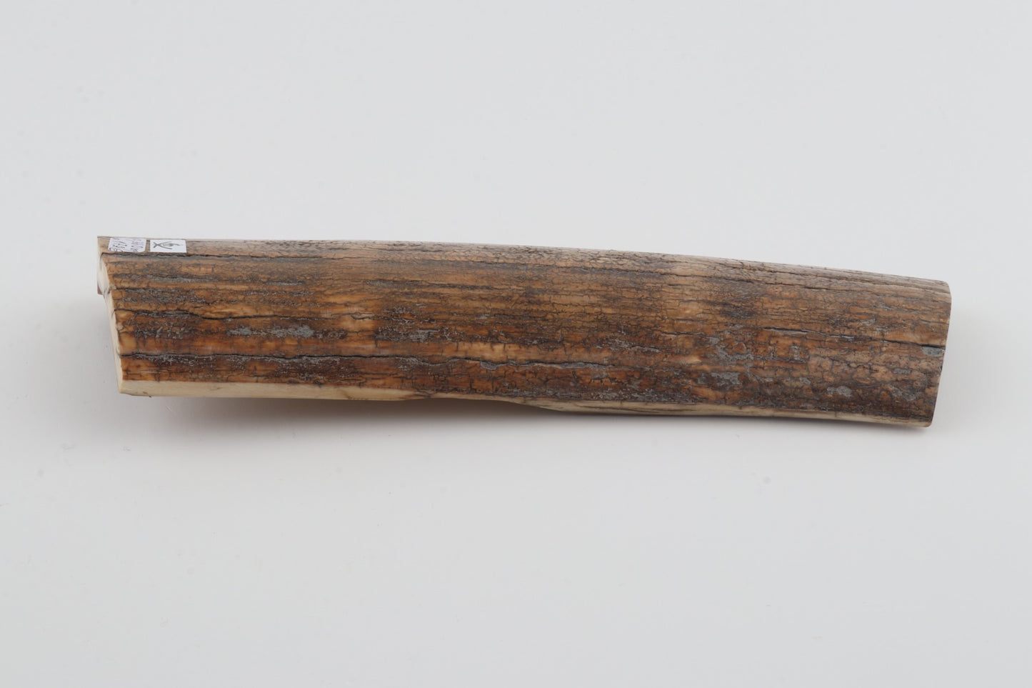 This is a top-quality piece of Siberian woolly mammoth bark (Mammuthus primigenius). The ivory is rock-solid despite some cracks. One cross-cut section is thinner and narrower than the other. Reserves on both ends. Please carefully look at the pictures for precise dimensions. The colour of the bark is beige.
