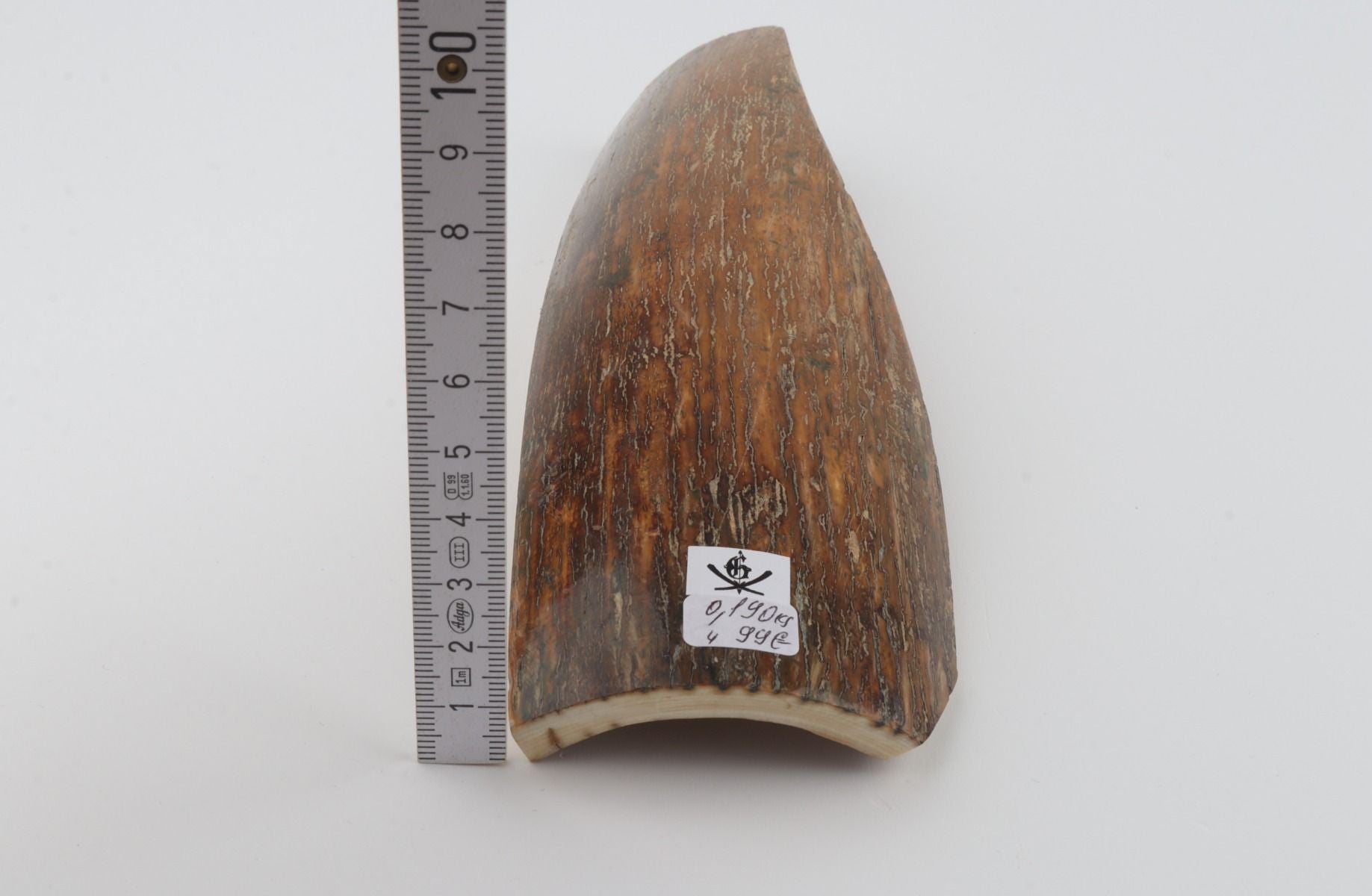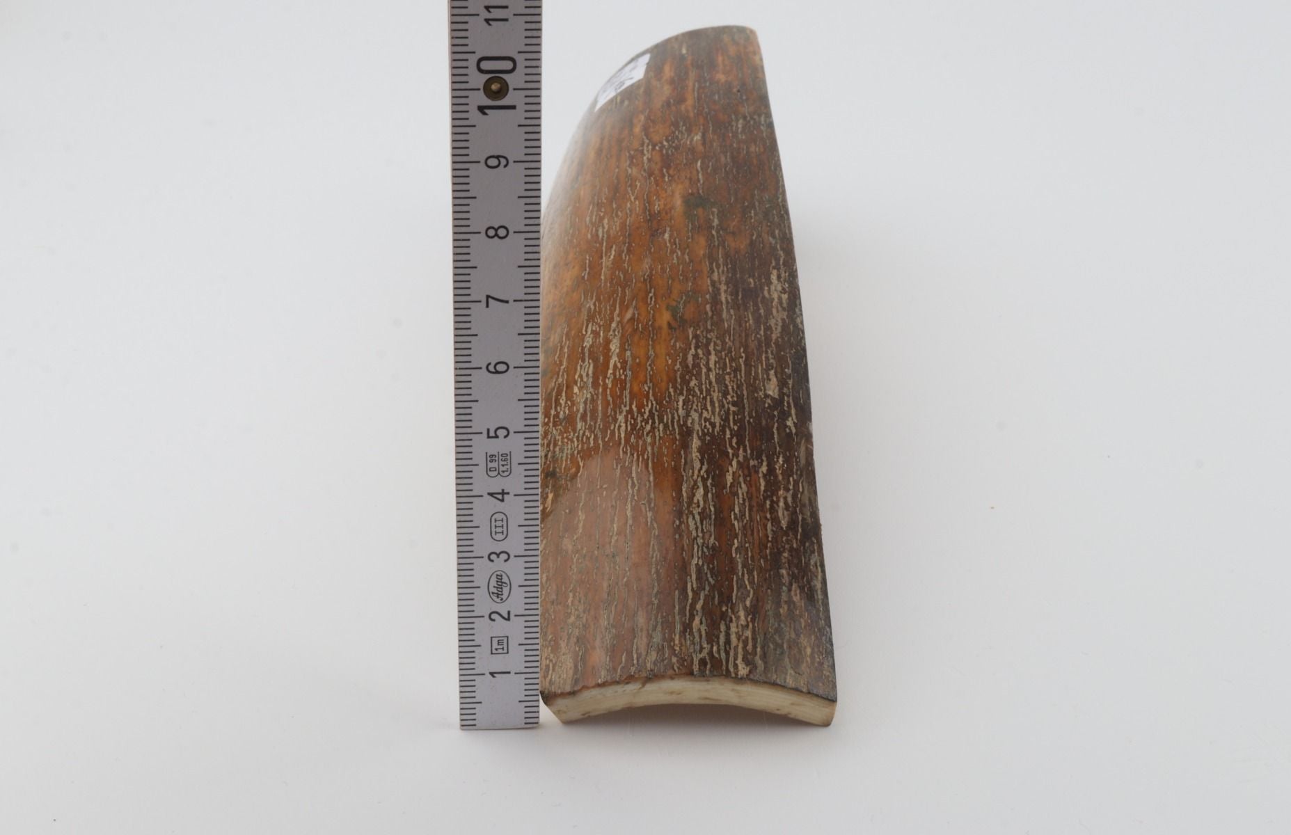 This is a top-quality piece of Siberian woolly mammoth bark (Mammuthus primigenius). The ivory is rock-solid without cracks. One cross-cut section is wider than the other, because one side was cut at an angle. Consistent thickness with reserves on both ends. Please carefully look at the pictures for precise dimensions. The colour of the bark is brown-caramel.