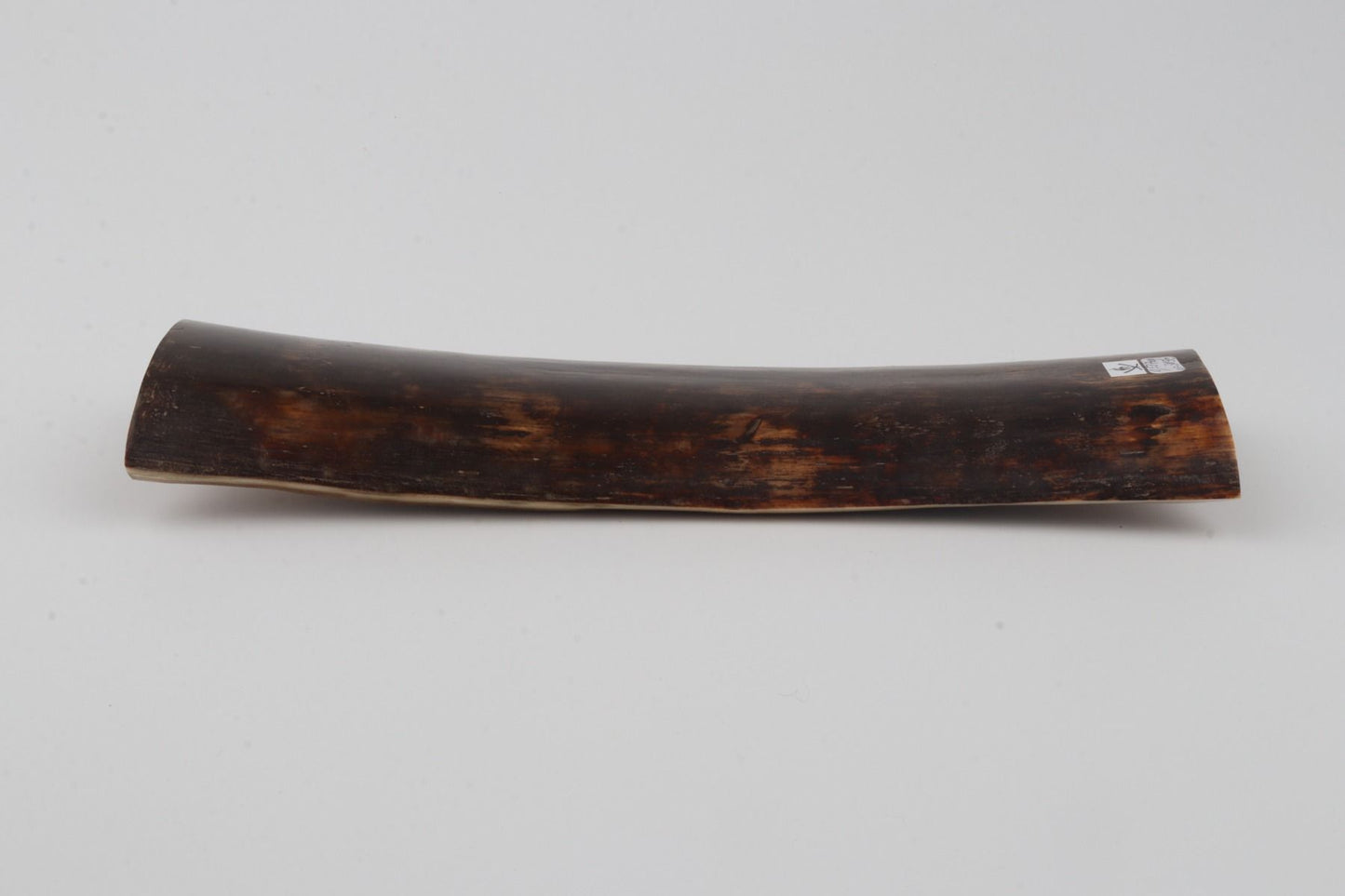 This is a top-quality piece of Siberian woolly mammoth bark (Mammuthus primigenius). The ivory is rock-solid without cracks. One cross-cut section is slightly wider than the other. Consistent thickness with reserves on both ends. The colour of the bark is brown.