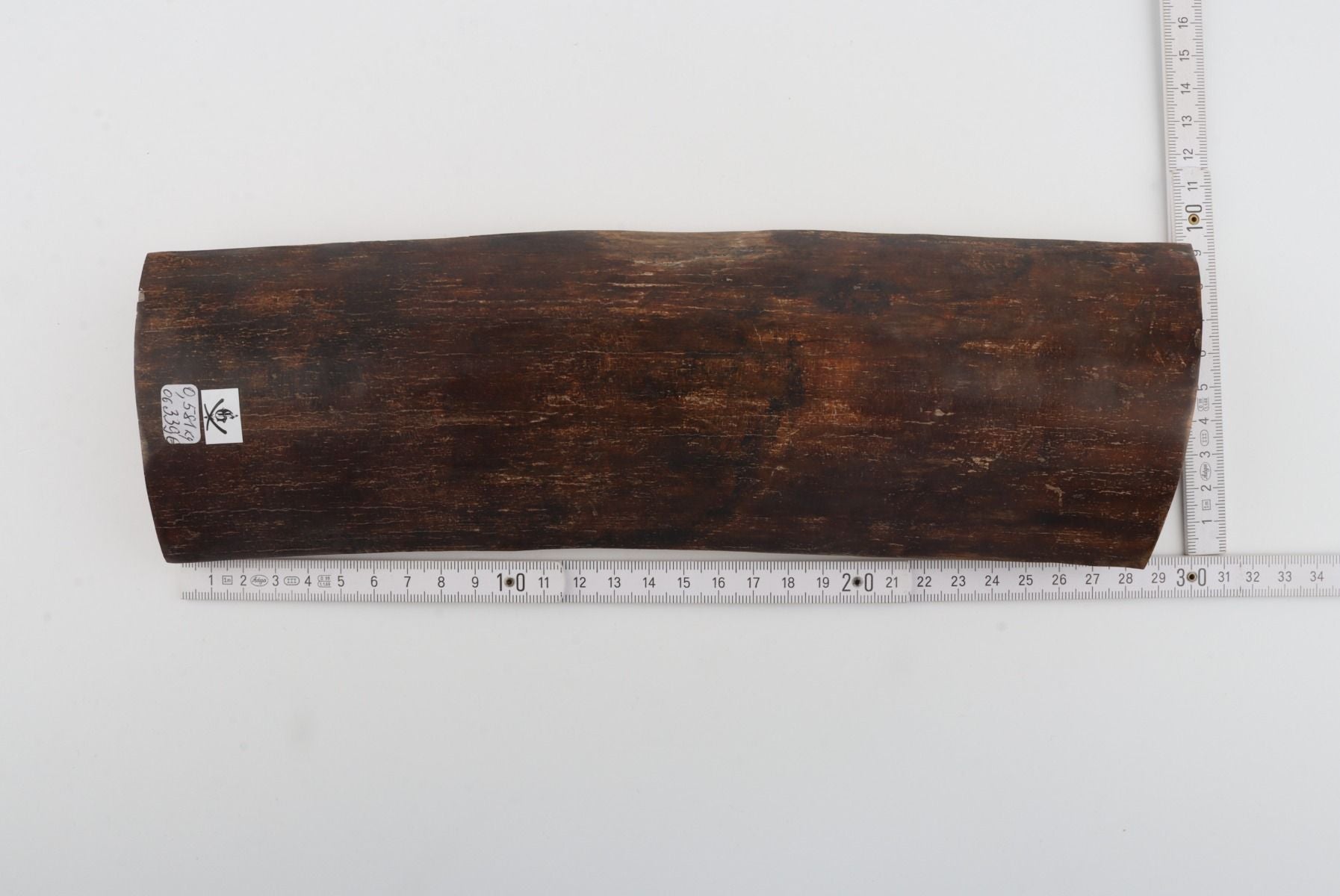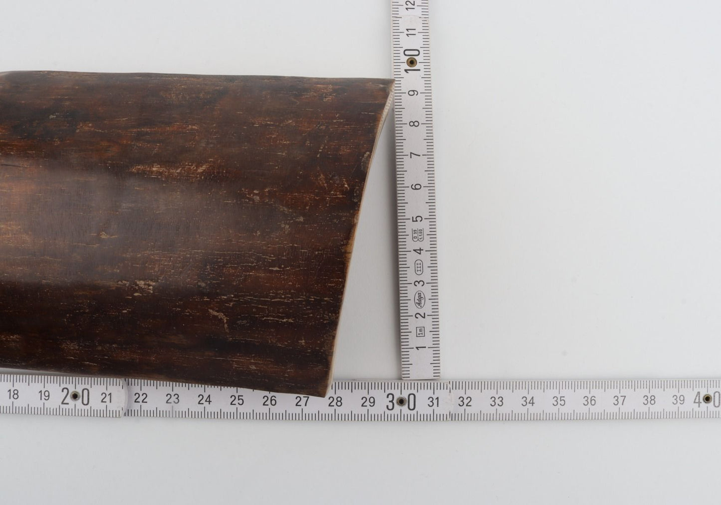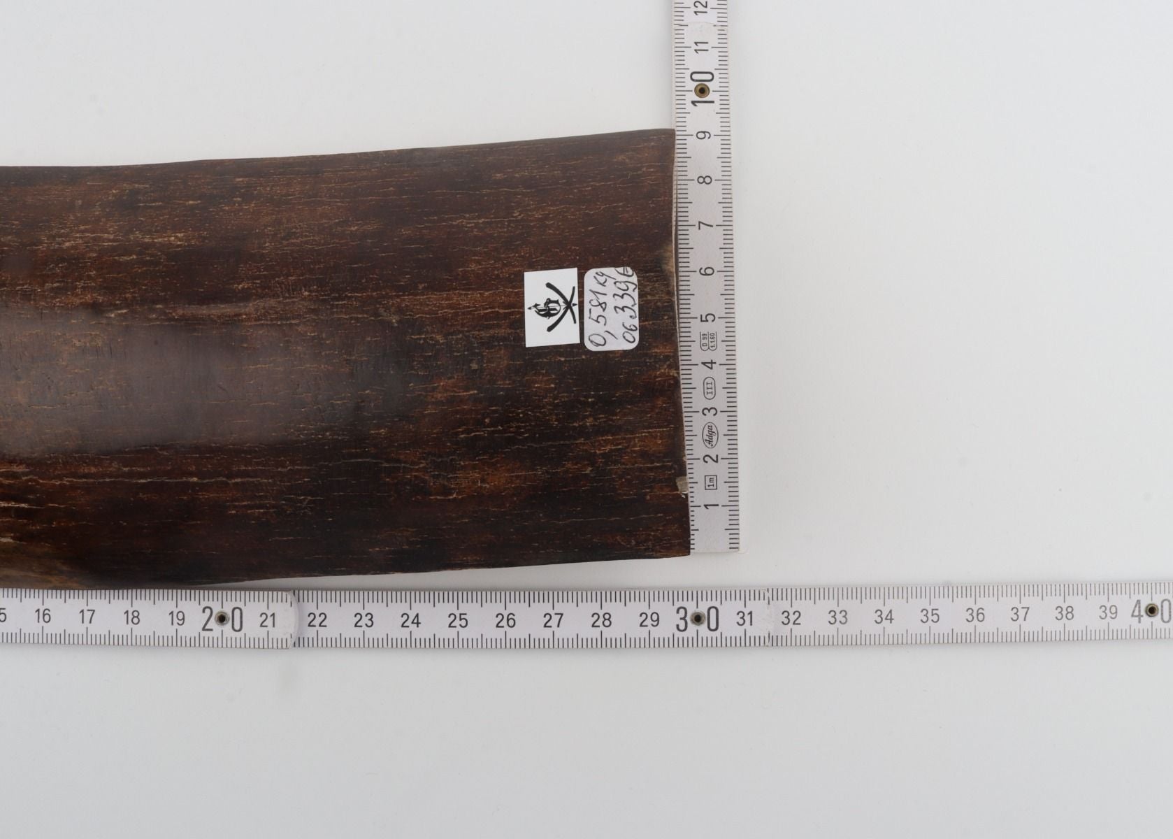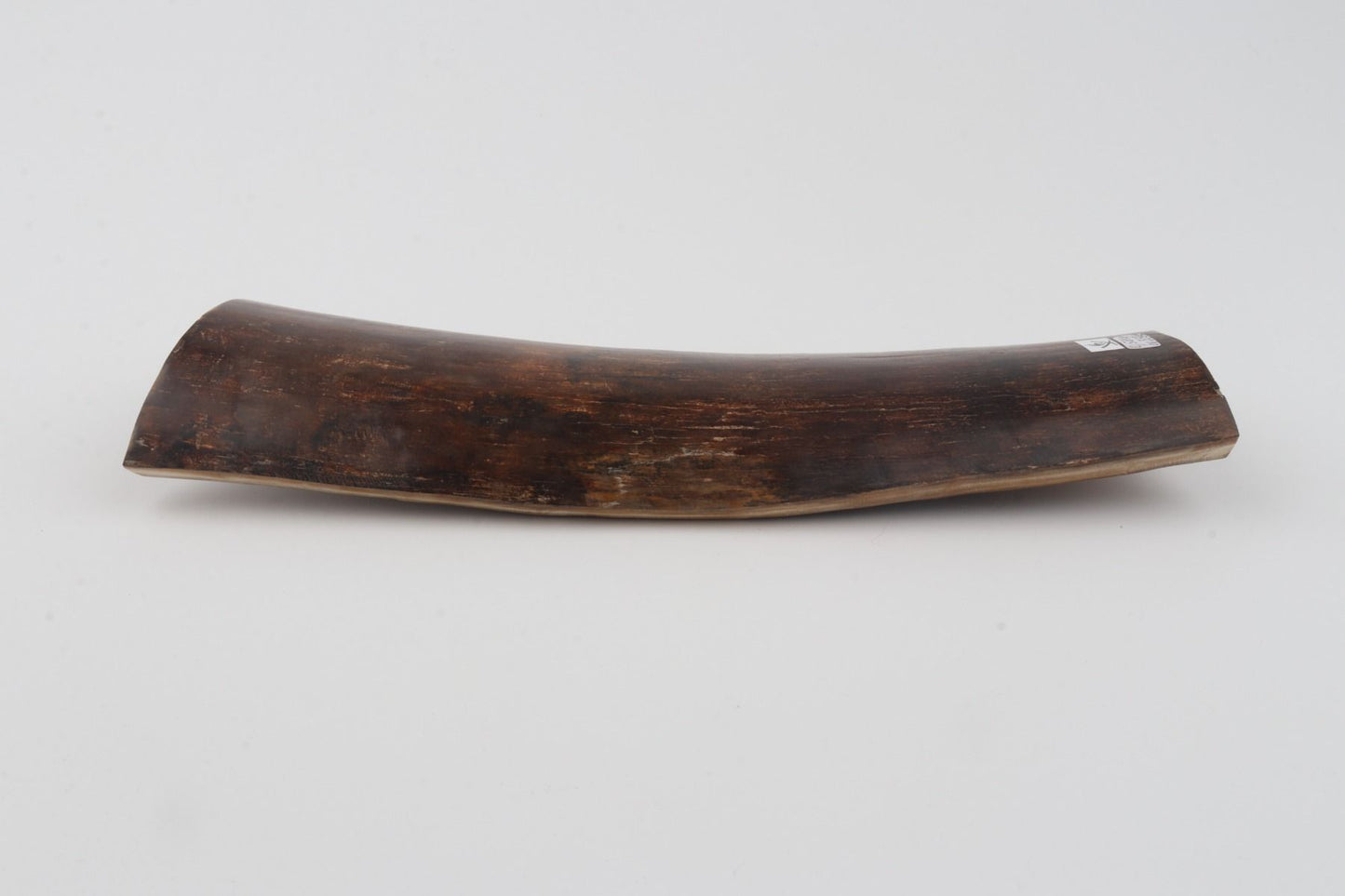 This is a top-quality piece of Siberian woolly mammoth bark (Mammuthus primigenius). The ivory is rock-solid without cracks. One cross-cut section is slightly thicker than the other. Consistent width with reserves on both ends. The colour of the bark is brown.