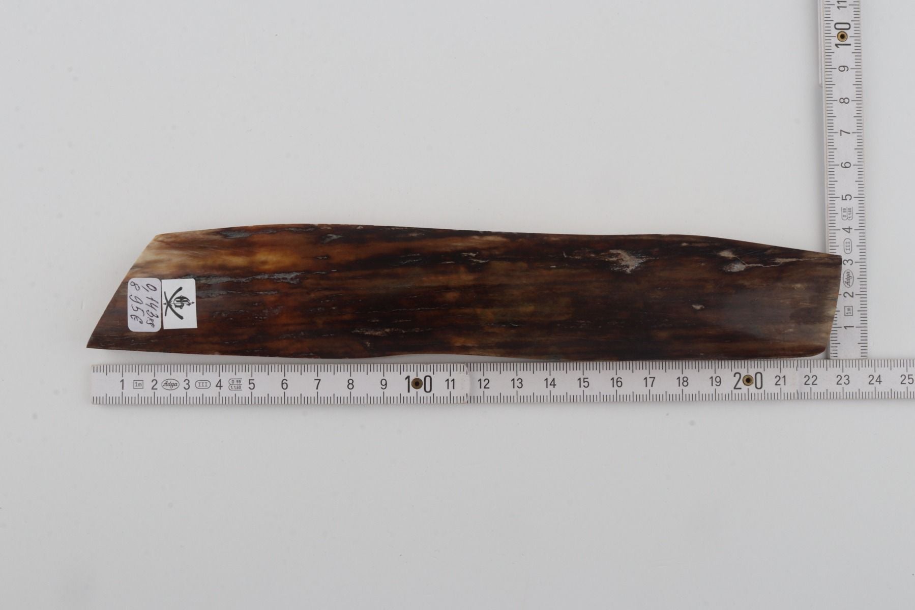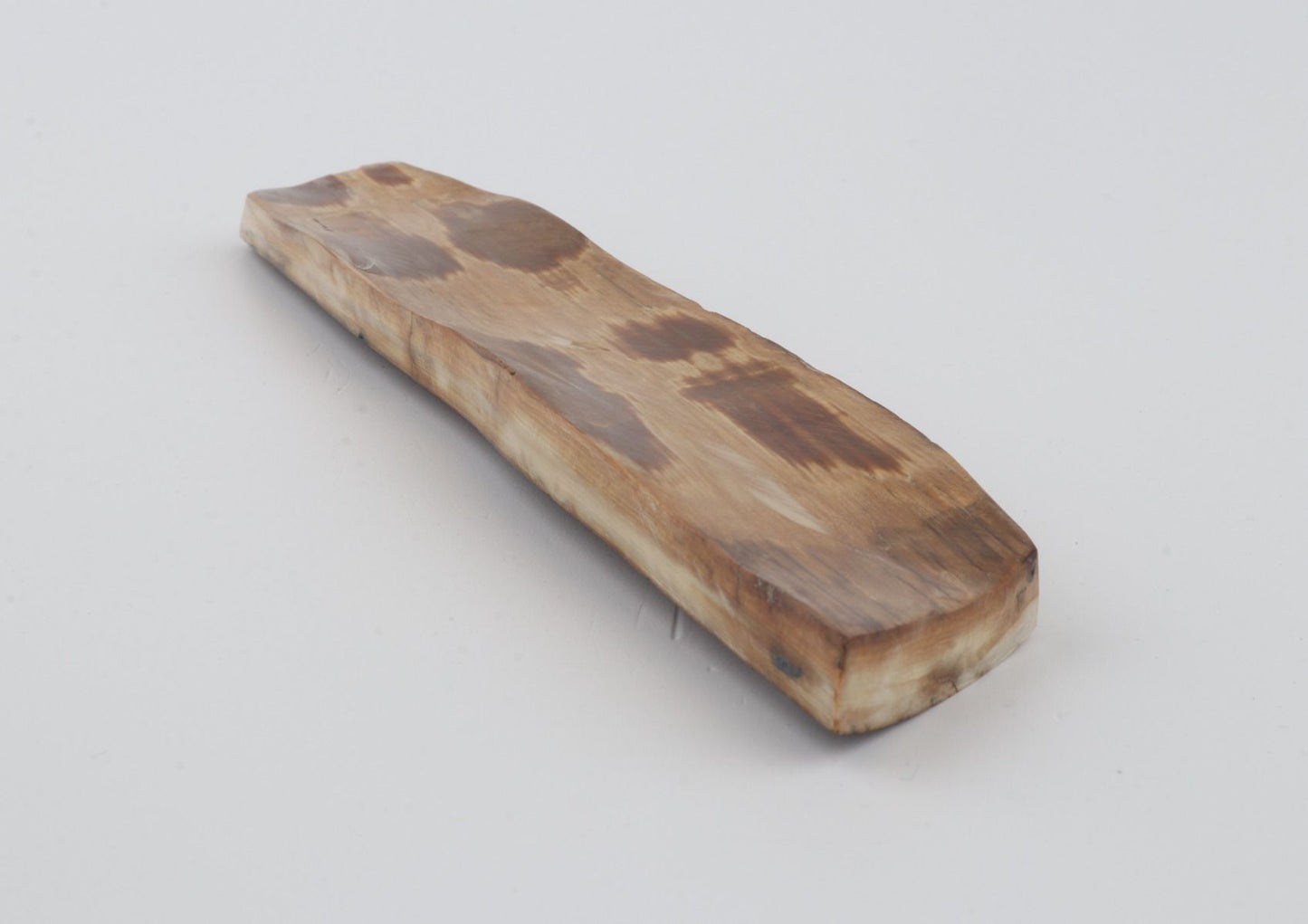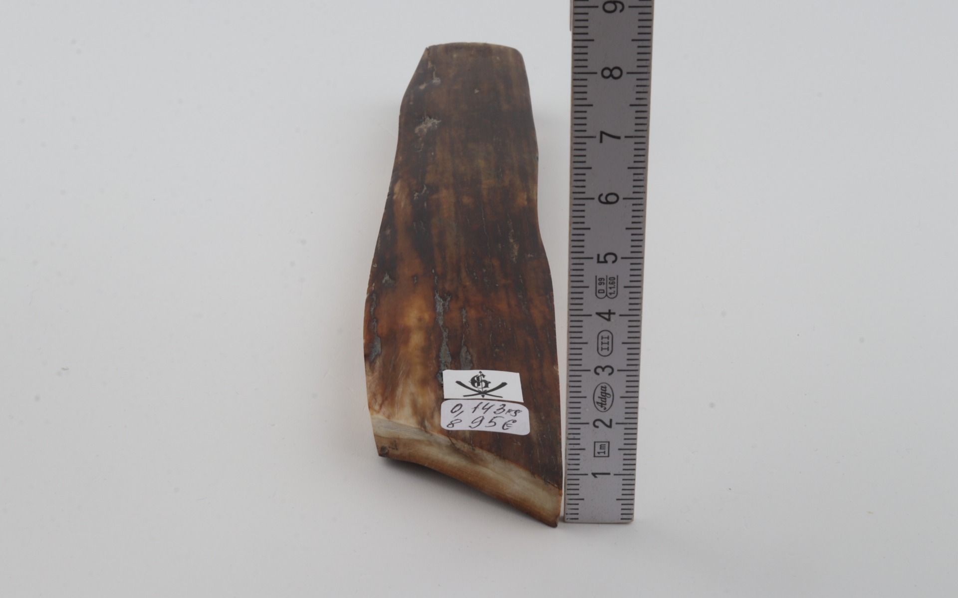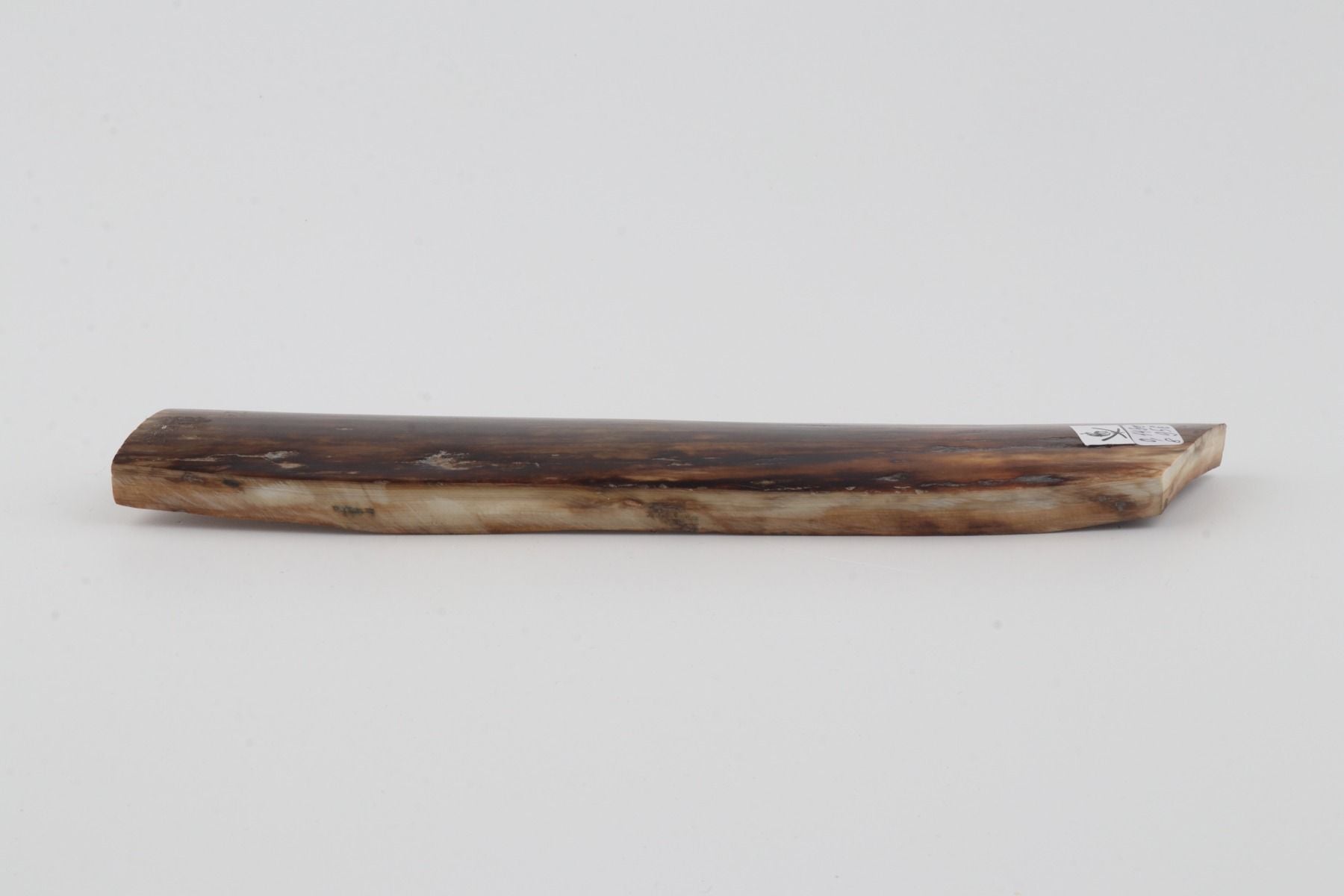 This is a top-quality piece of Siberian woolly mammoth bark (Mammuthus primigenius). The ivory is rock-solid without cracks. One cross-cut section is thicker and narrower than the other. Reserves on both ends. Please carefully look at the pictures for precise dimensions. The colour of the bark is brown.