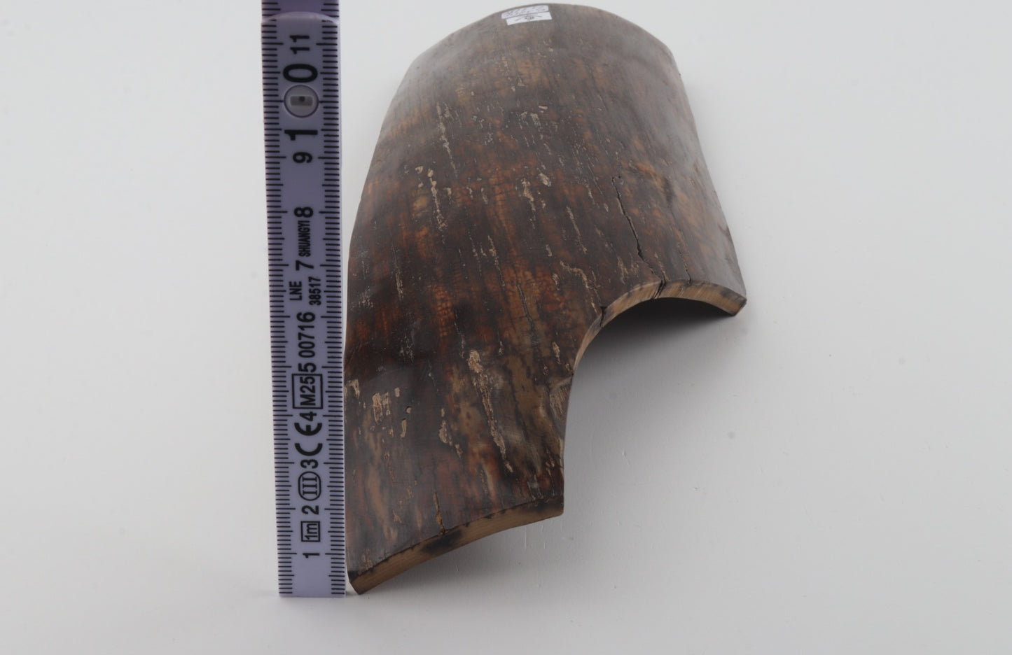 This is a top-quality piece of Siberian woolly mammoth bark (Mammuthus primigenius). The ivory is rock-solid despite some small cracks. One cross-cut section is wider than the other, because one side was cut at an angle. Consistent thickness with reserves on both ends. Please carefully look at the pictures for precise dimensions. The colour of the bark is brown.
