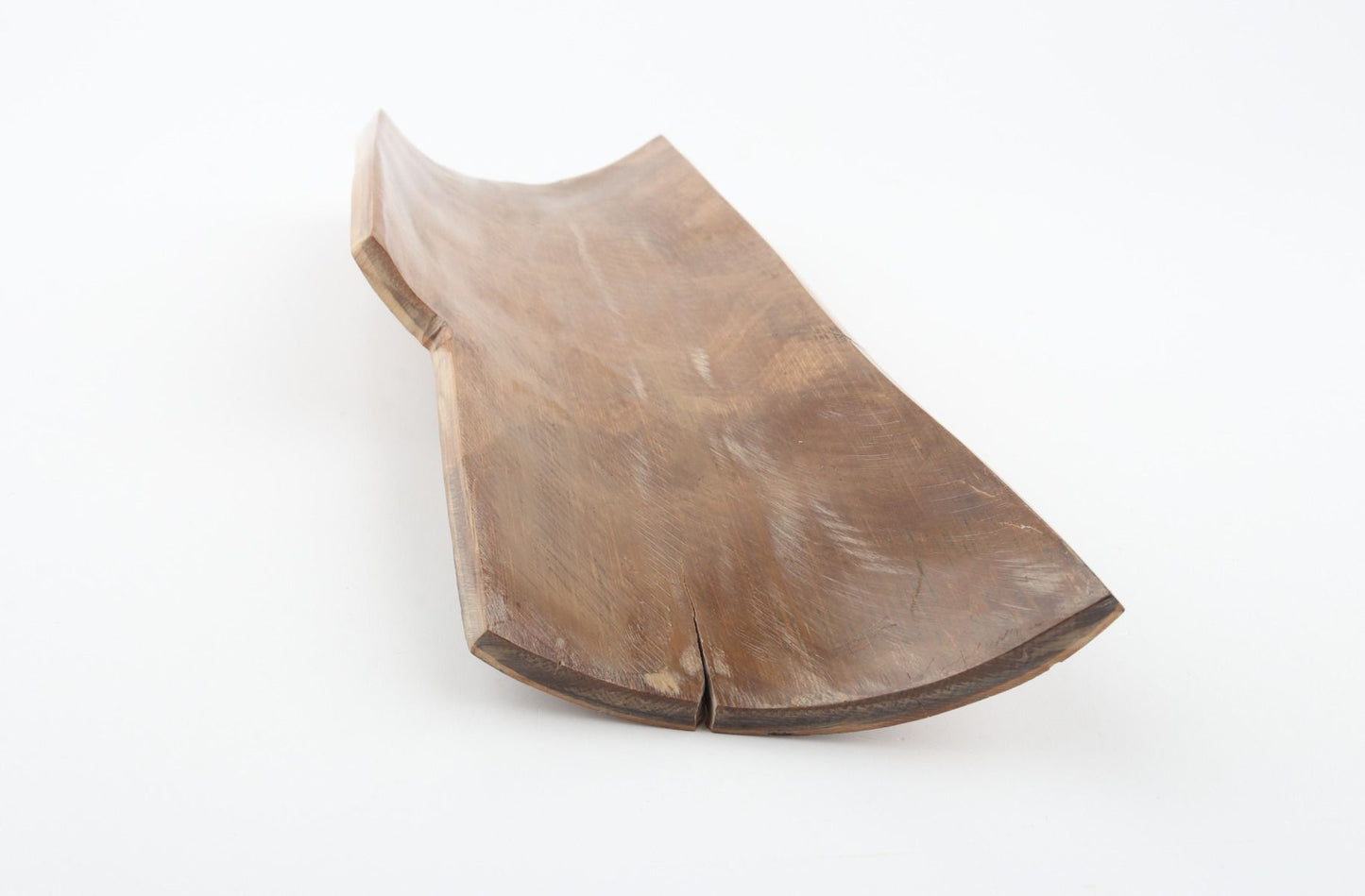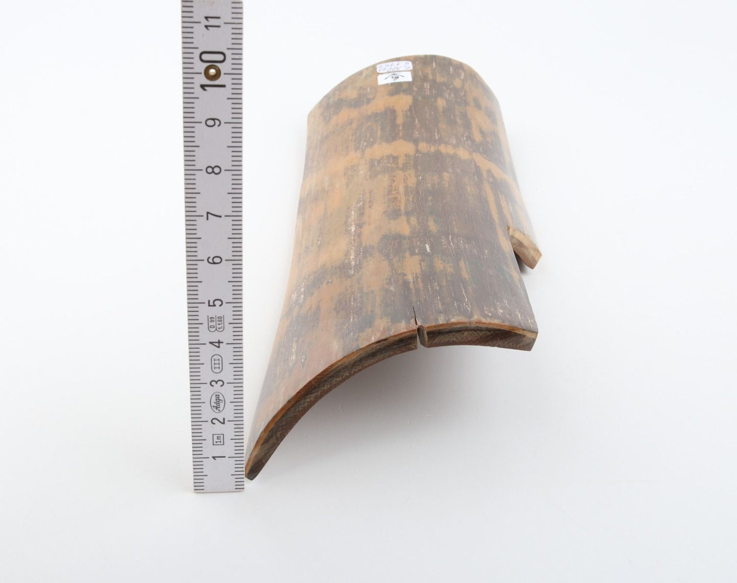 This is a top-quality piece of Siberian woolly mammoth bark (Mammuthus primigenius). The ivory is rock-solid despite one crack on the thinner (and narrower) cross-cut section. Reserves on both ends. One side was cut at an angle - please carefully look at the pictures for precise dimensions. The colour of the bark is brown-mustard.