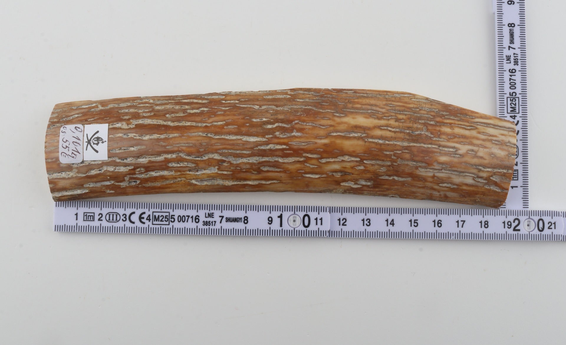 This is a top-quality piece of Siberian woolly mammoth bark (Mammuthus primigenius). The ivory is rock-solid despite some tiny, non-penetrating fissures. One cross-cut section is slightly wider than the other, because the end of one side was cut at an angle. Consistent thickness with reserves on both ends. Please carefully look at the pictures for precise dimensions. The colour of the bark is caramel-grey.