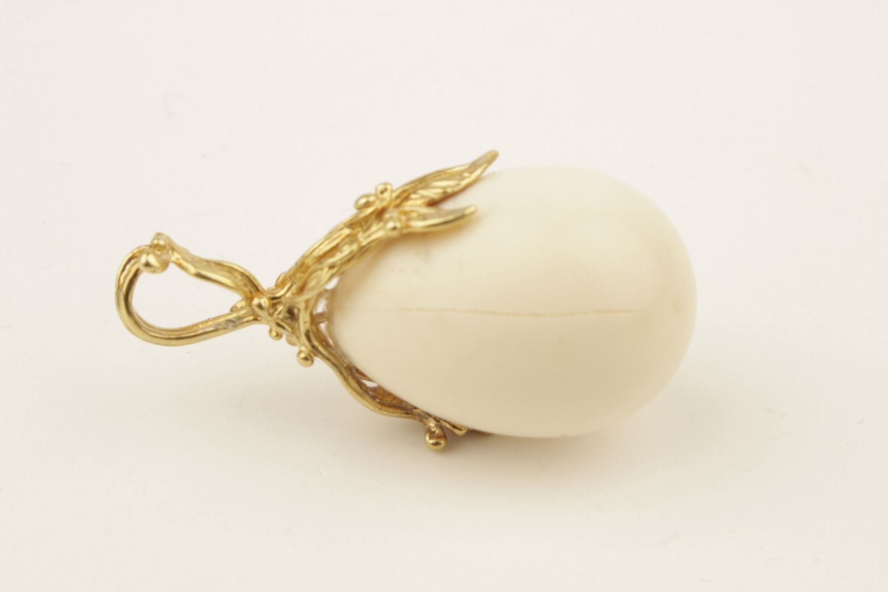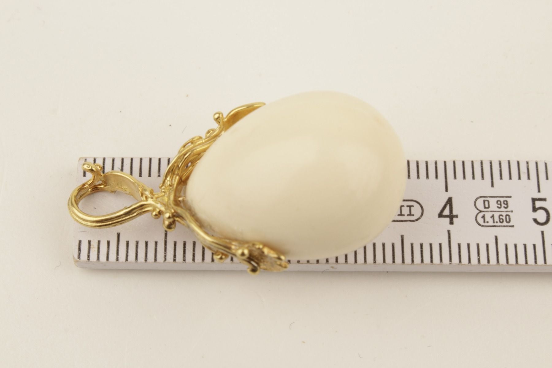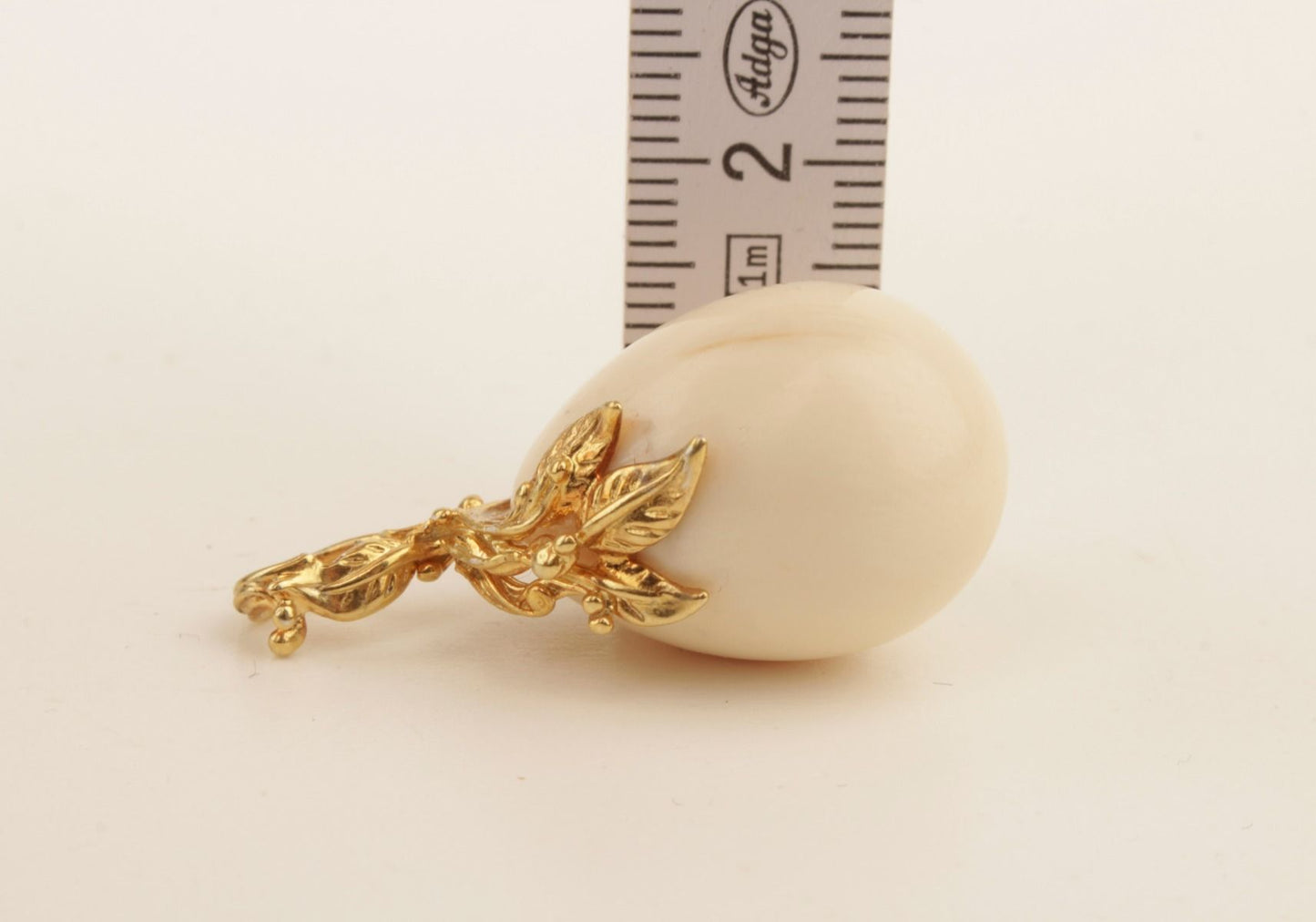 This exquisite pendant is crafted with a unique blend of ancient beauty and modern elegance. Its central focal point is a meticulously carved mammoth ivory egg (Mammuthus primigenius). This rare and ethically sourced material adds a touch of history and mystique to your jewellery collection.