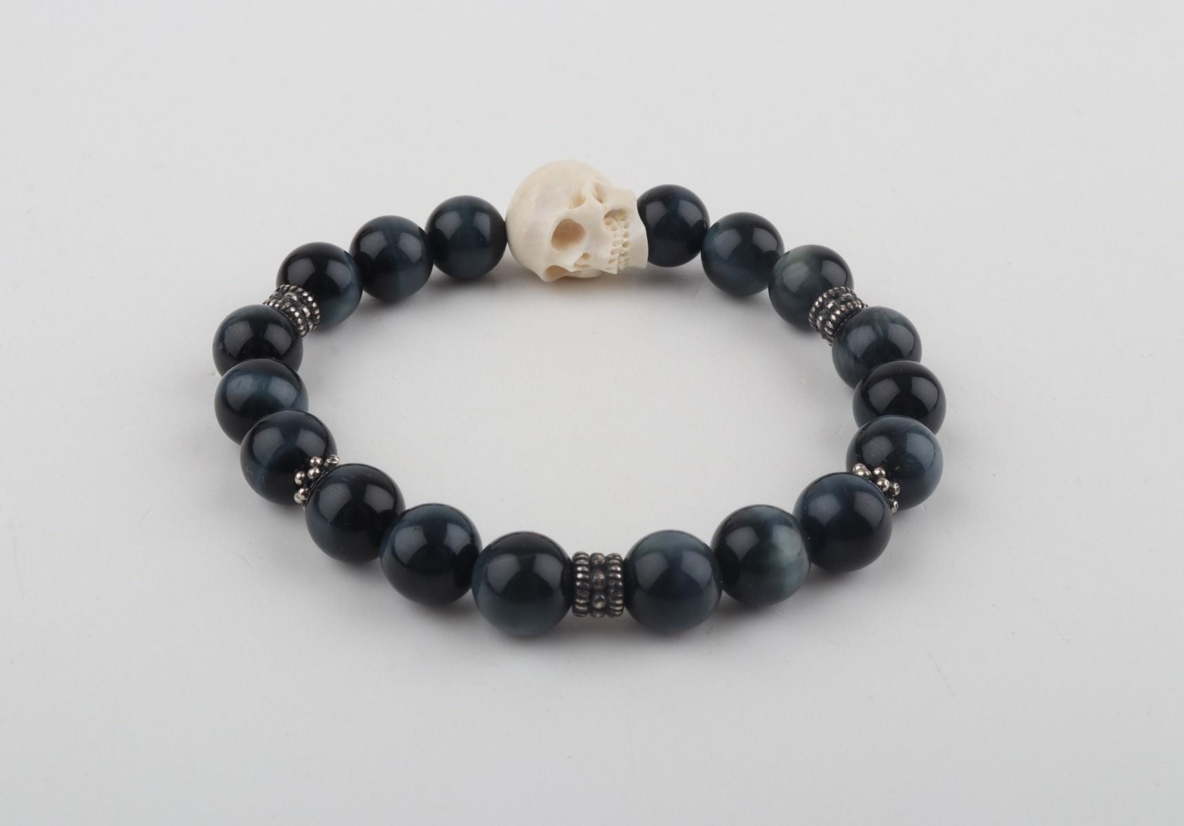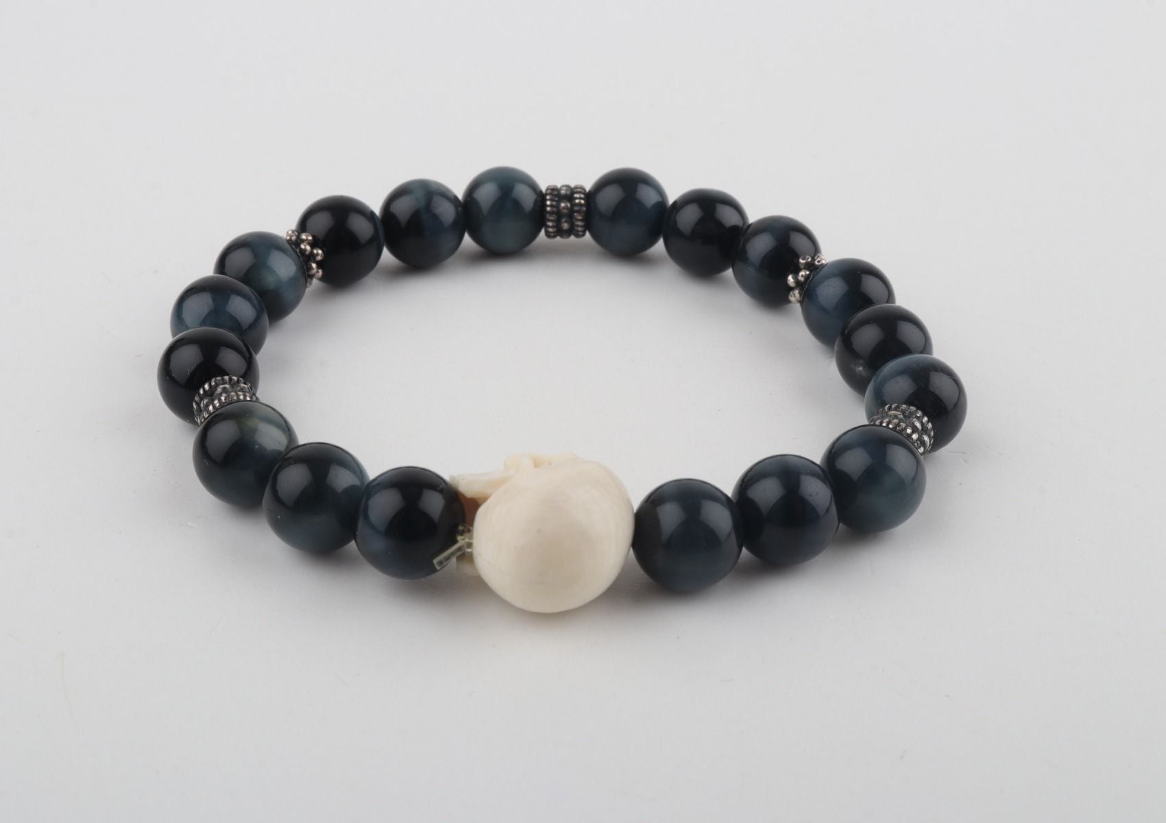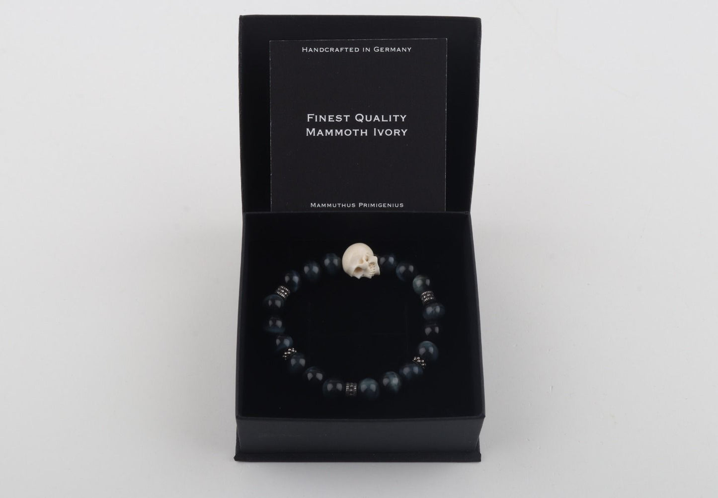 Mammoth Ivory Skull & Blue Tiger Eye Bracelet