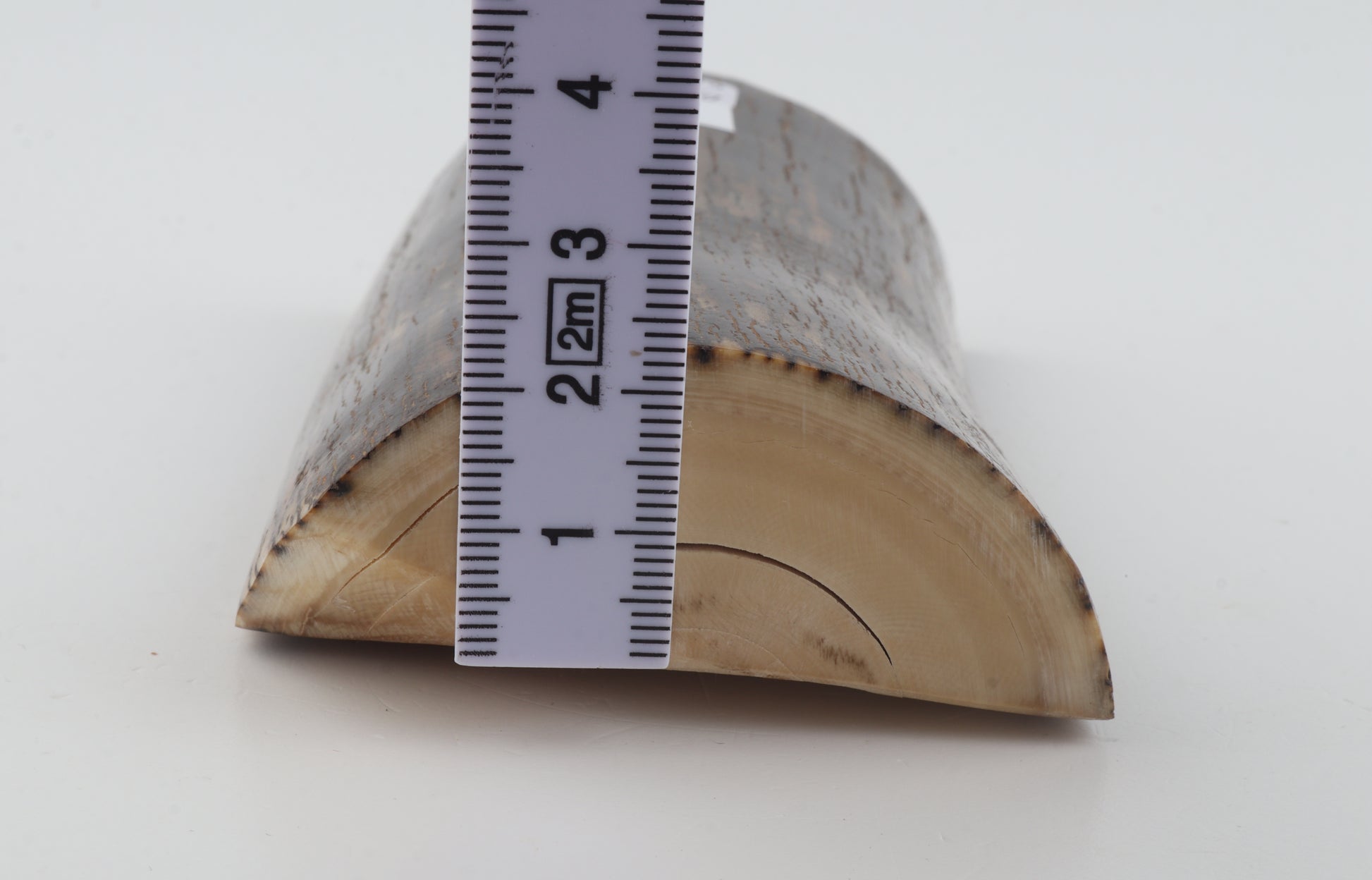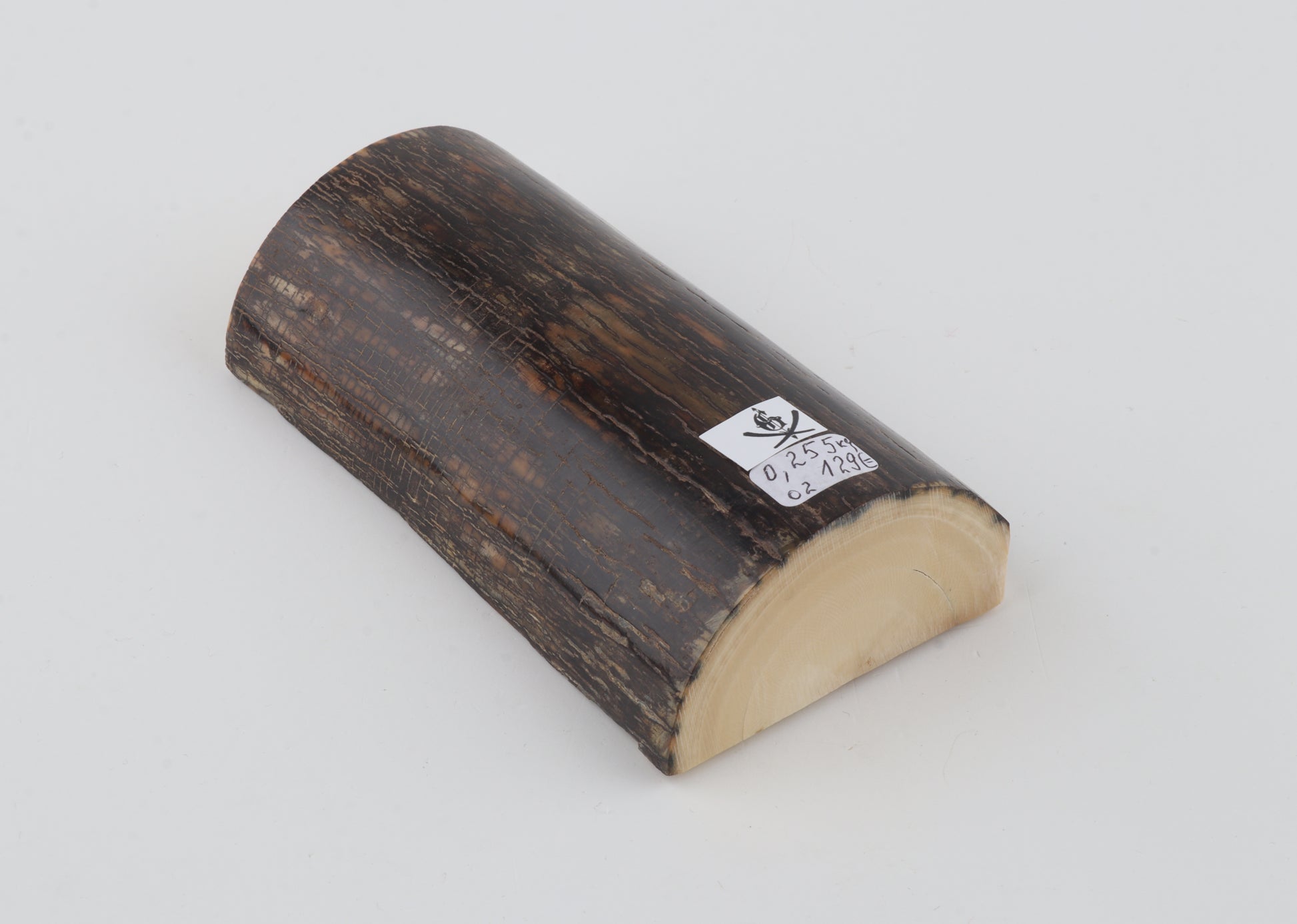 This is a premium-quality piece of Siberian woolly mammoth ivory (Mammuthus primigenius). The ivory is naturally dense and solid, despite some small cracks. Tapered thickness: One cross-cut section is slightly thicker than the other. Consistent width with reserves on both ends. The piece displays its original, natural ivory tone. The colour of the outer layer of bark is brown.